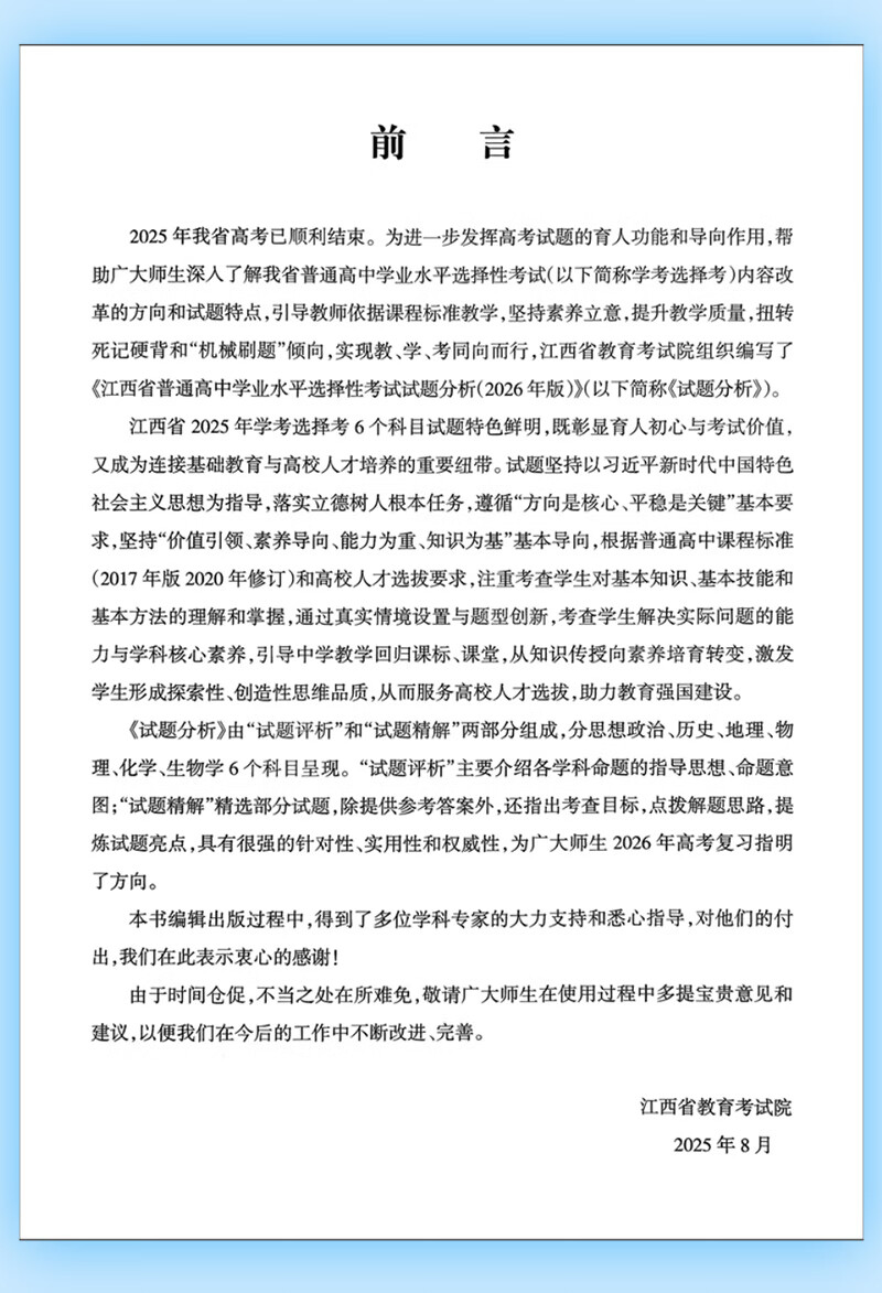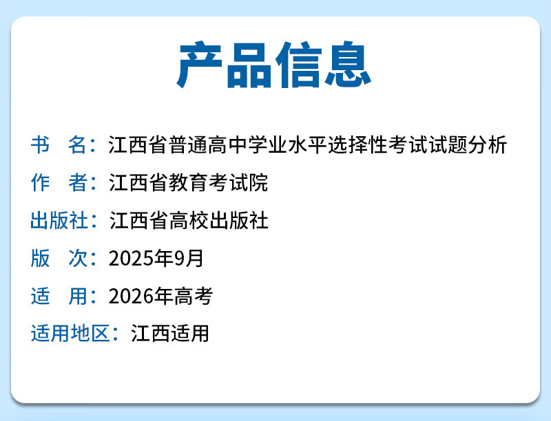 2026适用江西省普通高中学业水平选择性考试试题分析学考教材小高考历年真题押题模拟卷复习资料书物理化学生物政治历史地理试卷 江西省普通高中学业水平选择性考试试题分析