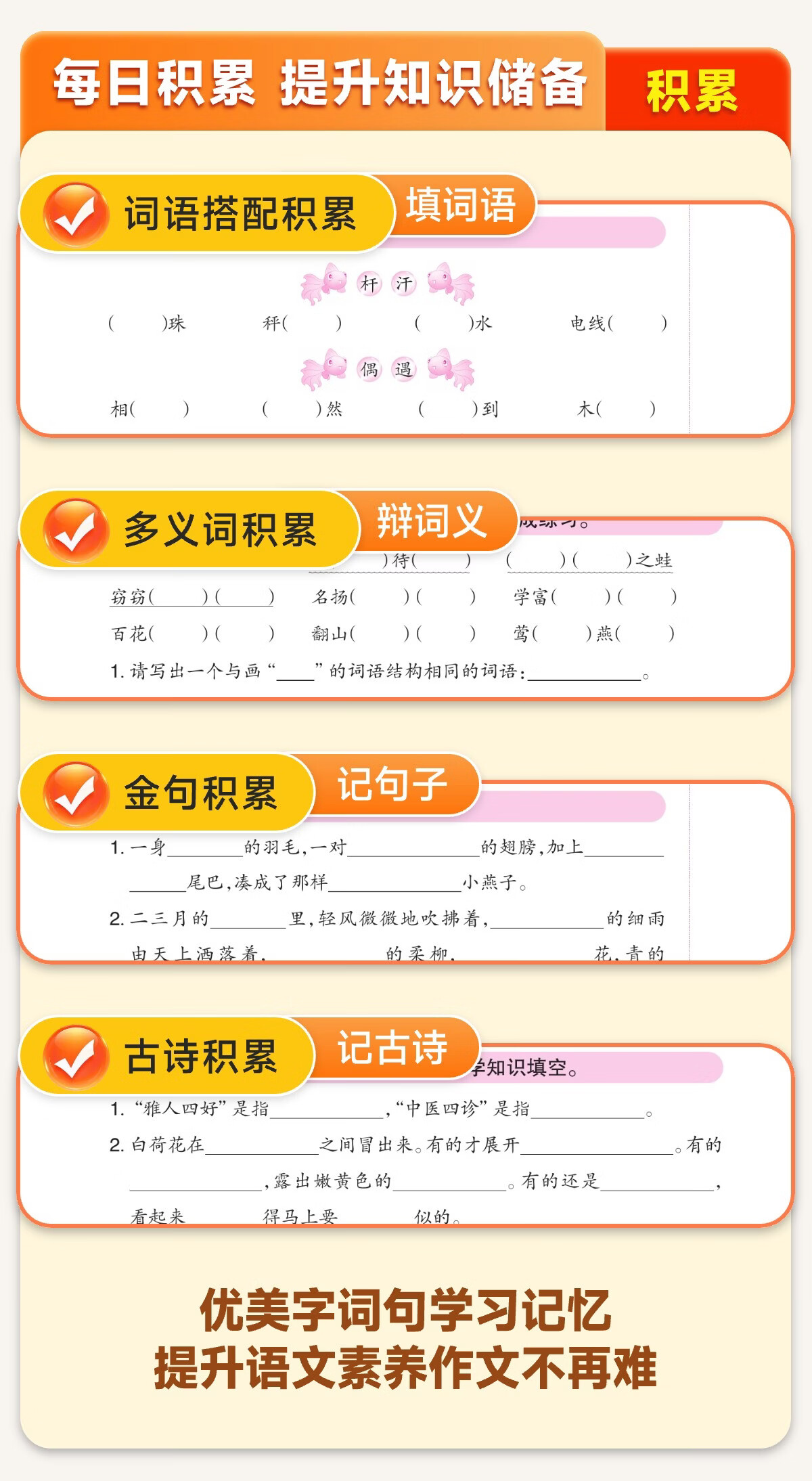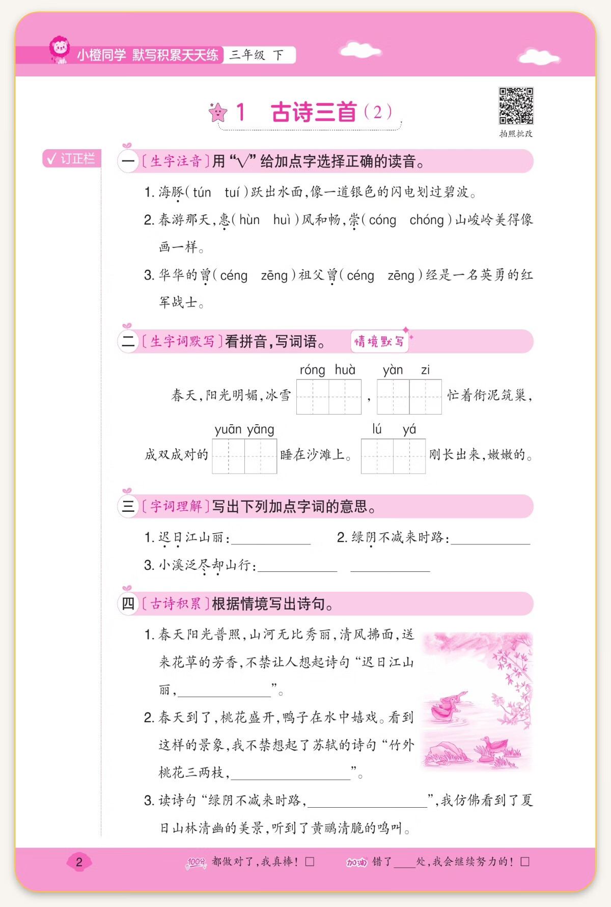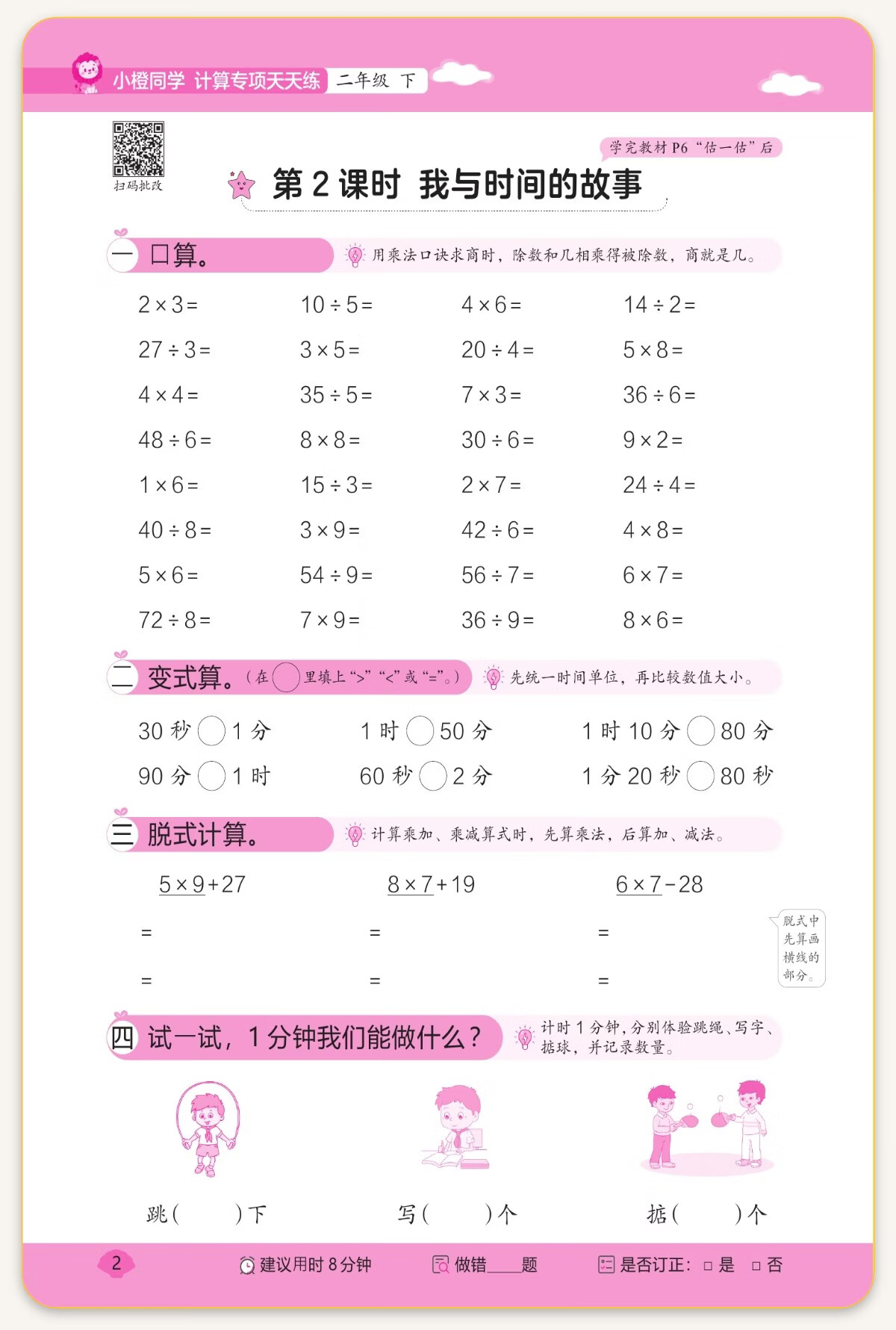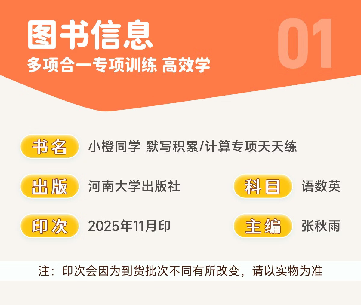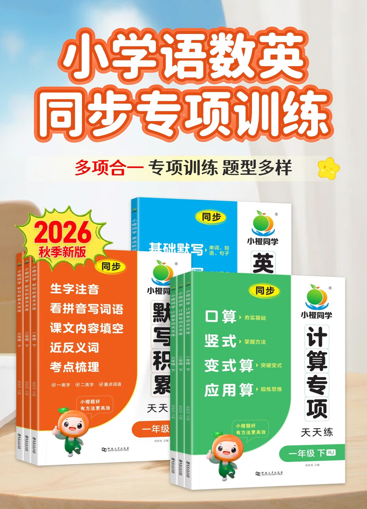 小橙同学【小学默写计算天天练】2026春新版语文数学英语一二三四五六年级上下册人教版北师大苏教版同步练习册专项训练小学123456年级口算竖式脱式应用题看拼音写词语字词句积累阅读理解单词短语句子 一年