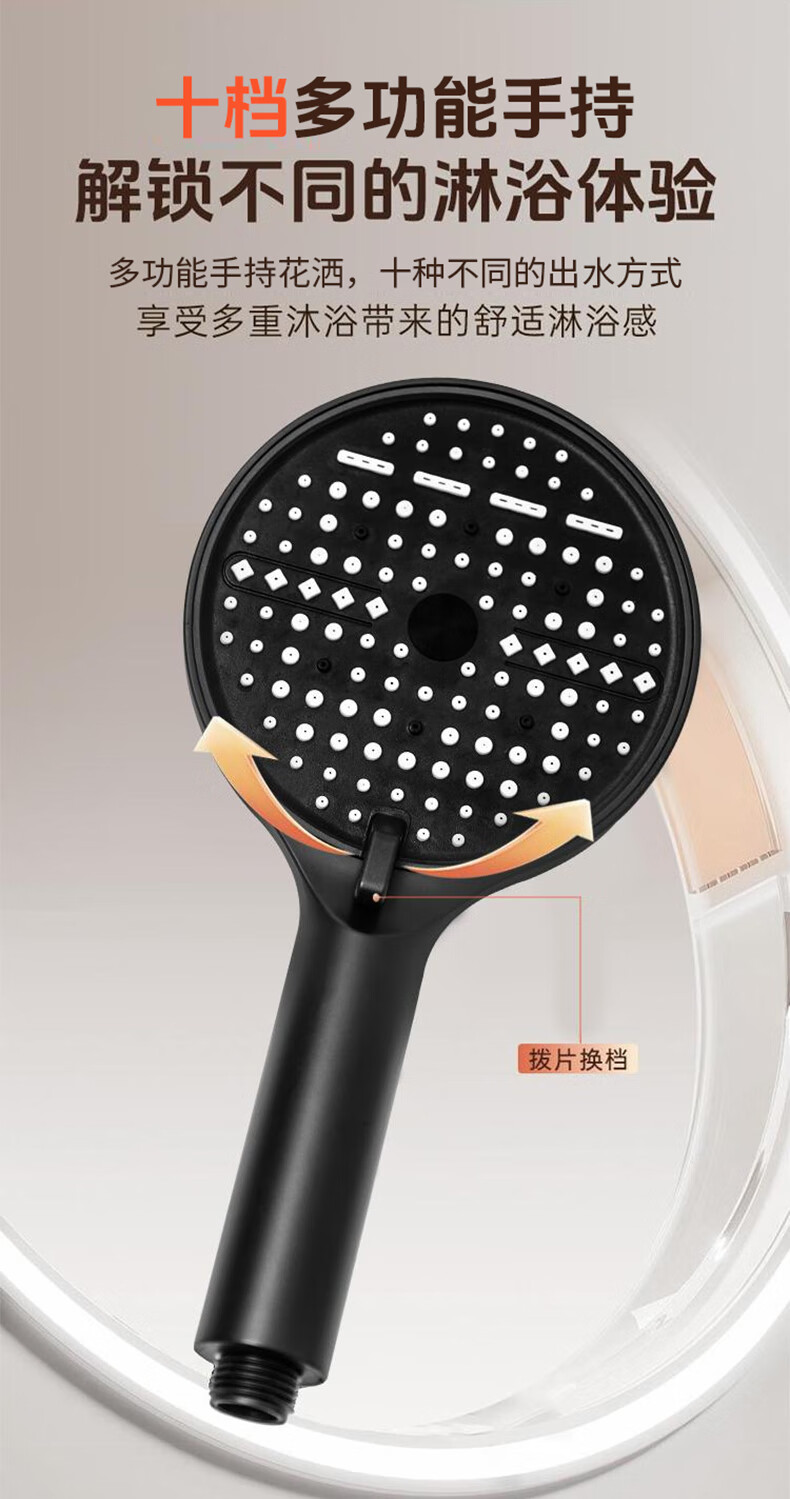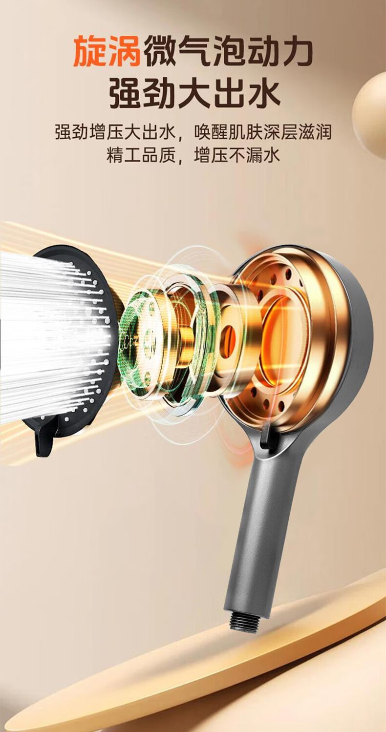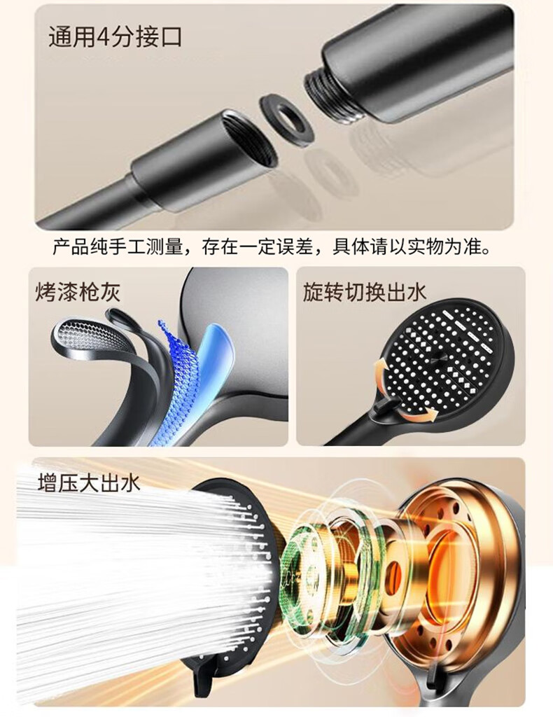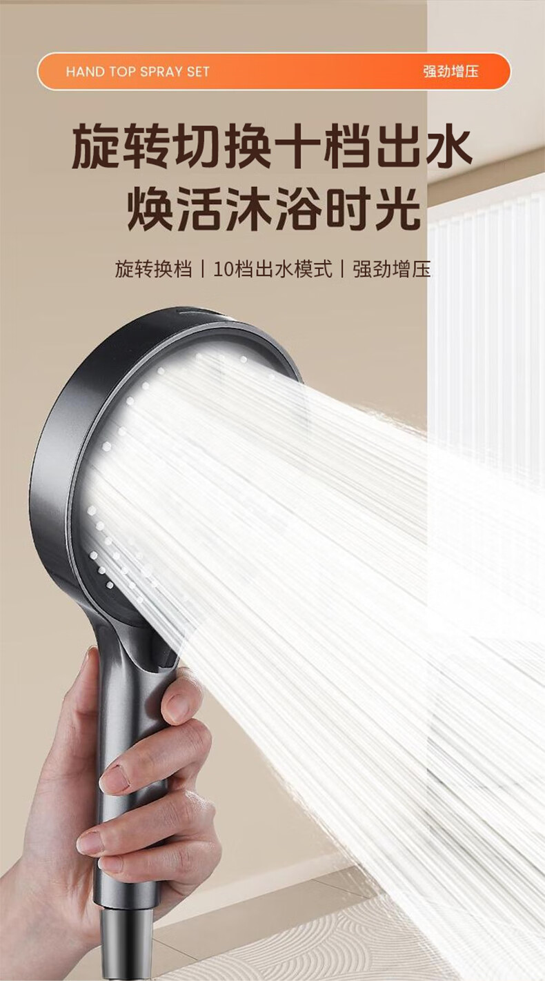 GuGuGo【德国】增压花洒淋浴喷头多功能家用浴室洗澡手持莲蓬花洒喷头 增压手持花洒【枪灰】 十档出水丨空气增压