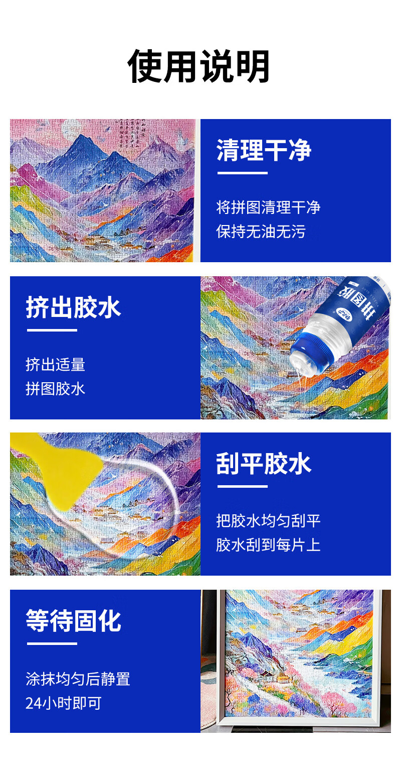 非凡力拼图胶水拼图配件胶拼接胶水固定快干透明胶保护PVA拼接维护名画液体胶封层透明专用名画拼图胶 【常规款】120ml*1(送刮板)