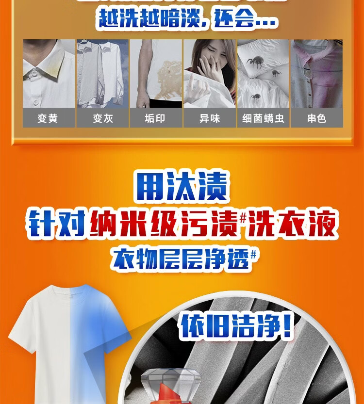 汰渍去渍洗衣液淡雅薰香6斤瓶装 无惧混洗 除菌除螨 支持快洗