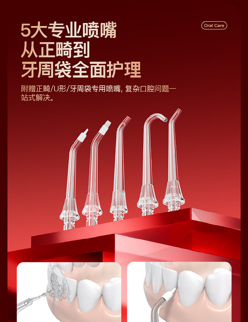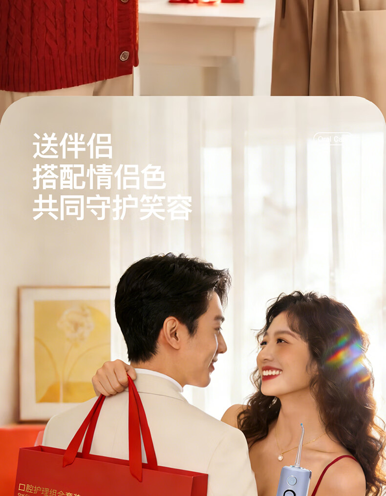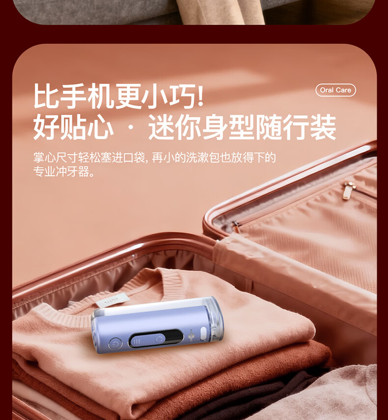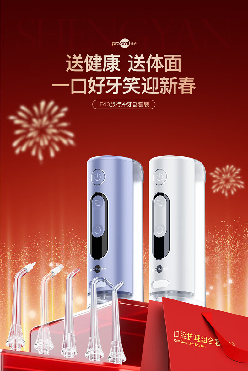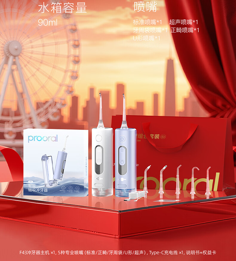 博皓(prooral)电动冲牙器便携洗牙器牙齿冲洗器口腔水牙线牙缝清洁器除牙垢正畸喷嘴磁吸可拆卸水箱 F43礼盒版 雾蓝