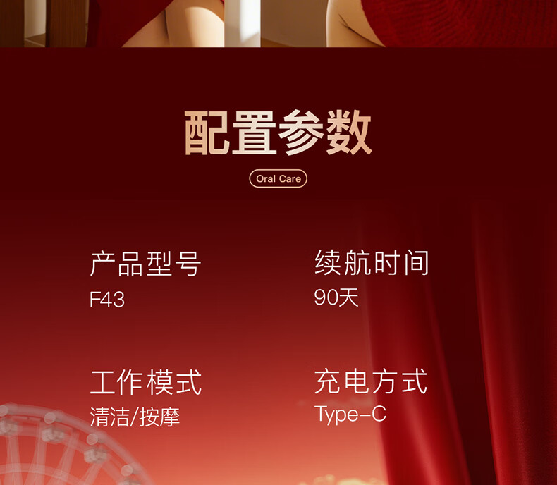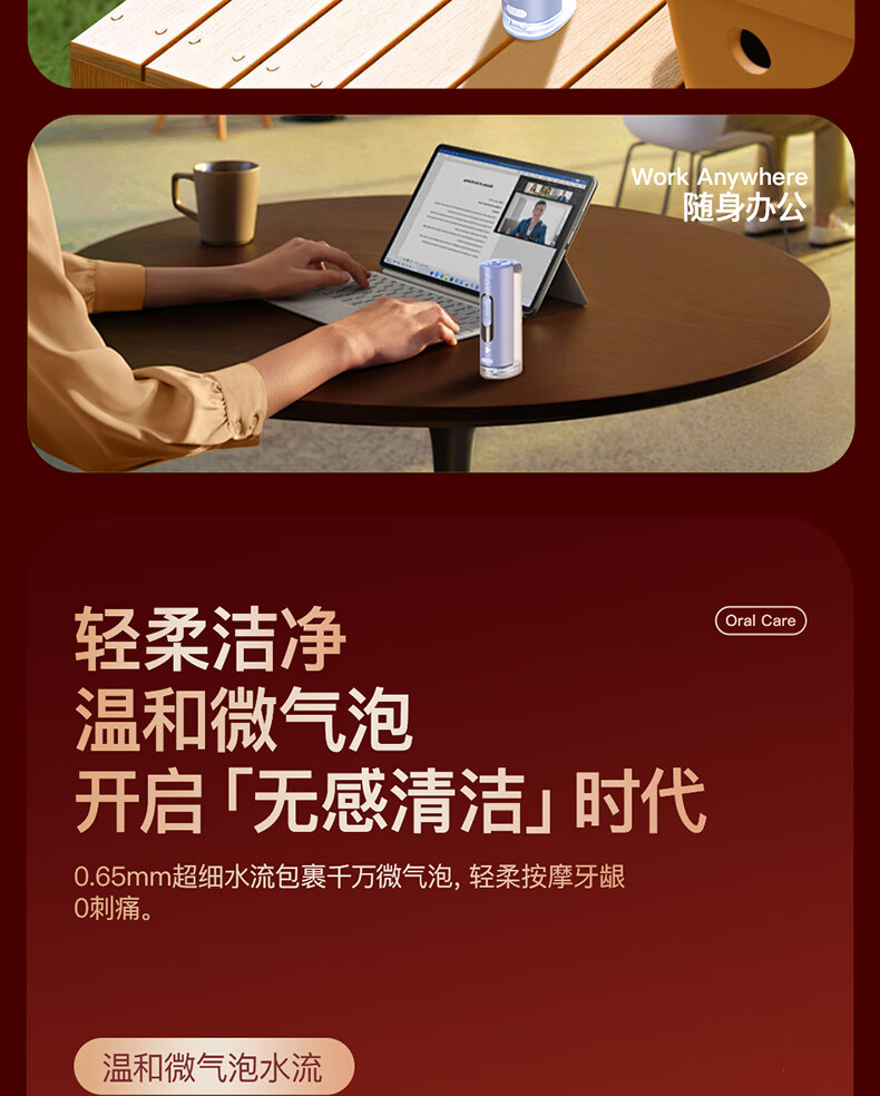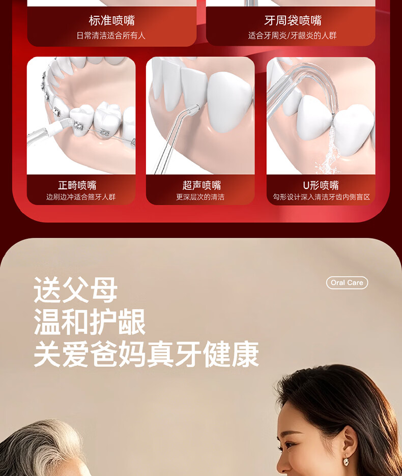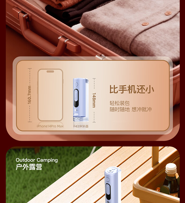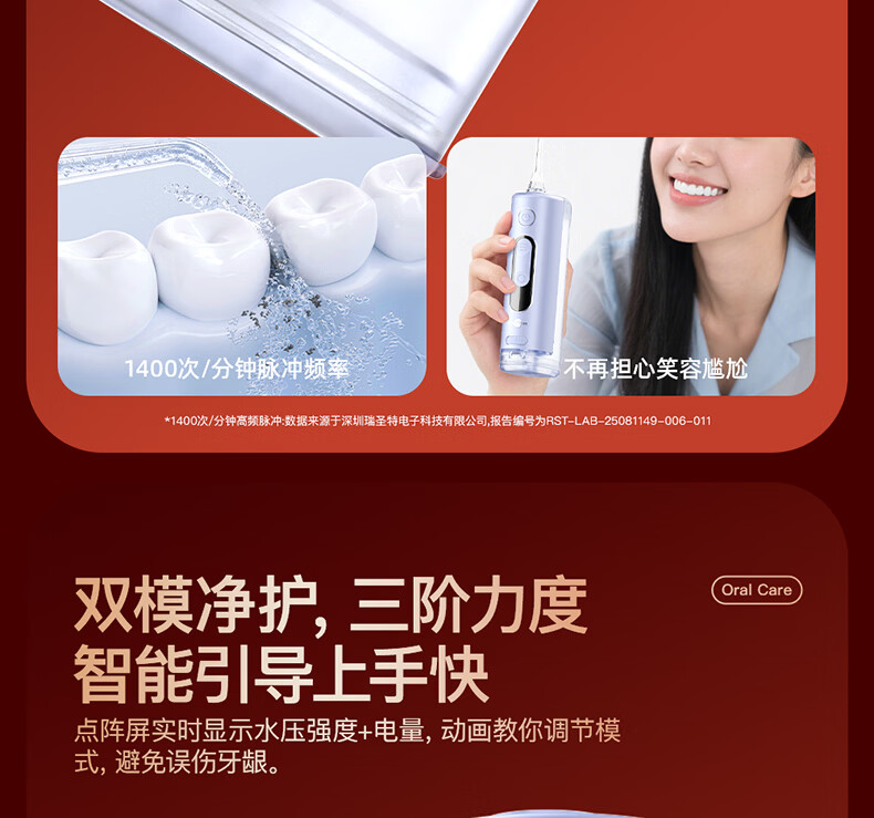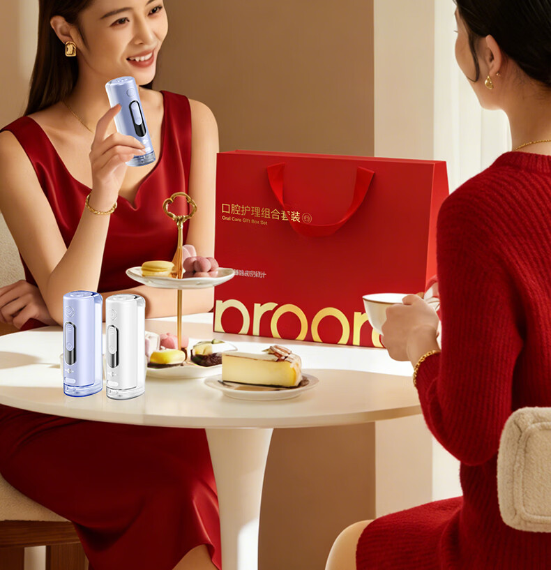 博皓(prooral)电动冲牙器便携洗牙器牙齿冲洗器口腔水牙线牙缝清洁器除牙垢正畸喷嘴磁吸可拆卸水箱 F43礼盒版 雾蓝