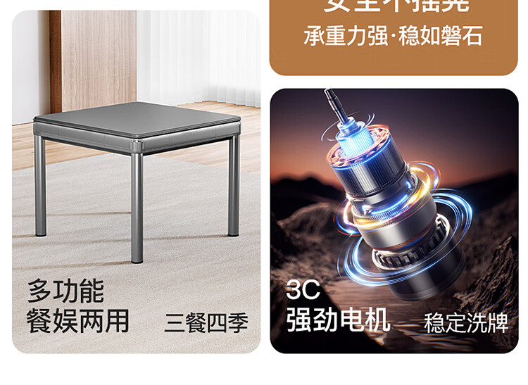 如喜【扑克麻将机】全自动旋风过山车免推牌折叠低音餐桌家两用一体 【低音5.0一键降噪】防侧翻折叠-星空灰