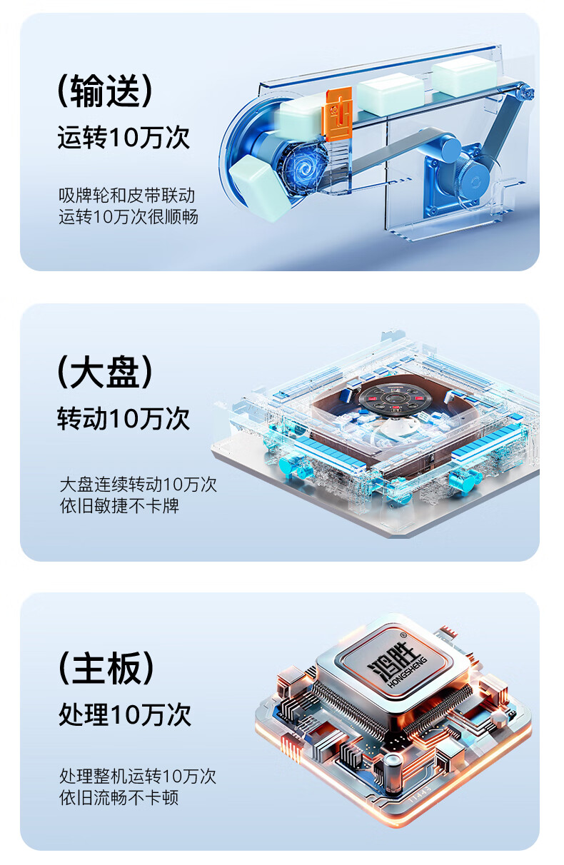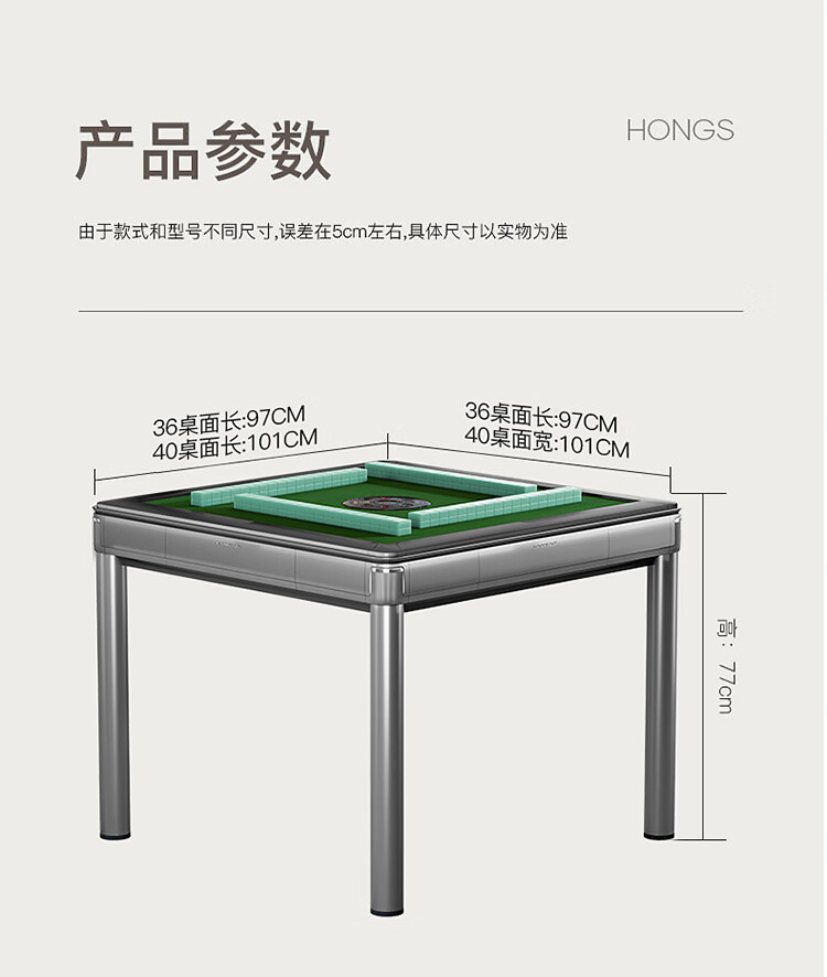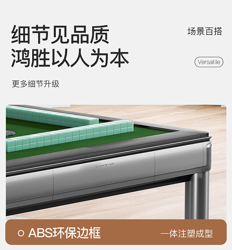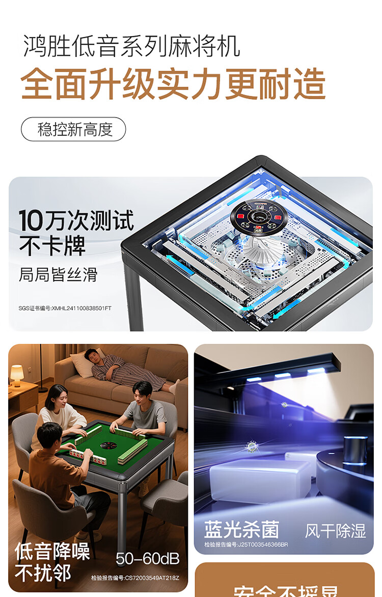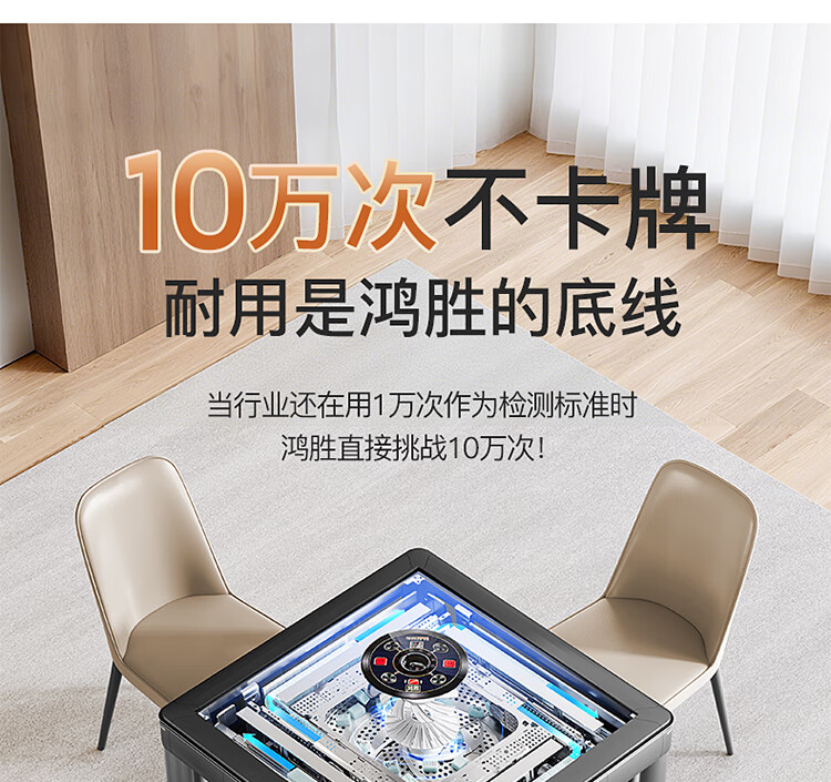 鸿胜【十万次0故障+180天换新】麻将机全自动餐麻将桌家两用低音电动 01【JD物流】低音带盖板-星空灰