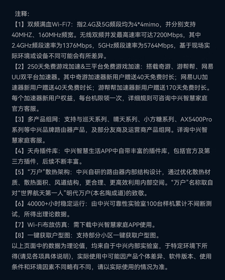 中兴(ZTE)【问天】BE7200Pro+ WiFi7家用无线路由器 双频聚合游戏加速 8颗独立放大器 满血2.5G网口