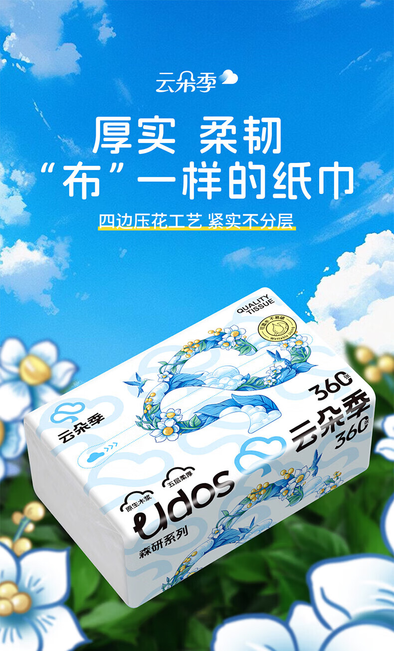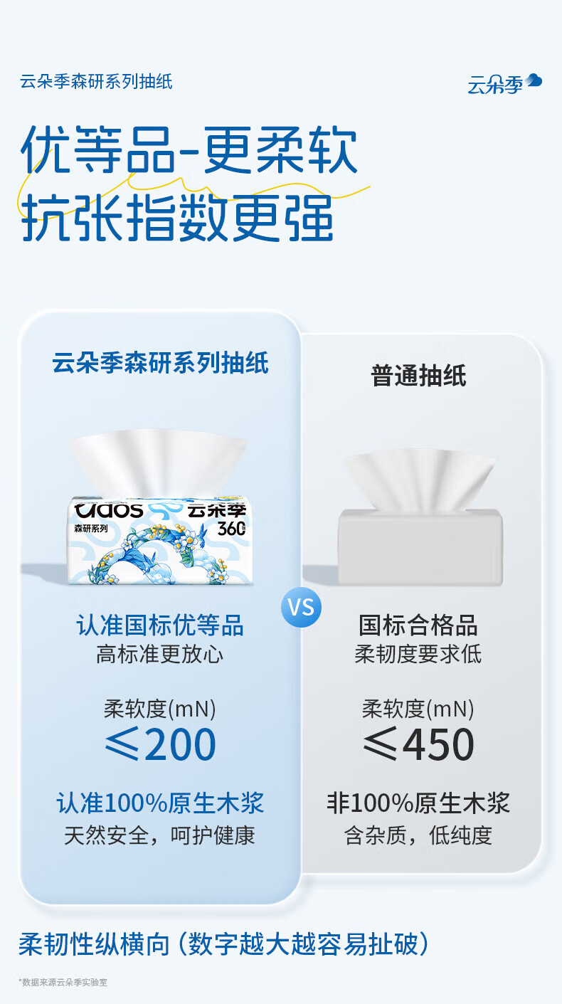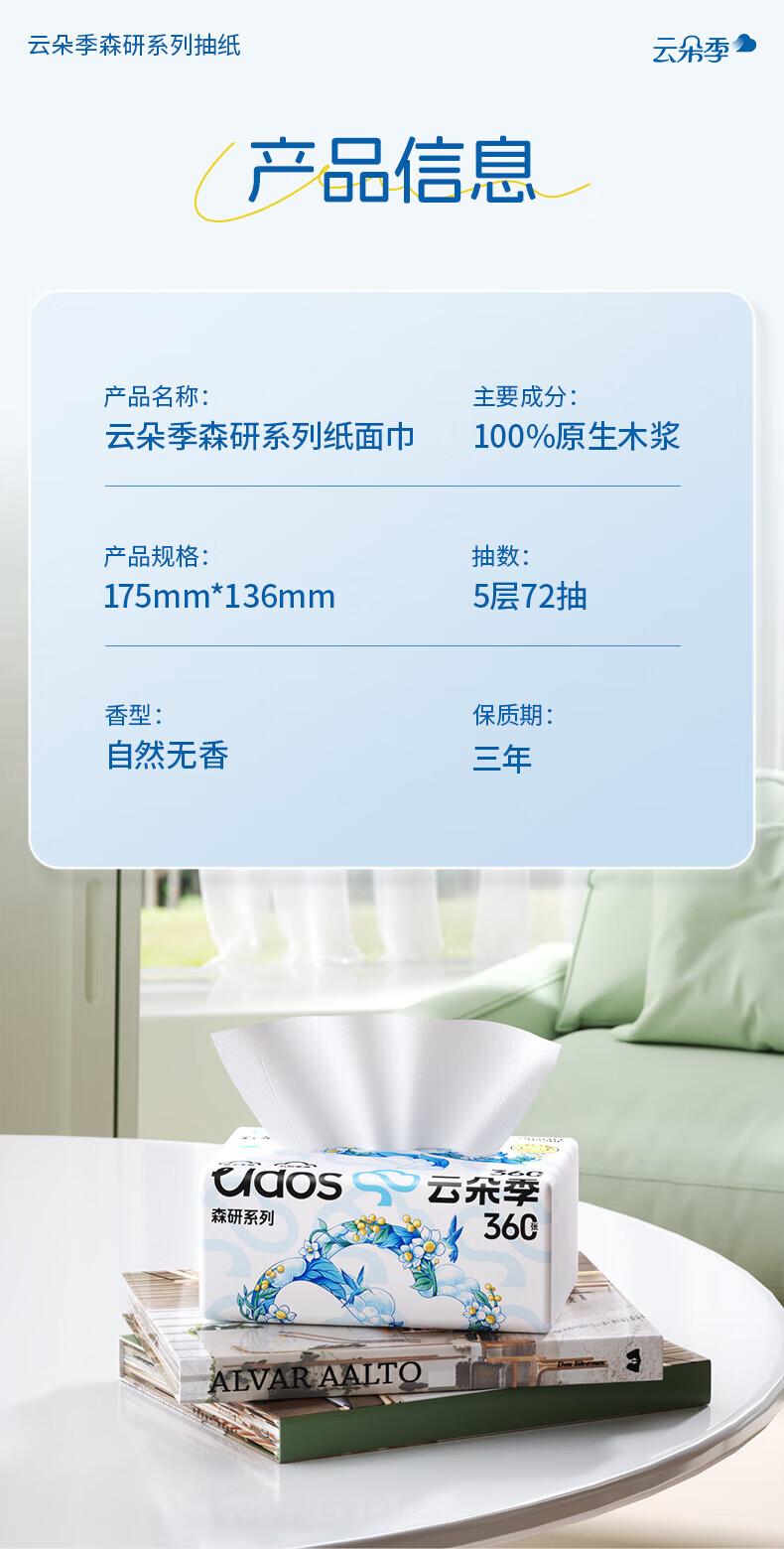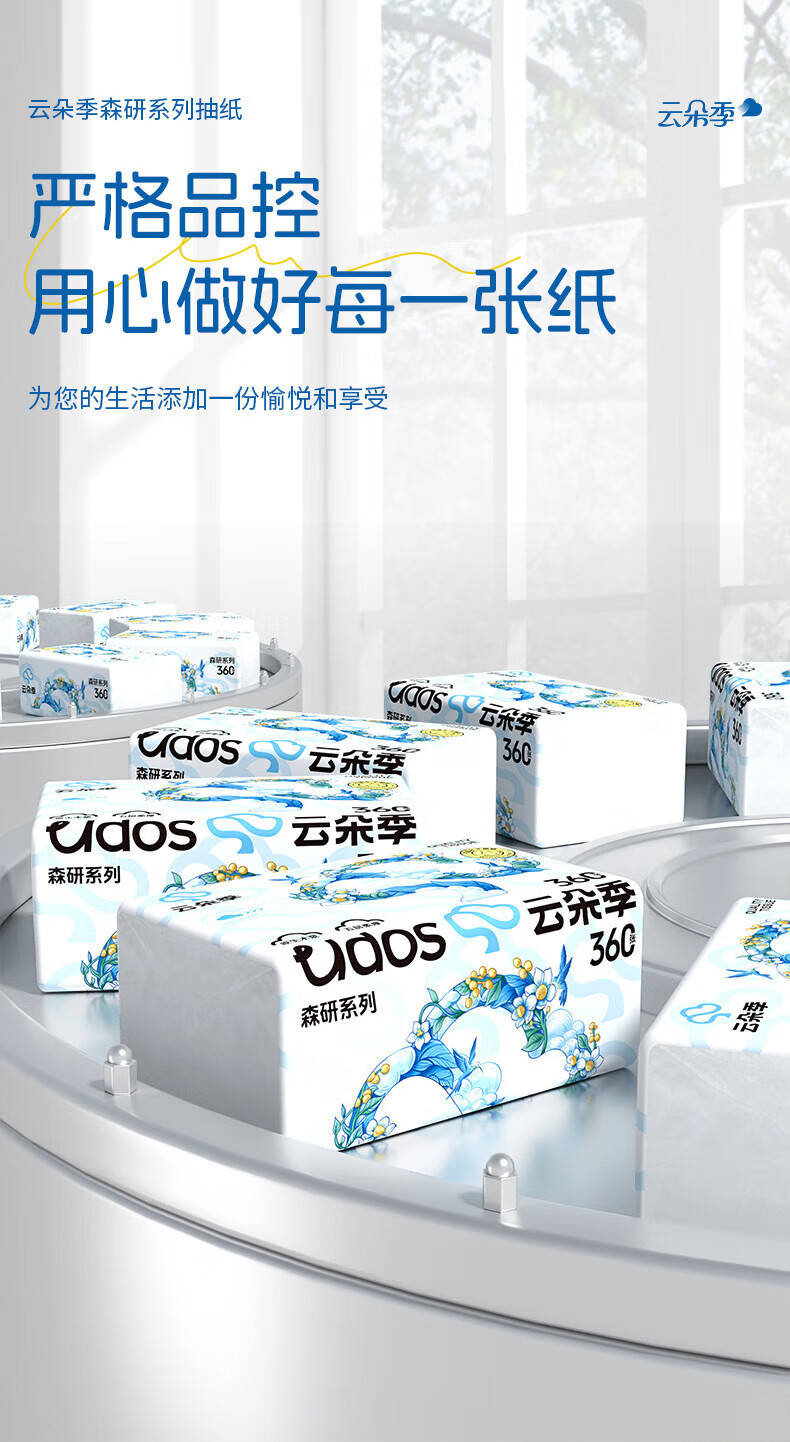 云朵季医护级加厚抽纸纸巾家用整箱优等品餐巾纸面巾纸卫生纸 5层 360张*24包
