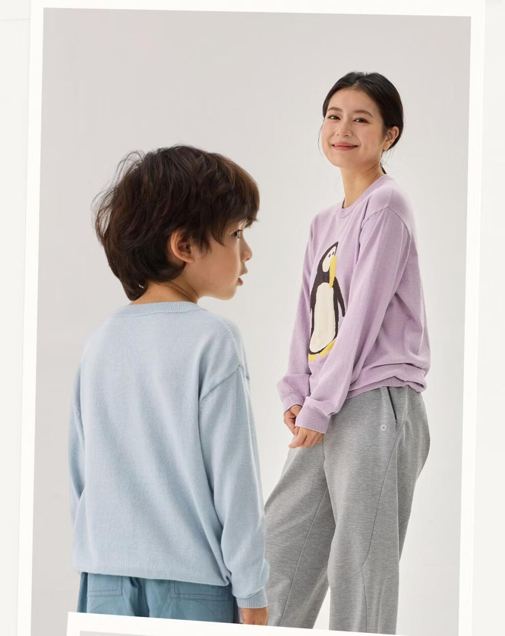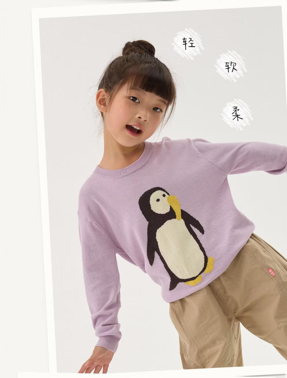 Q21直播小奶芙提花毛衣儿童春款长袖针织衫男女童轻薄圆领打底上衣 小象灰 130 cm