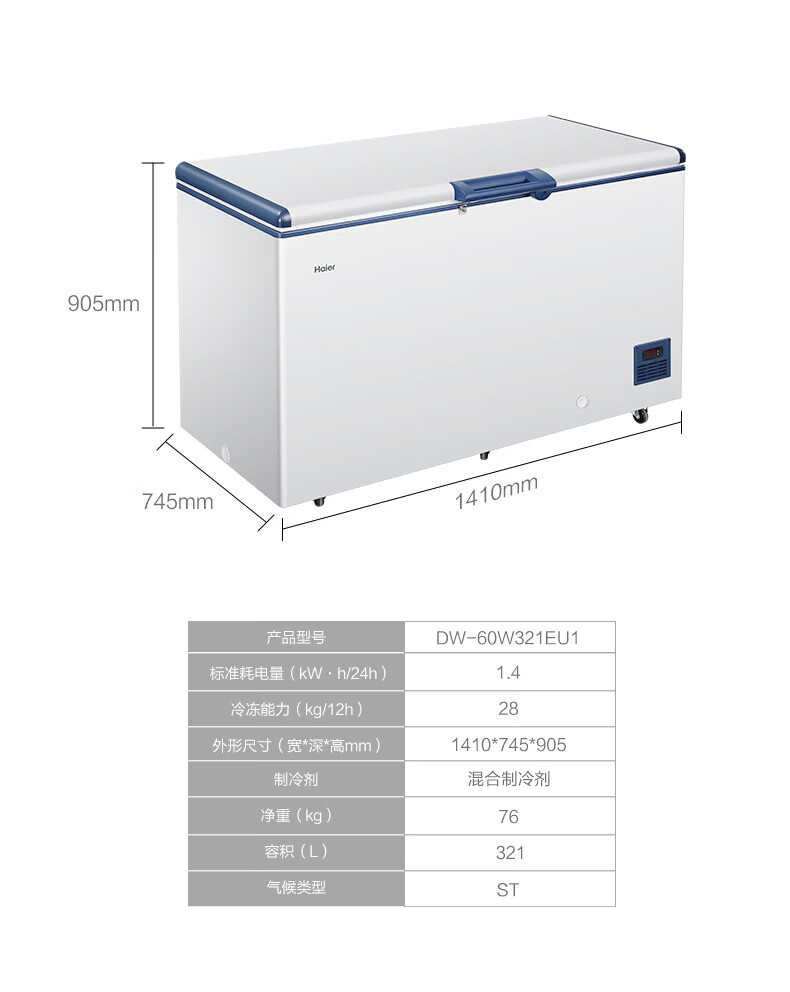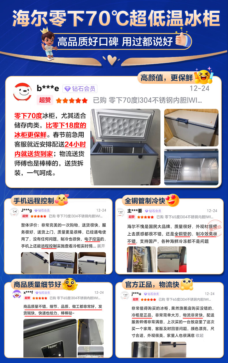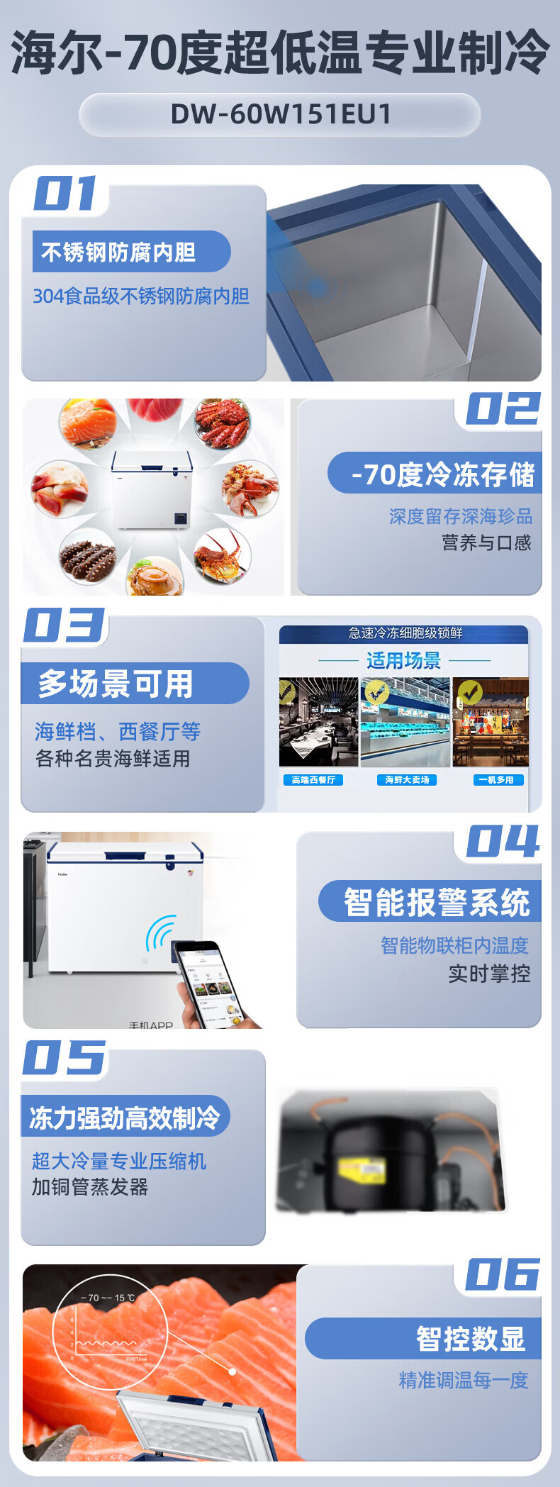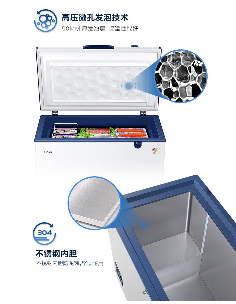海尔(Haier)超低温冰柜零下负-70/-65/-60℃度商用家用大容量卧式冷冻柜金枪鱼海鲜柜一级能效以旧换新 零下70度|不锈钢内胆|全铜管|手机互联 151L