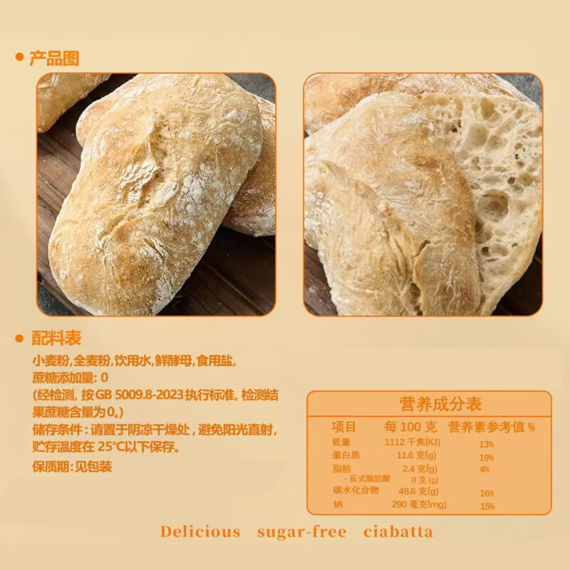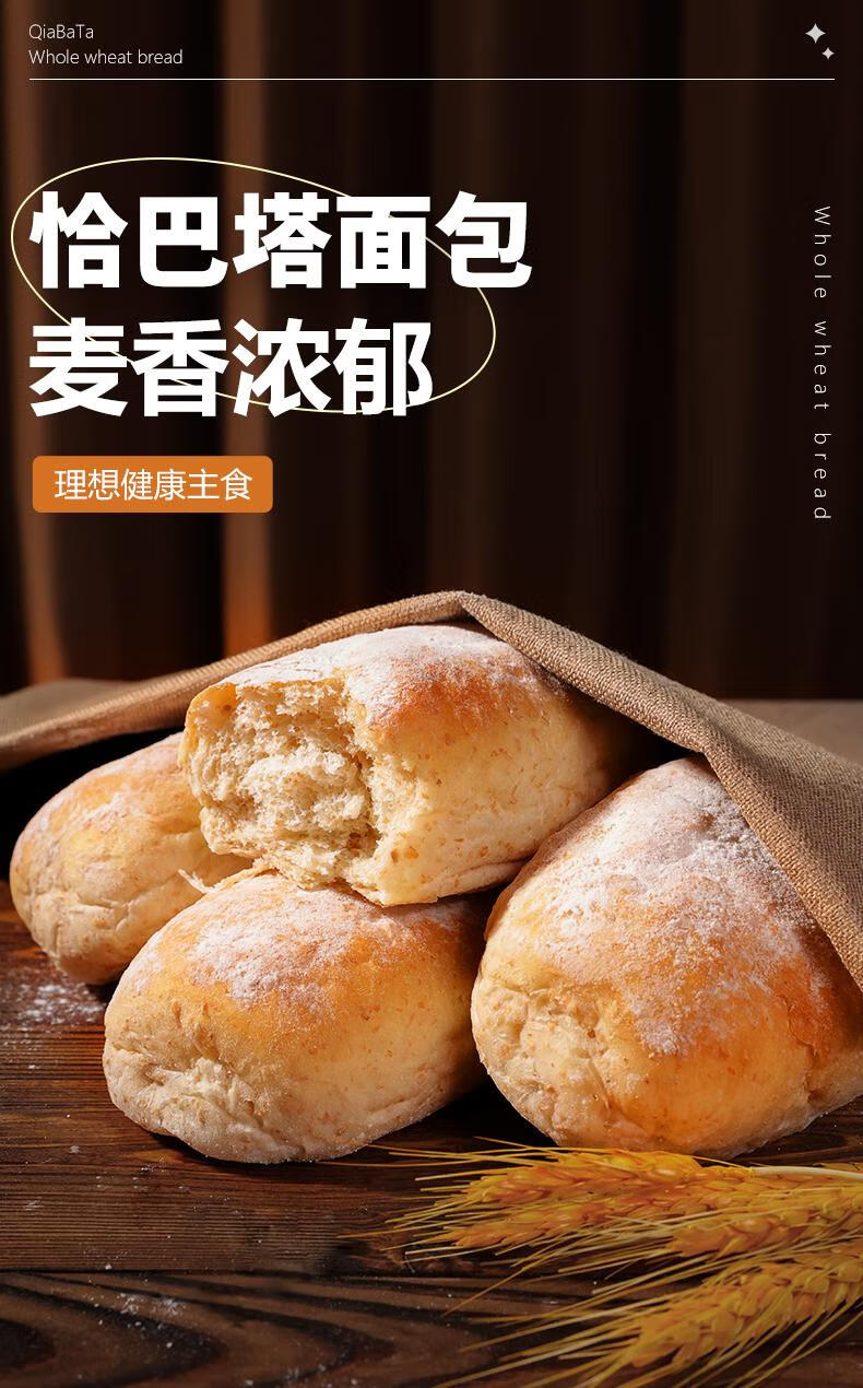 自然道1休闲零食糕点点心宵夜零食 恰巴塔全麦面包80gX10枚