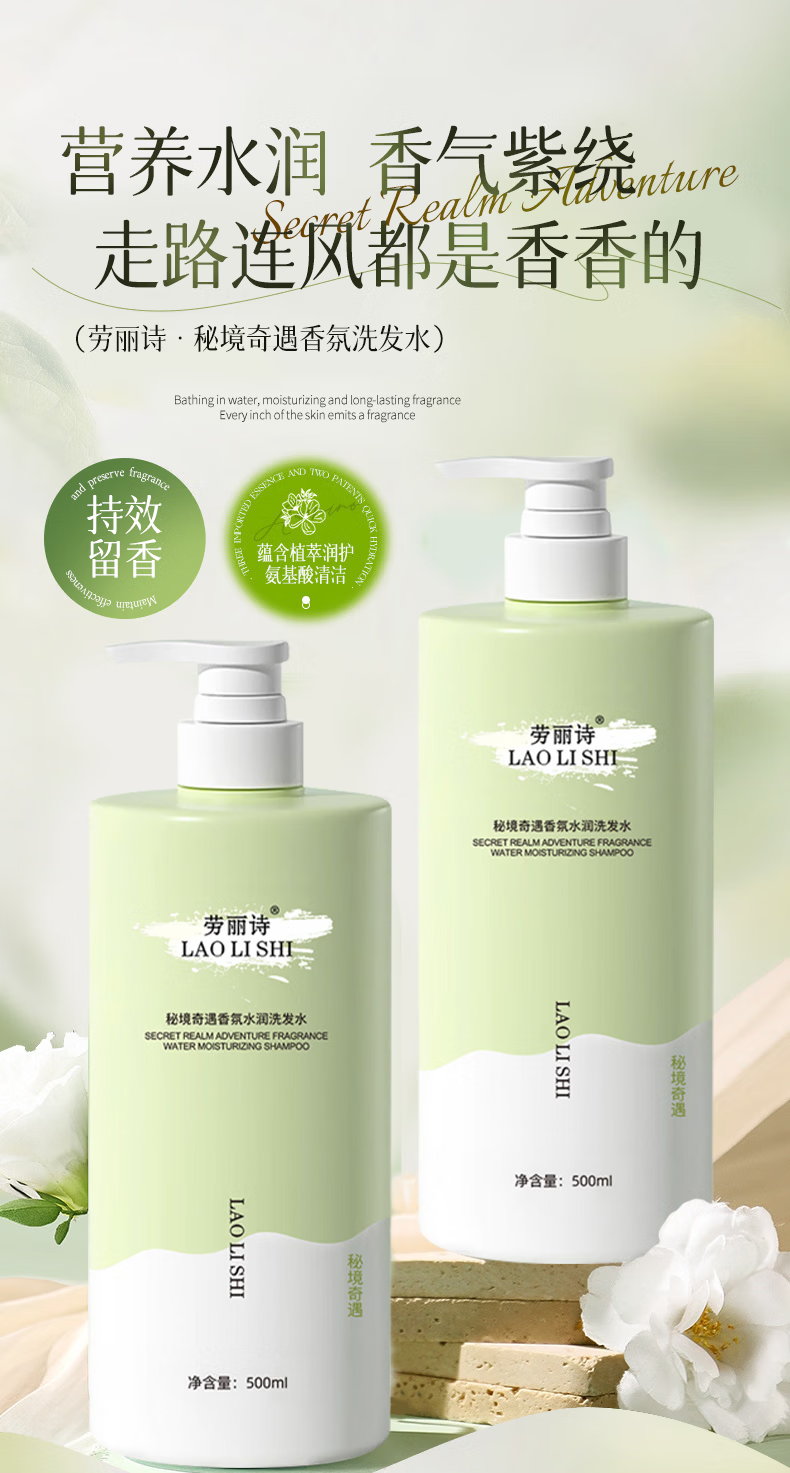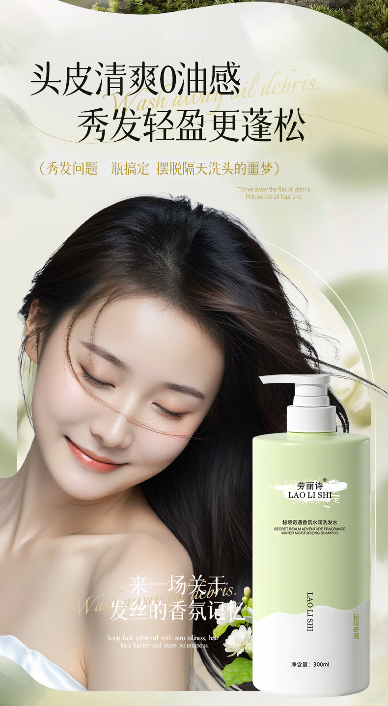 劳丽诗秘境奇遇香氛洗发水清爽滋润柔顺蓬松去屑男女通用水润亮泽洗发露 秘境奇遇洗发水300ML-2瓶