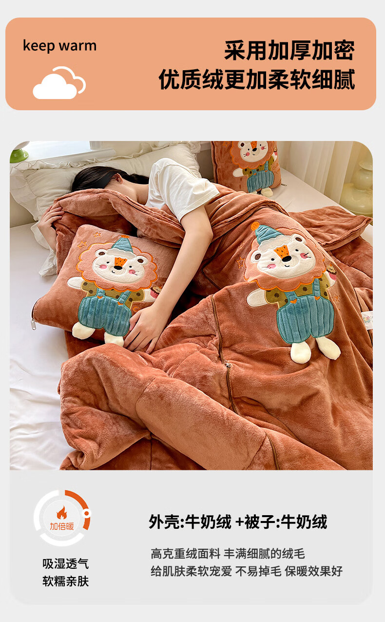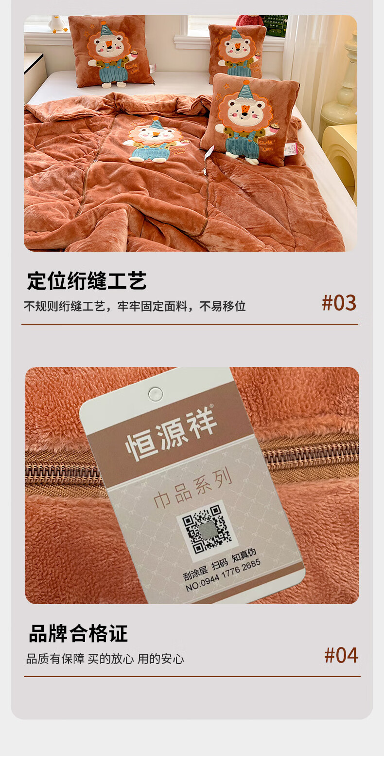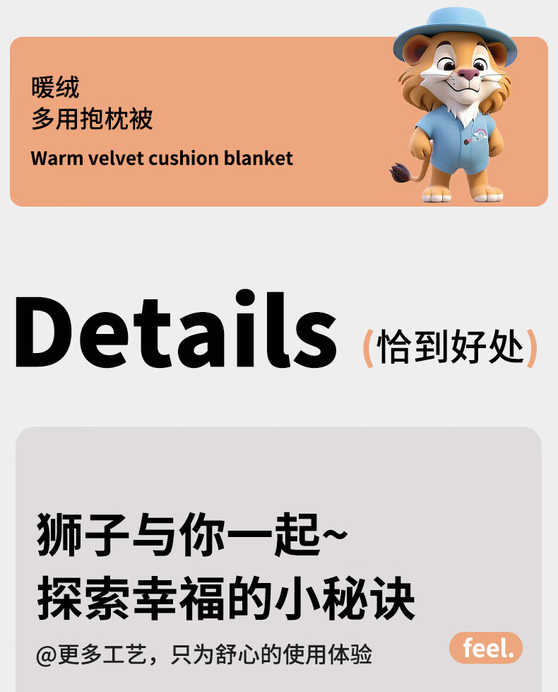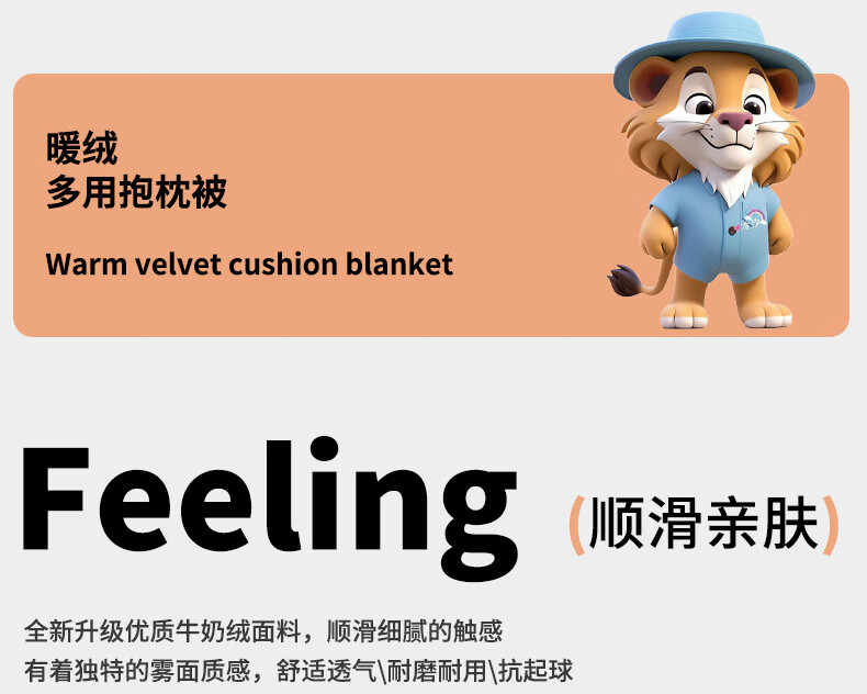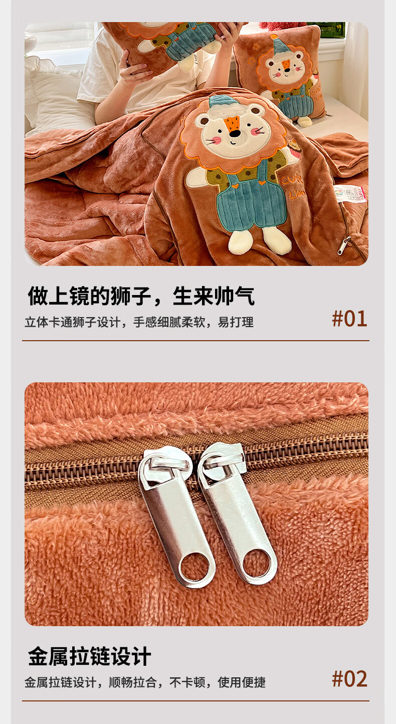 恒源祥牛奶绒小狮子抱枕被二合一加绒办公室午睡毯车载毛毯汽车抱枕被 牛奶绒小狮子抱枕被 -灰色 40cm*40cm 展开105*145cm