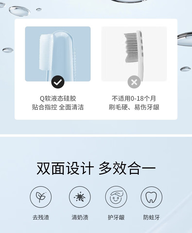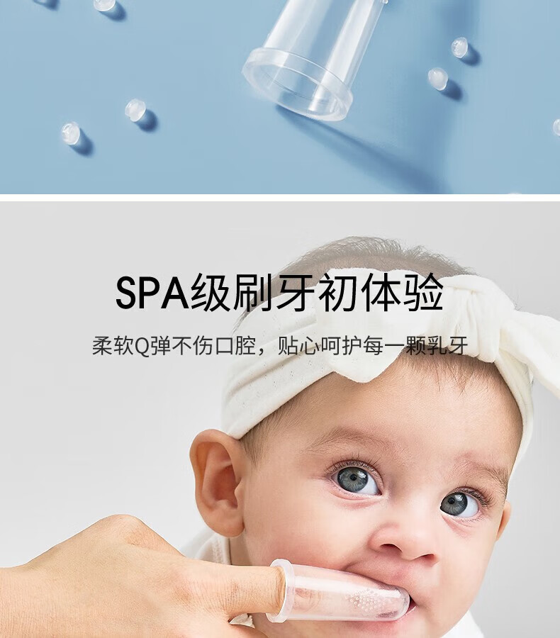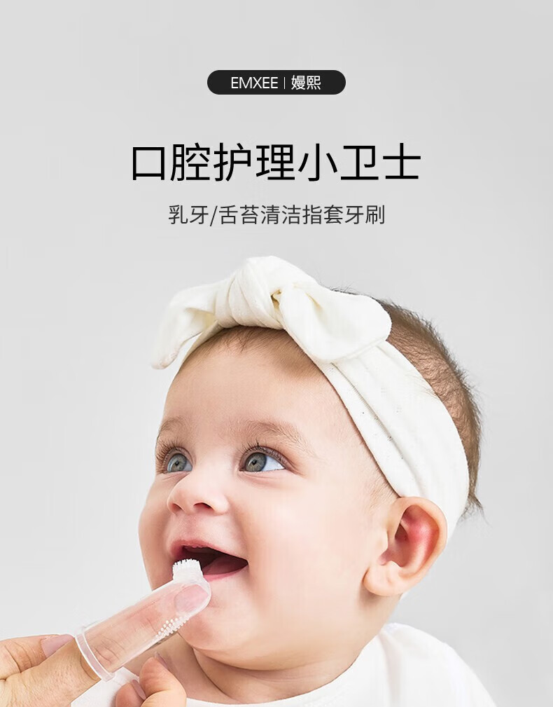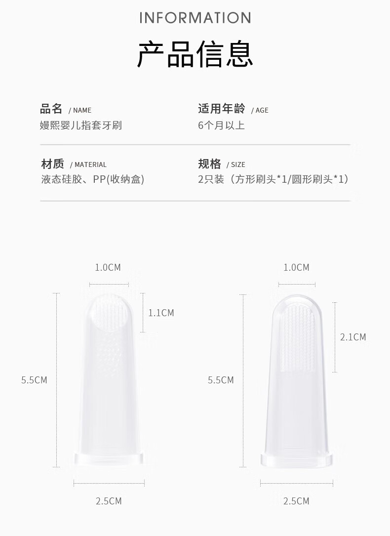 嫚熙(EMXEE)宝宝指套牙刷刷舌苔儿童清洁乳牙刷0岁1岁 硅胶牙刷2只