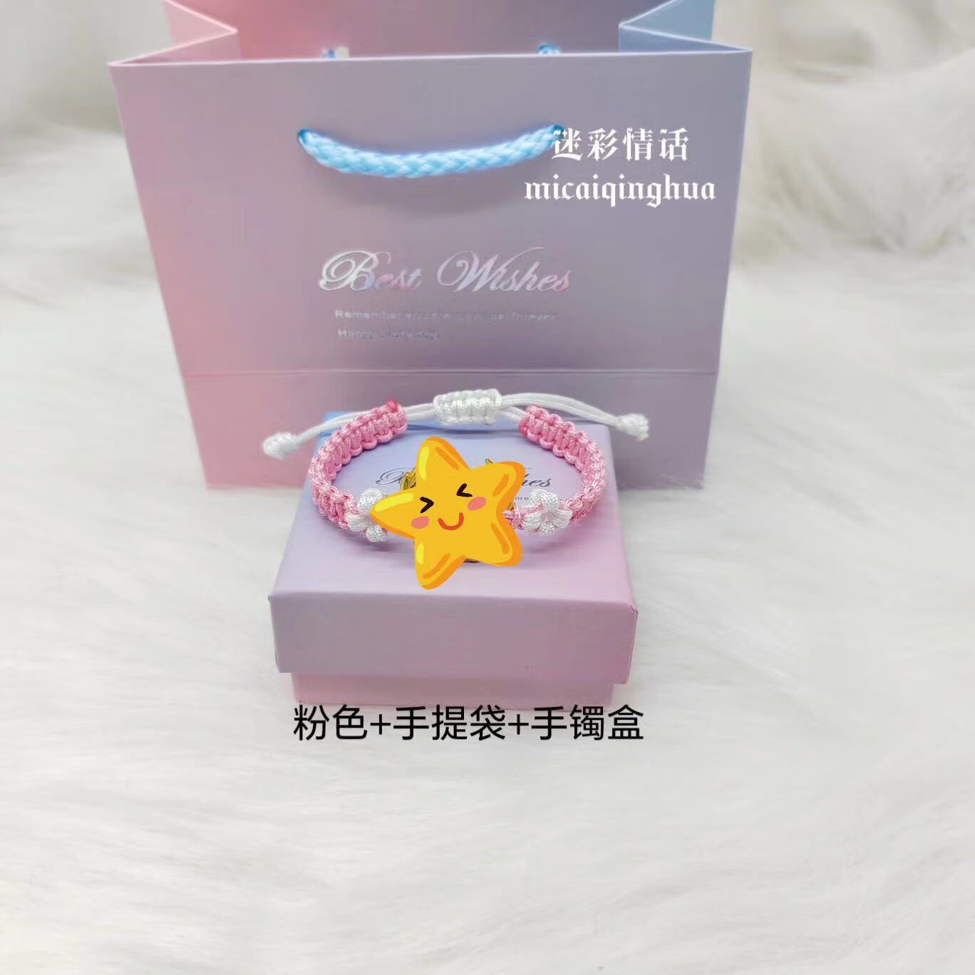 虞漫桃花结领花手绳军恋手环手工编织手链兵哥哥送军嫂520七夕礼物 粉色+礼盒 五井找客服看图