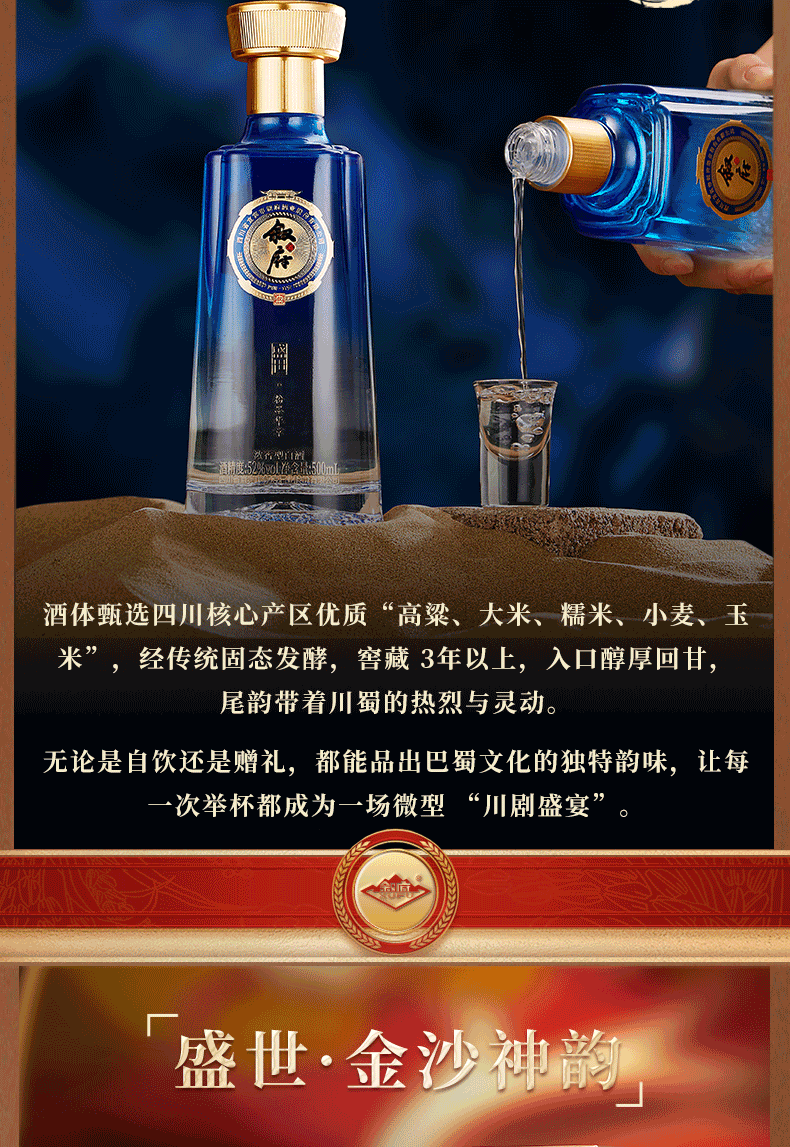 叙府盛世 五粮浓香型白酒 商务宴请接待酒 高端礼盒酒过年送礼长辈 52度 500mL 4盒 整箱装·金沙神韵
