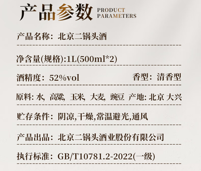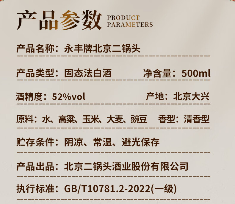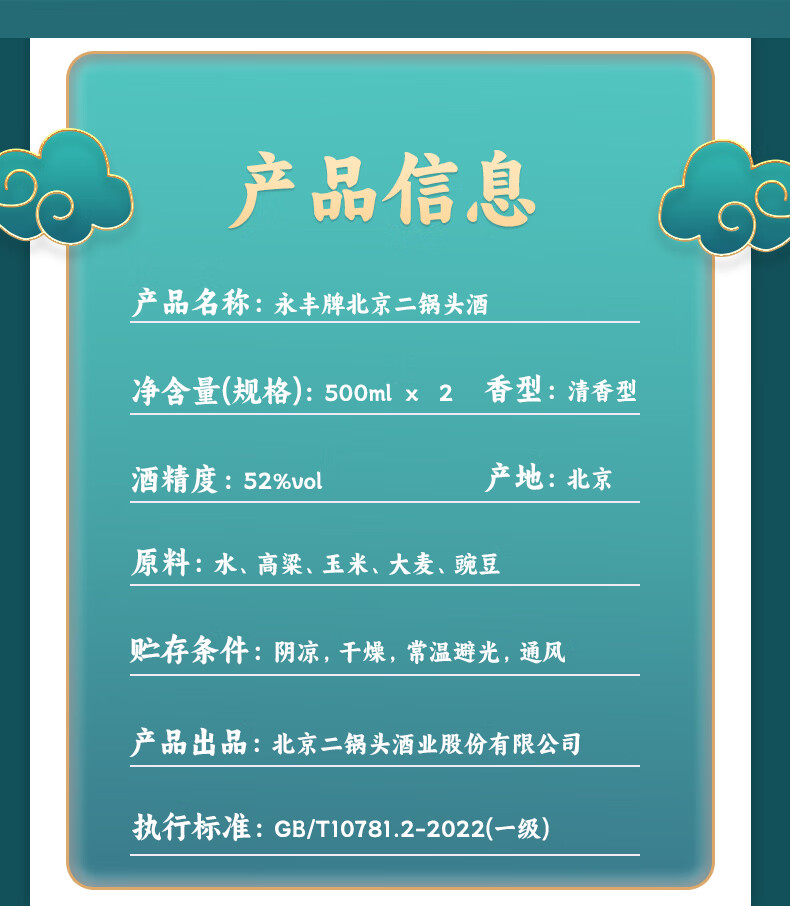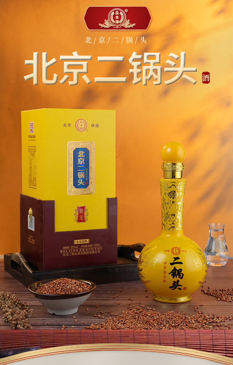 永丰牌北京二锅头 粮食白酒 清香型永丰白酒 节日礼品 52度 500mL 2瓶 青龙礼盒