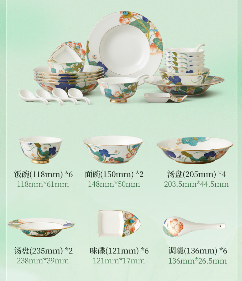 永丰源(auratic) 幸福和鸣26头36头餐具套装 8人位高档陶瓷饭碗菜盘鱼盘 乔迁礼品 幸福和鸣26头餐具(6人位) 26头