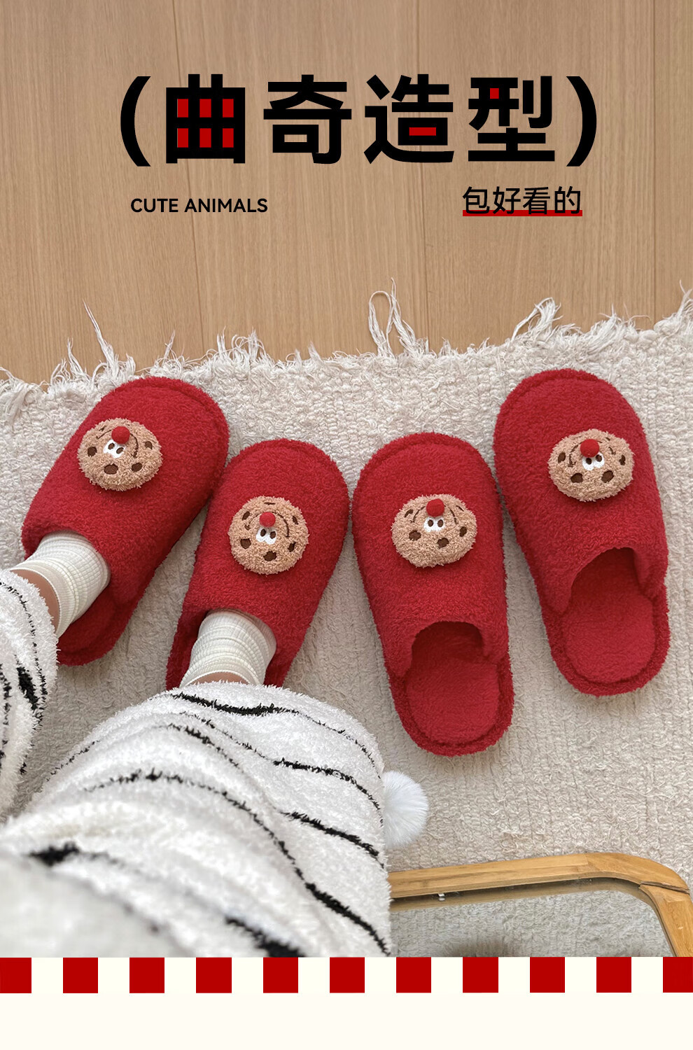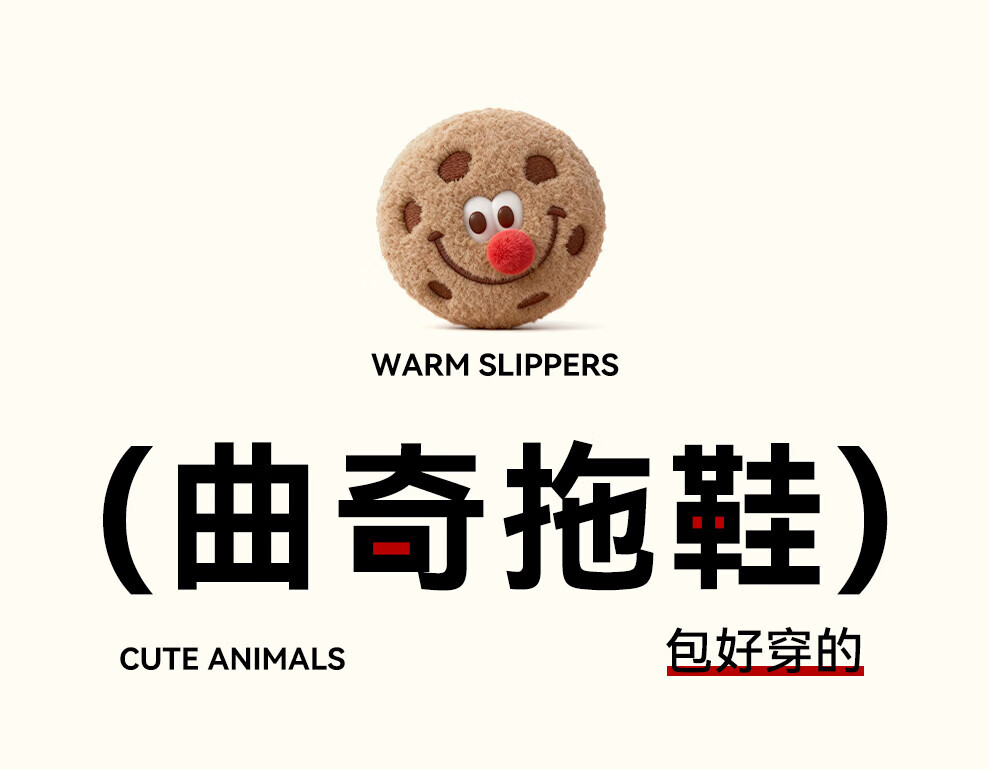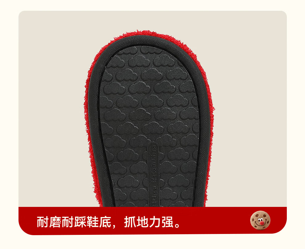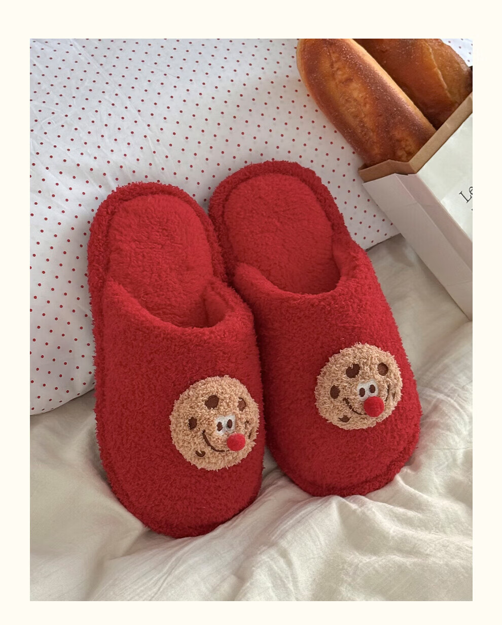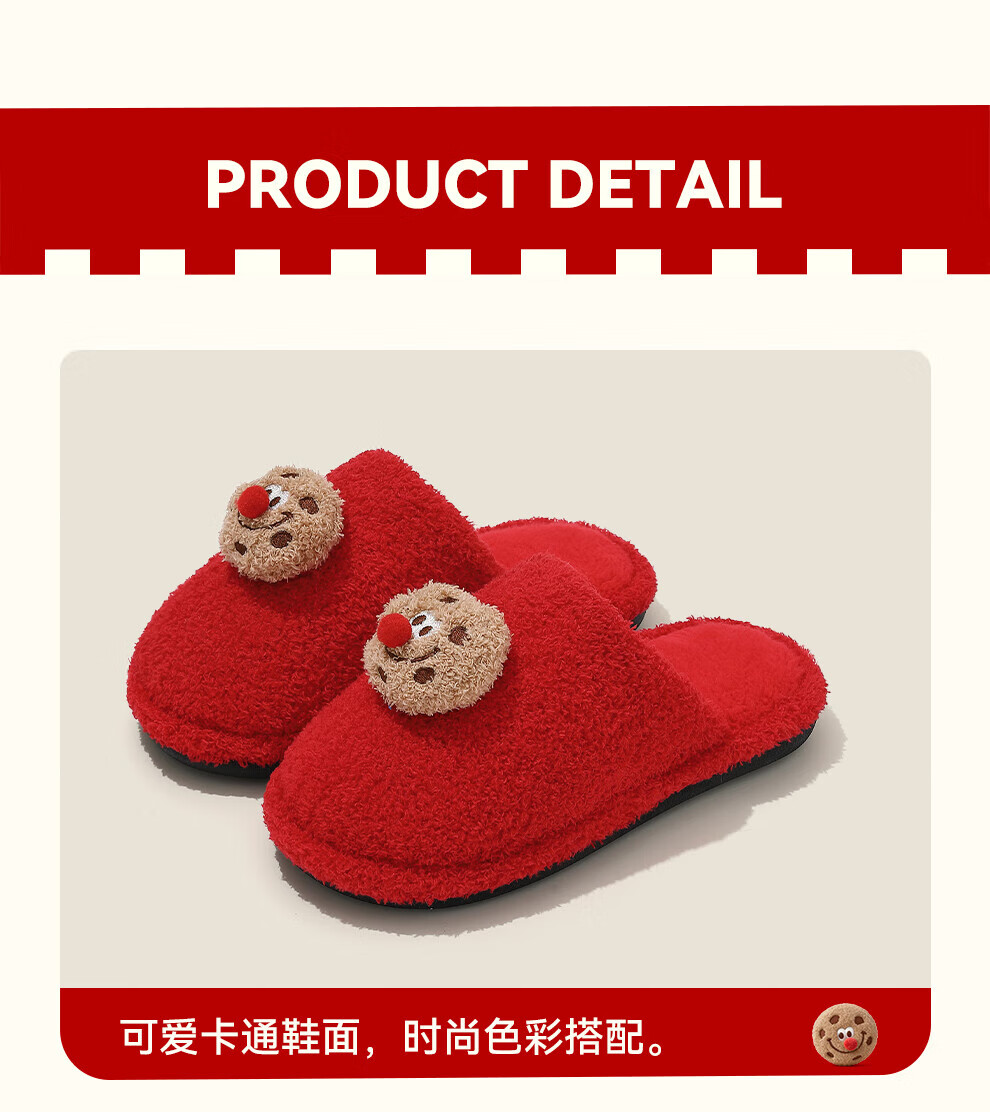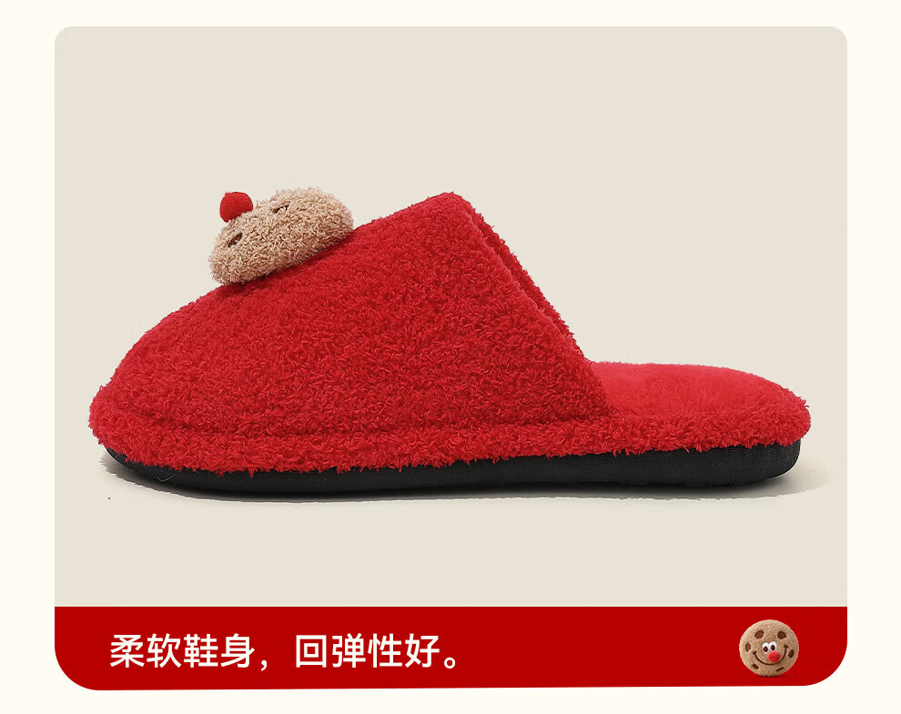 FZT棉拖鞋女2025秋冬季新款可爱红鼻子曲奇毛毛绒家居保暖棉拖鞋男士 红色 36-37 标准码