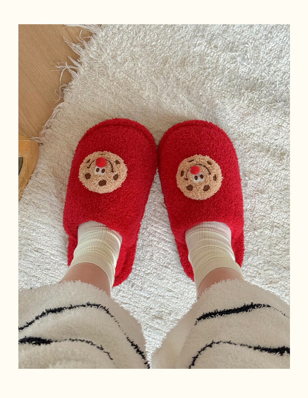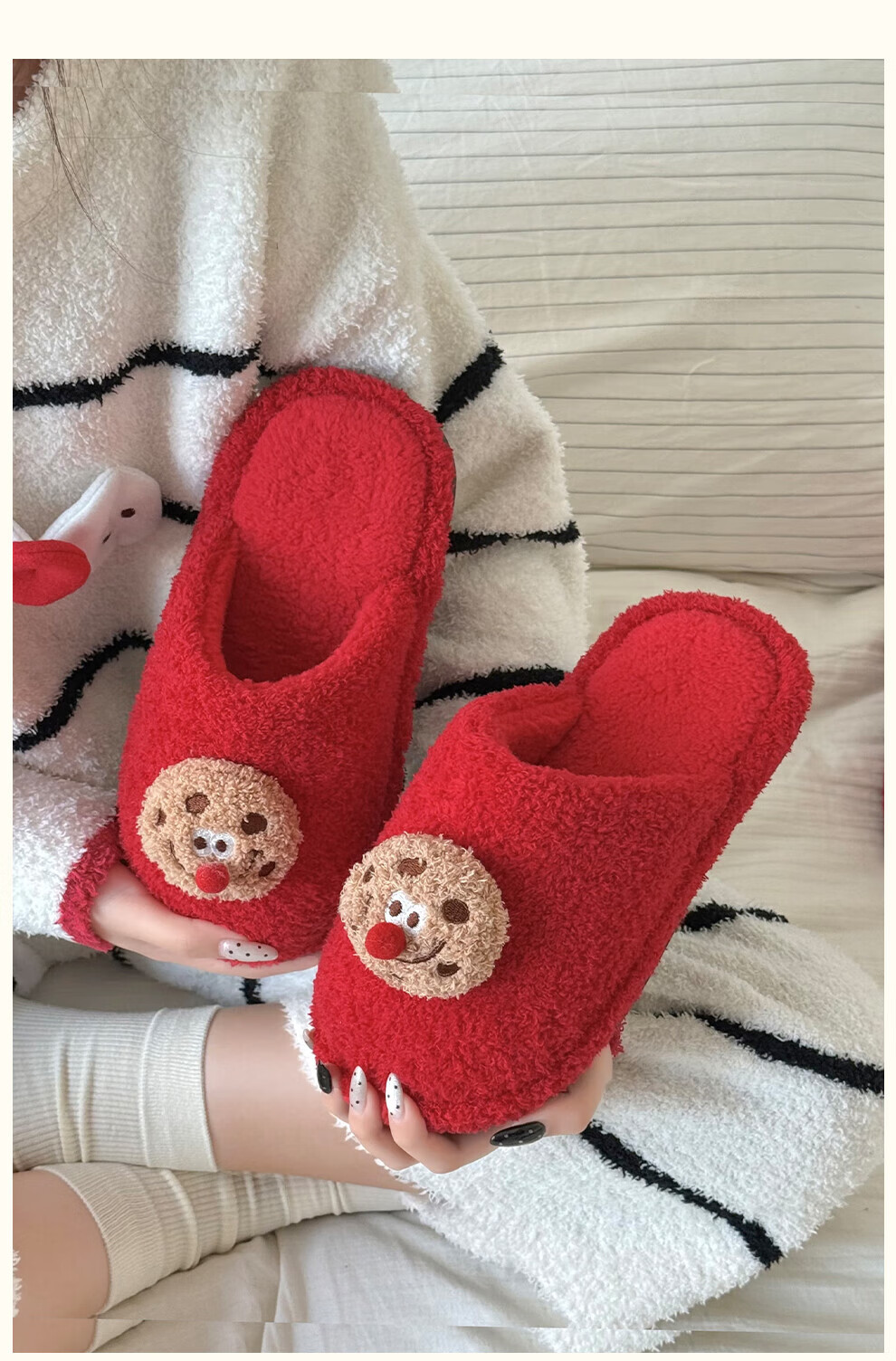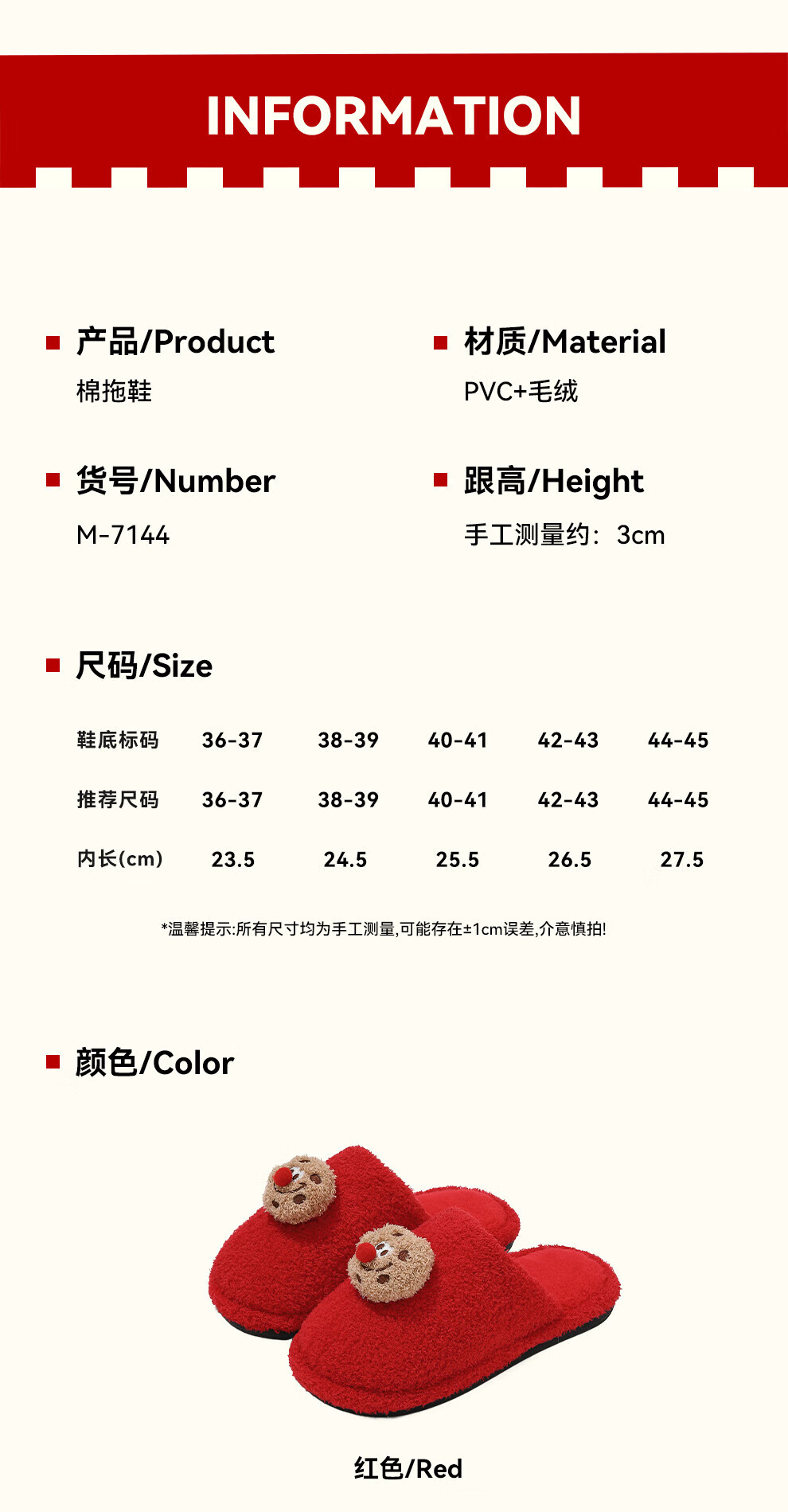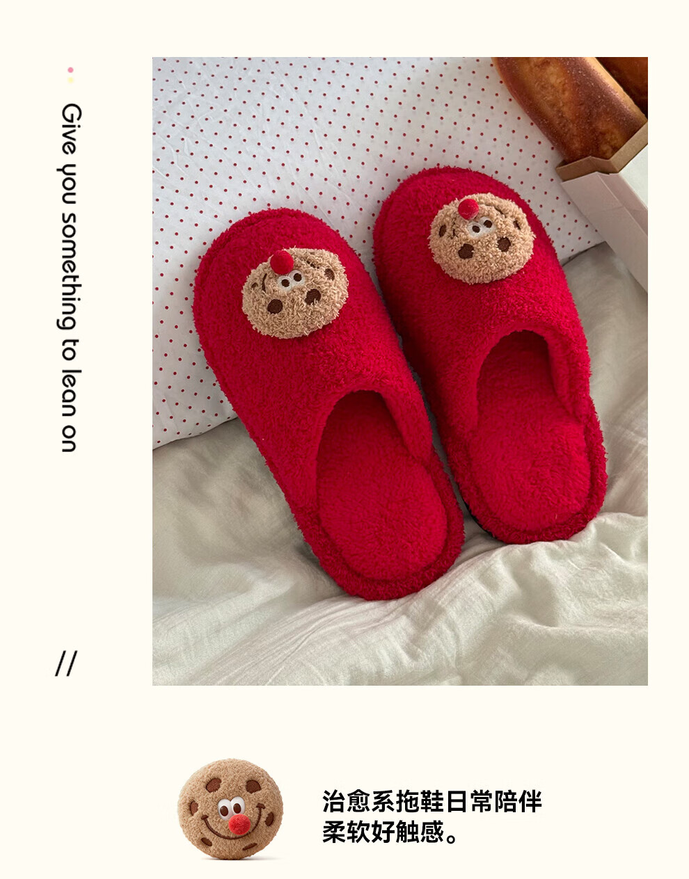 FZT棉拖鞋女2025秋冬季新款可爱红鼻子曲奇毛毛绒家居保暖棉拖鞋男士 红色 36-37 标准码