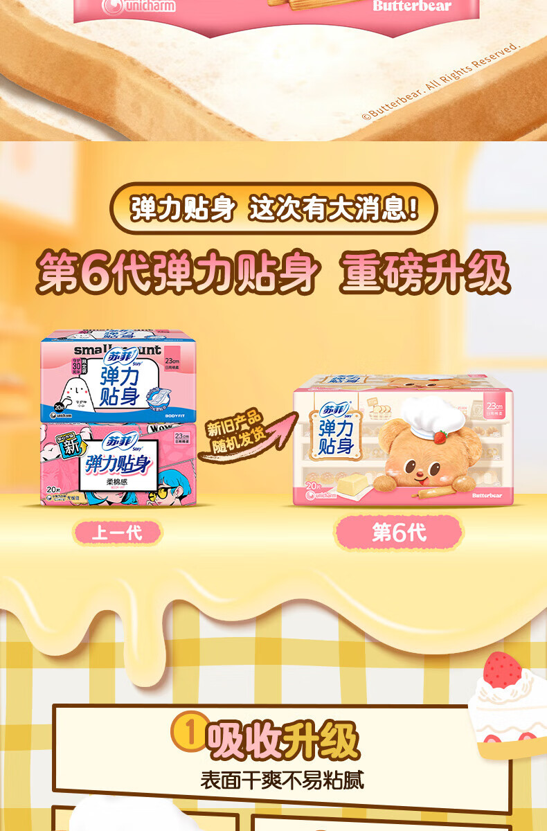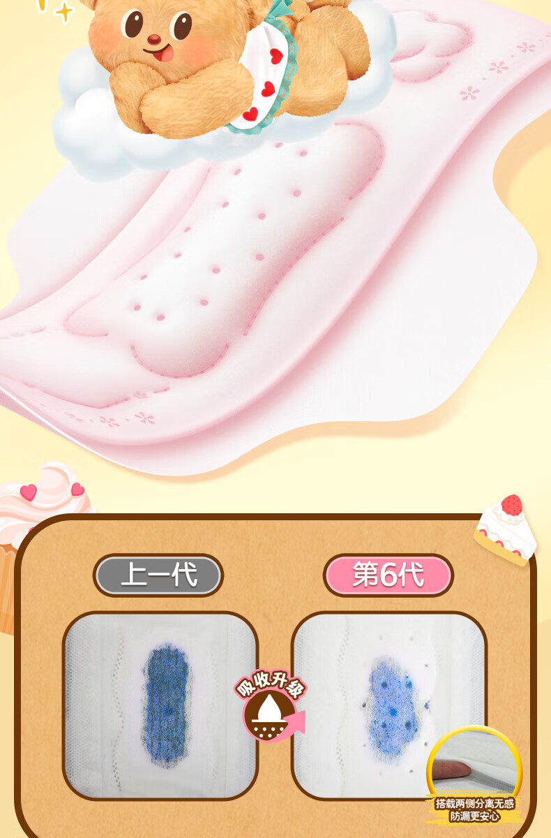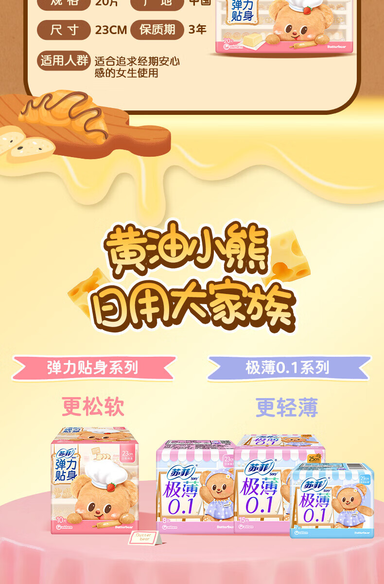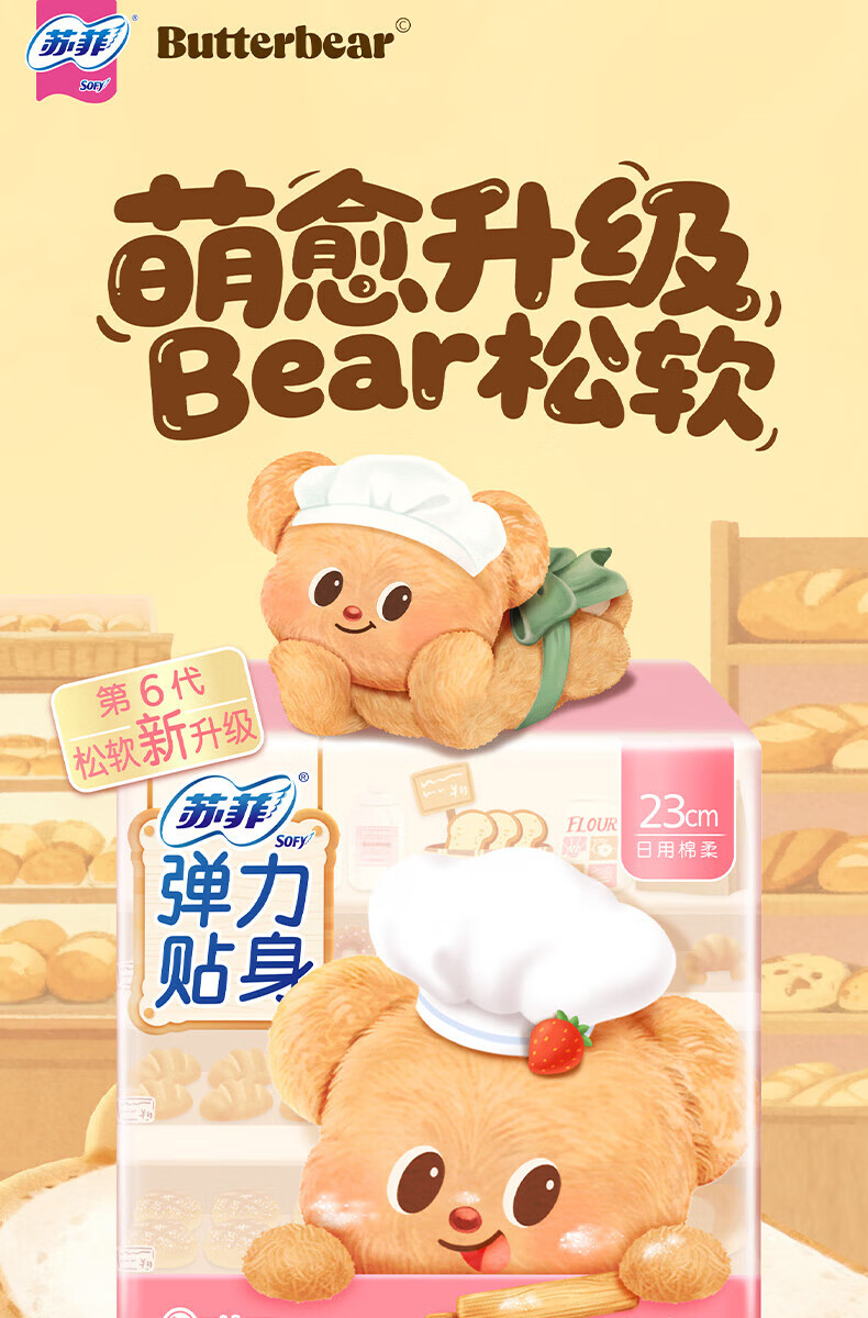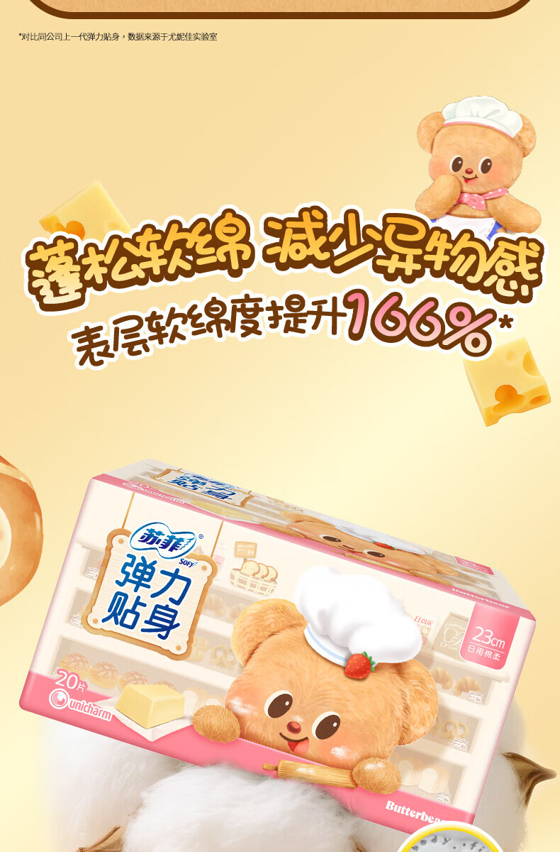 苏菲卫生巾黄油小熊日用230mm棉柔姨妈巾整箱防漏批发组合装 【75片】日用 230mm 20片 +290mm7片+140mm48片