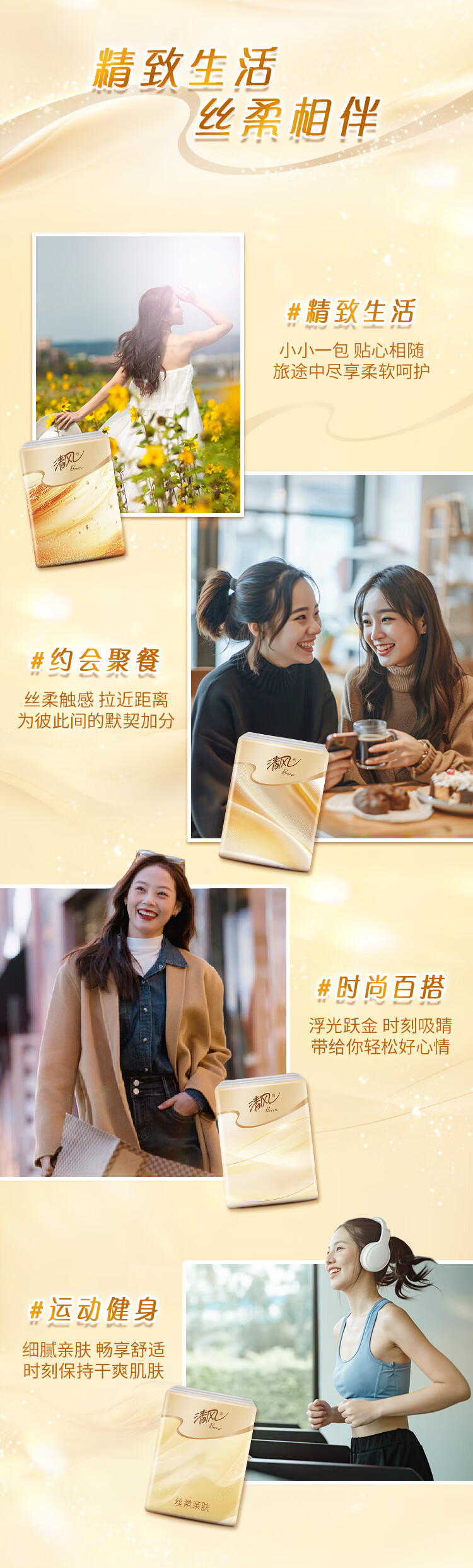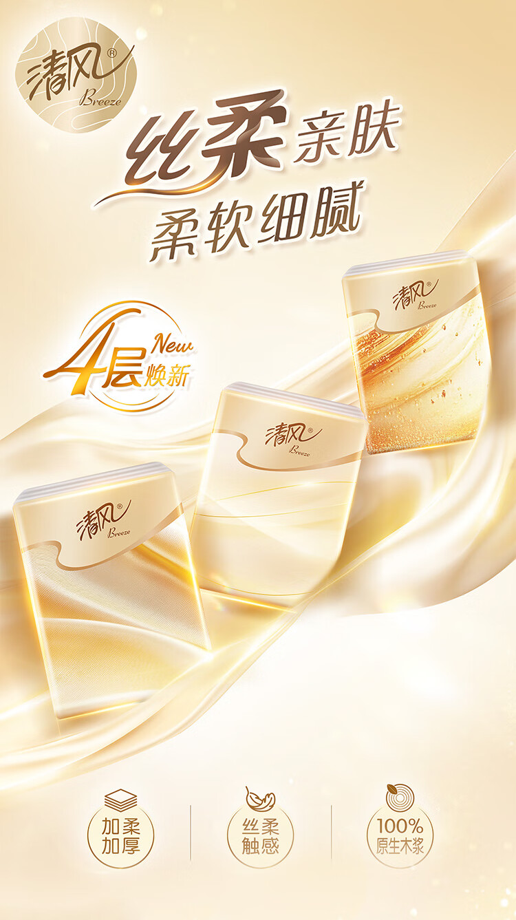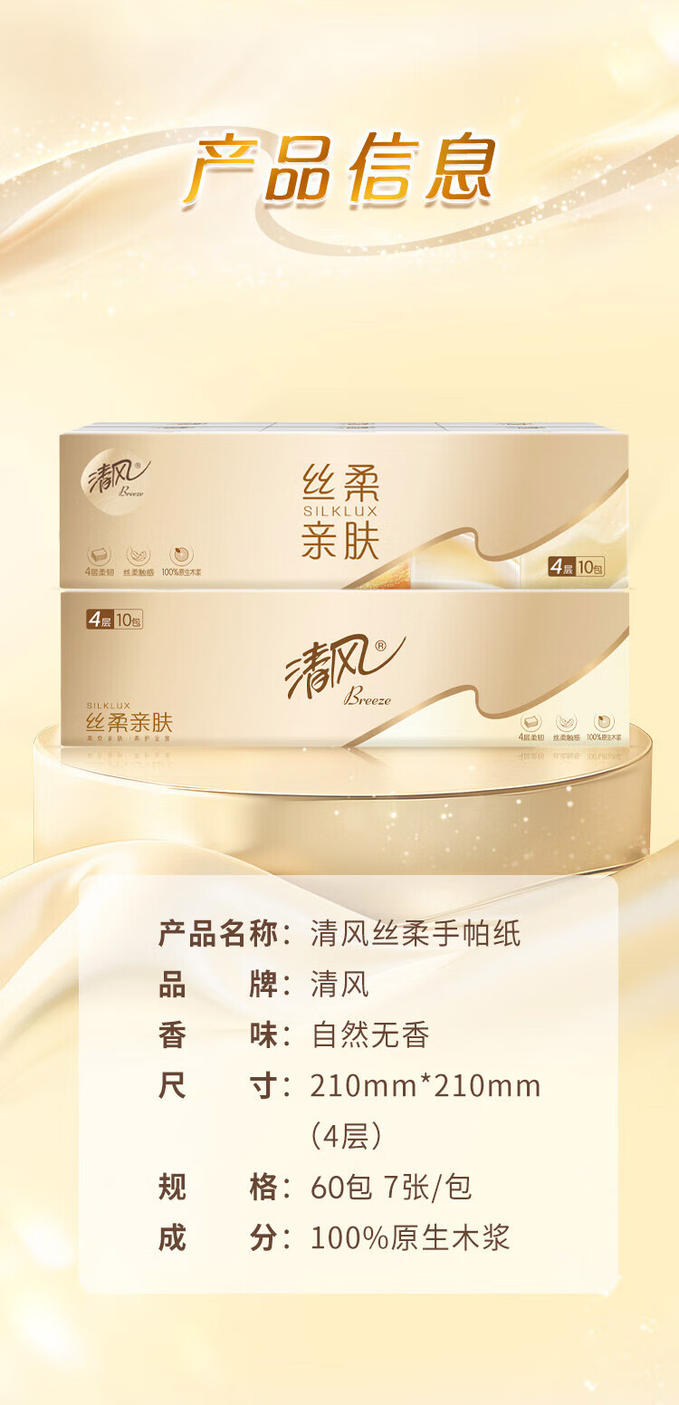 清风丝柔无香手帕纸4层7张*60包 小包 家庭装 卫生纸 整箱