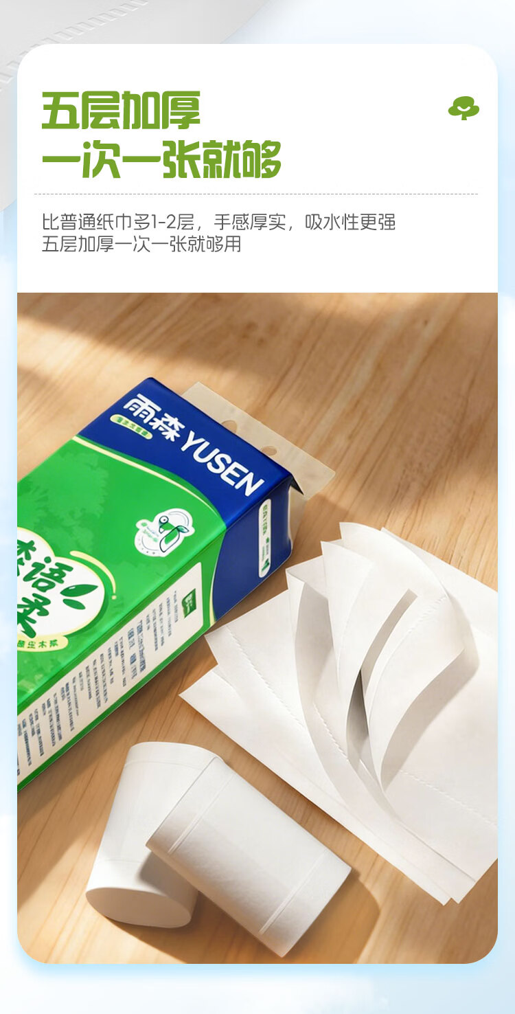 雨森超韧可湿水抽纸5层加厚100%原生木奖纸巾家用卫生纸纸面巾 5层 100抽*16包 【家庭装】