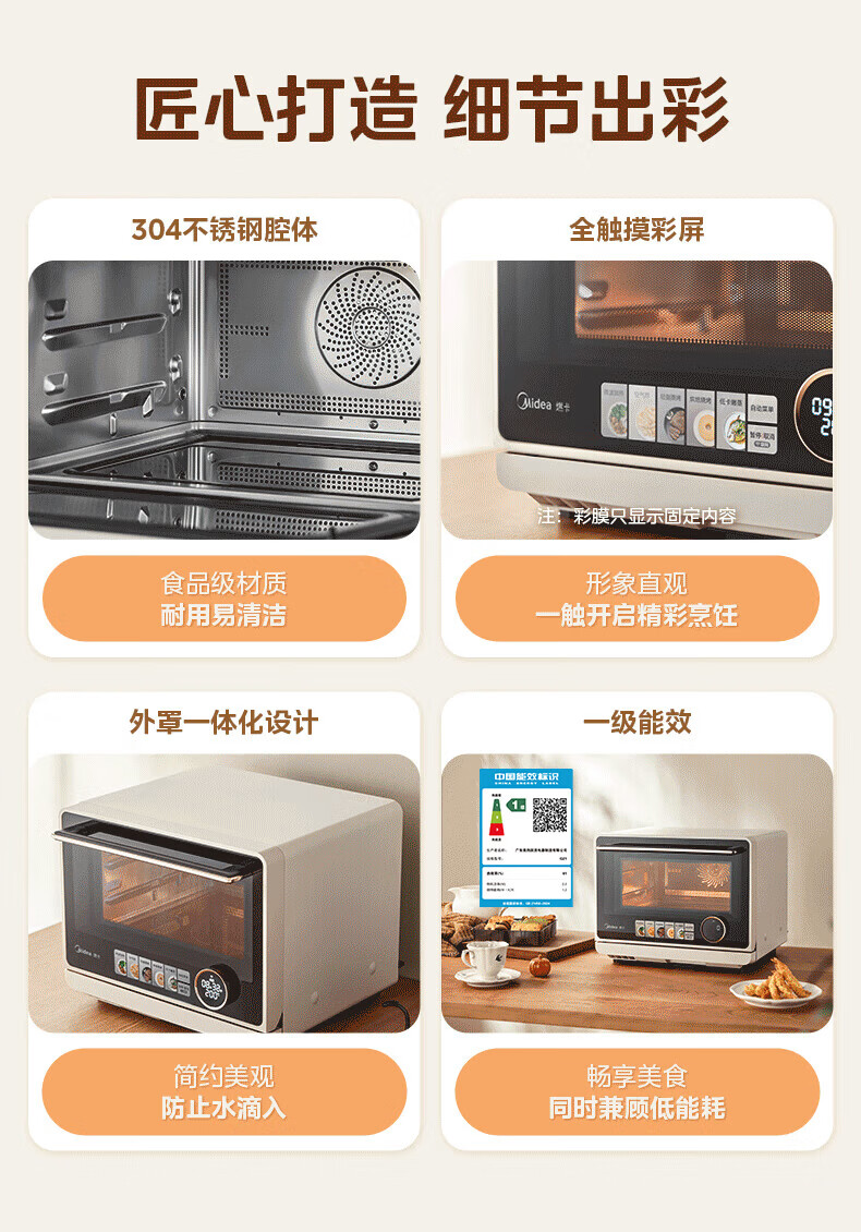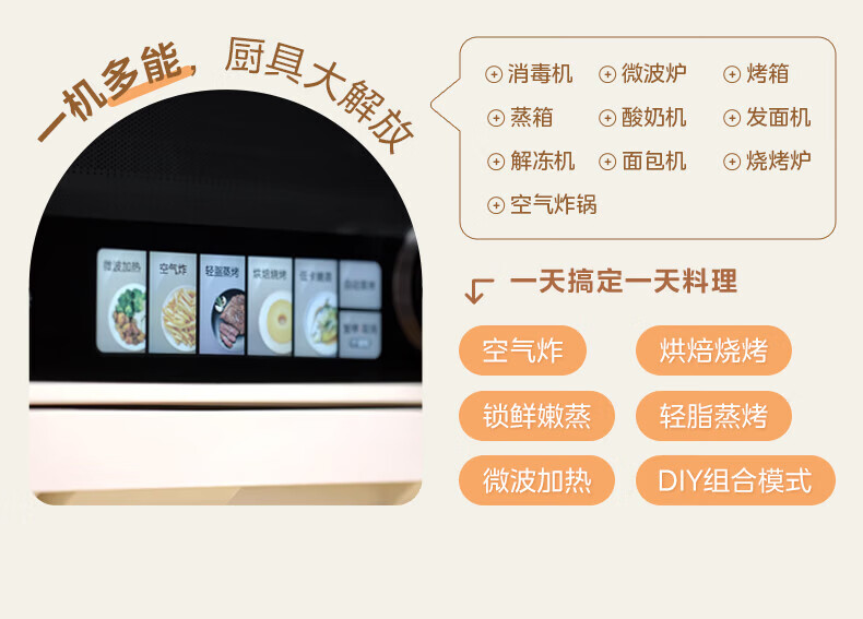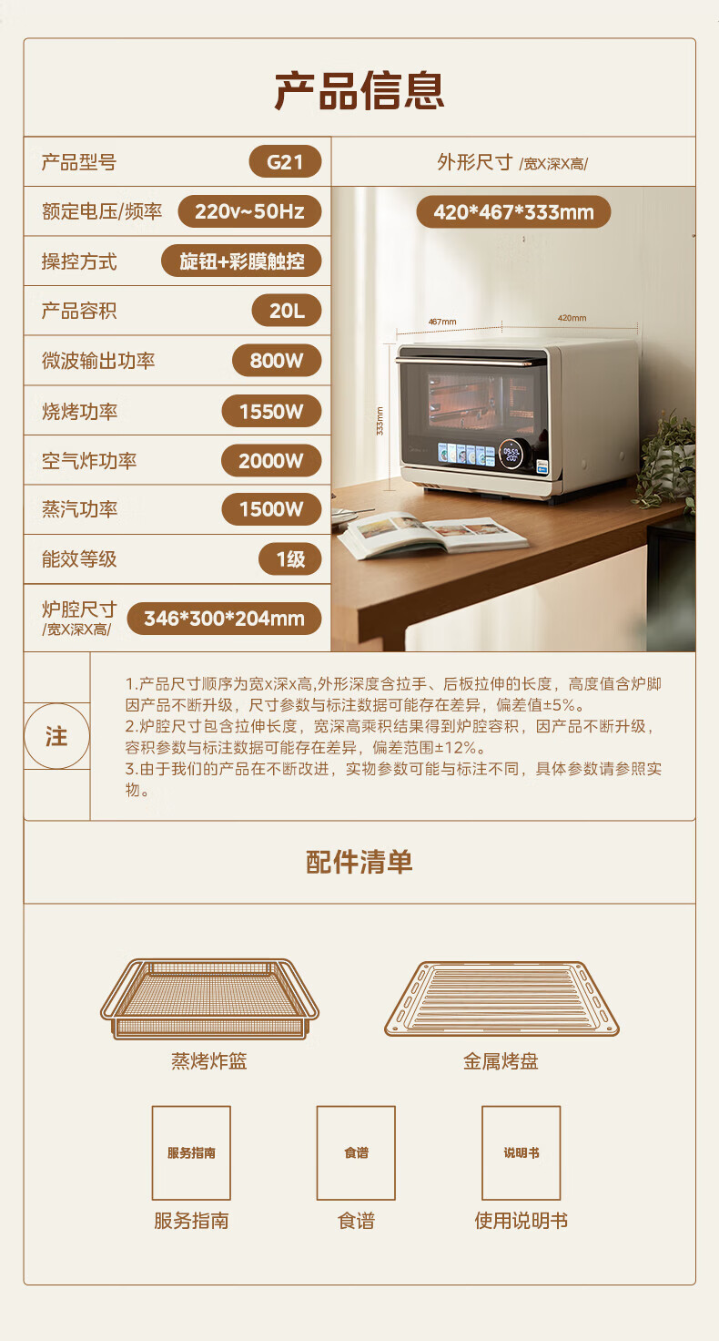 美的(Midea)美的寻味微蒸烤炸一体机 家用 微波炉烤箱一体机微蒸烤炸一体四合一 空气炸锅蒸烤一体 一级能效 G21