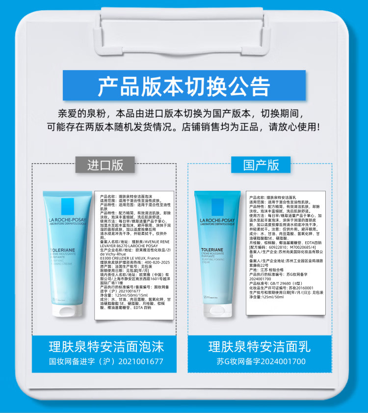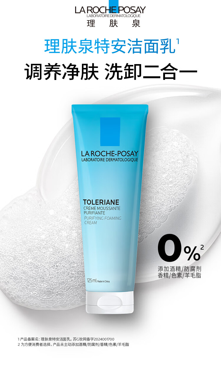 理肤泉特安洗面奶125ml*2支装洁面洗脸保湿卸妆温和清洁护肤品新年礼物