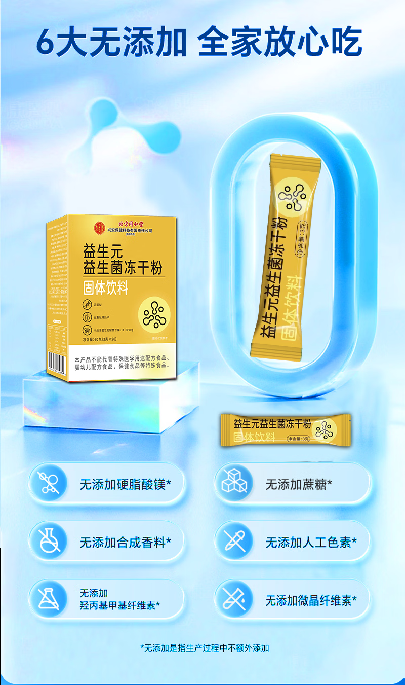 安仕邦北同益生菌粉肠道益生菌成人儿童肠胃肠道便秘拉稀可搭配调理脾 3盒/60袋【同仁堂肠胃益生菌】 20袋*3盒
