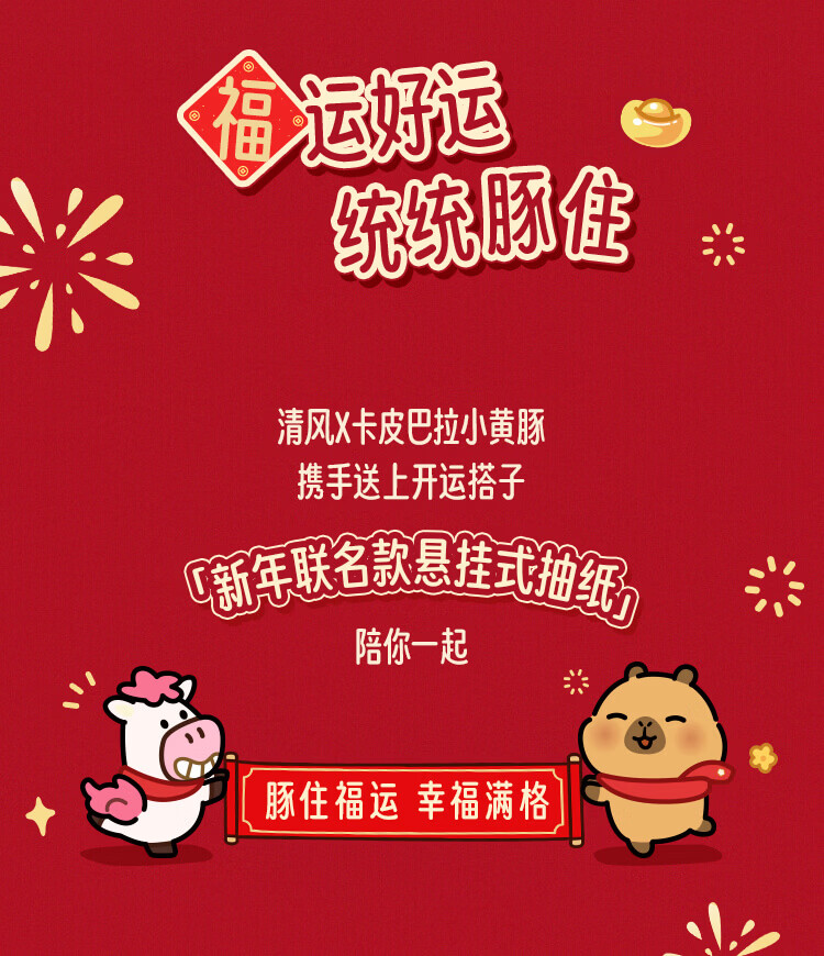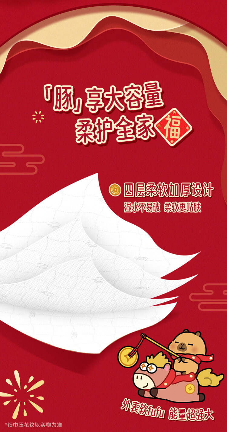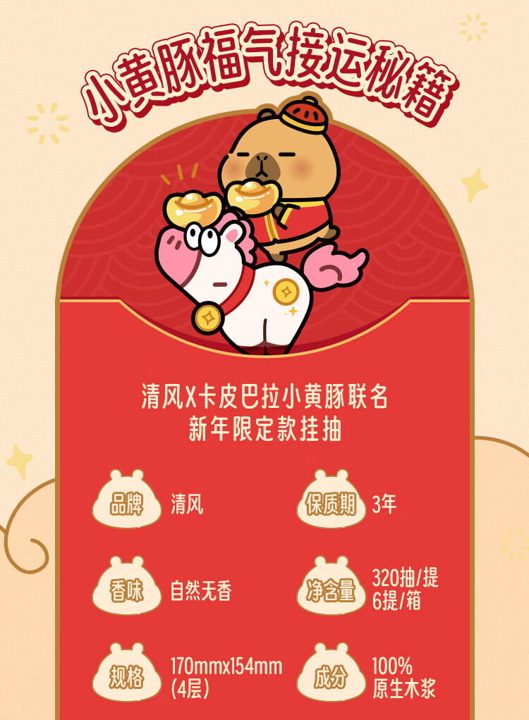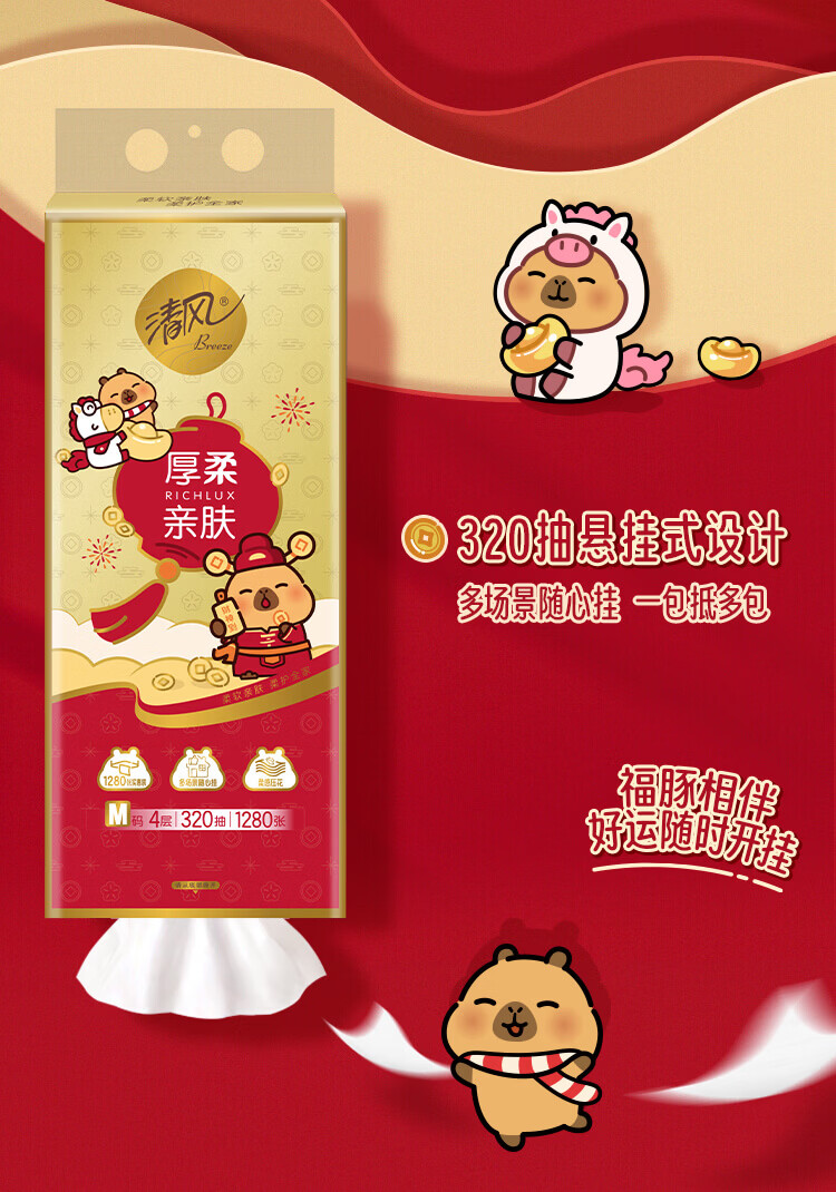 清风(APP)厚柔挂抽 悬挂式抽纸4层320抽6提 新年款 擦手纸餐巾纸纸抽
