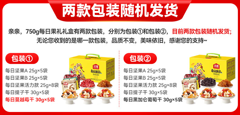 沃隆 每日坚果礼盒装 休闲零食大礼包混合干果仁食品小包装 750g每日果礼黄盒装*2