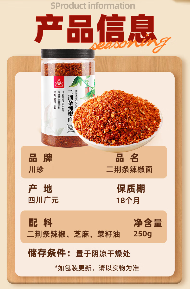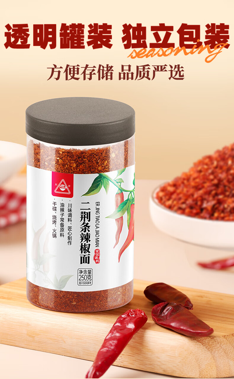 川珍二荆条辣椒面250g罐装四川微辣粗辣椒粉海椒面油泼火锅调料