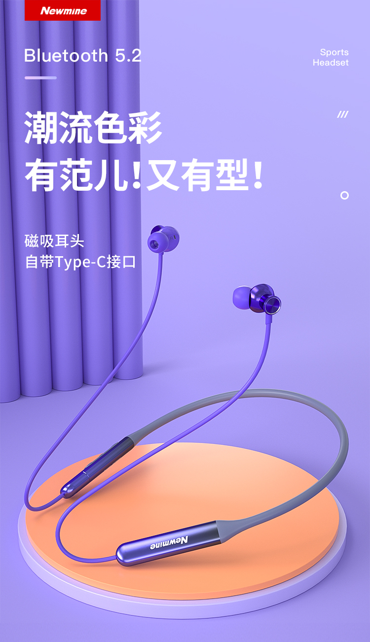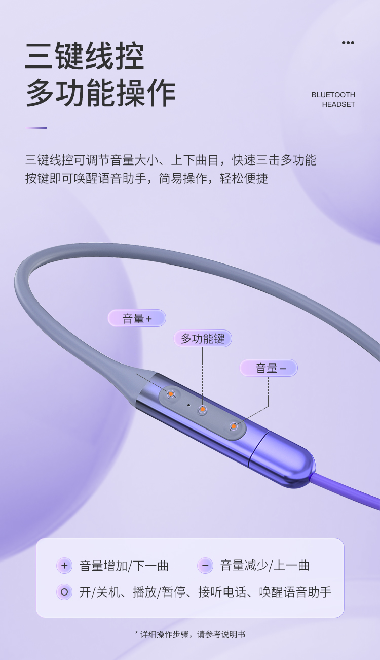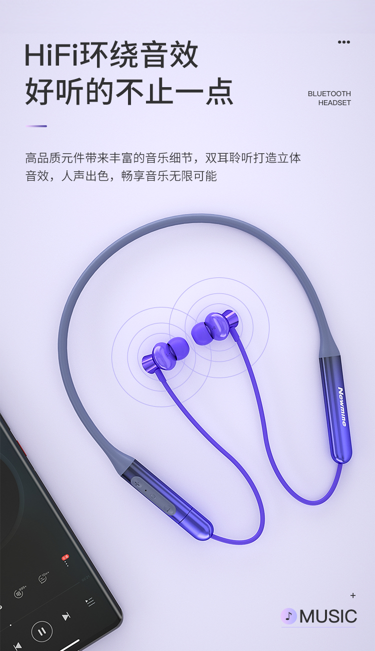 纽曼(Newmine)无线蓝牙耳机挂脖入耳式颈挂跑步运动型超长续航防汗高音质低延时大容量适用于华为苹果手机通用 30H续航丨来电震动丨通话降噪丨C65钛空蓝 官方标配