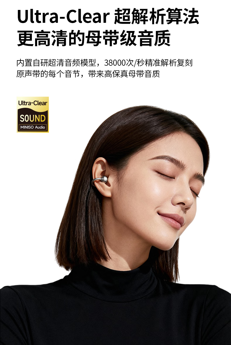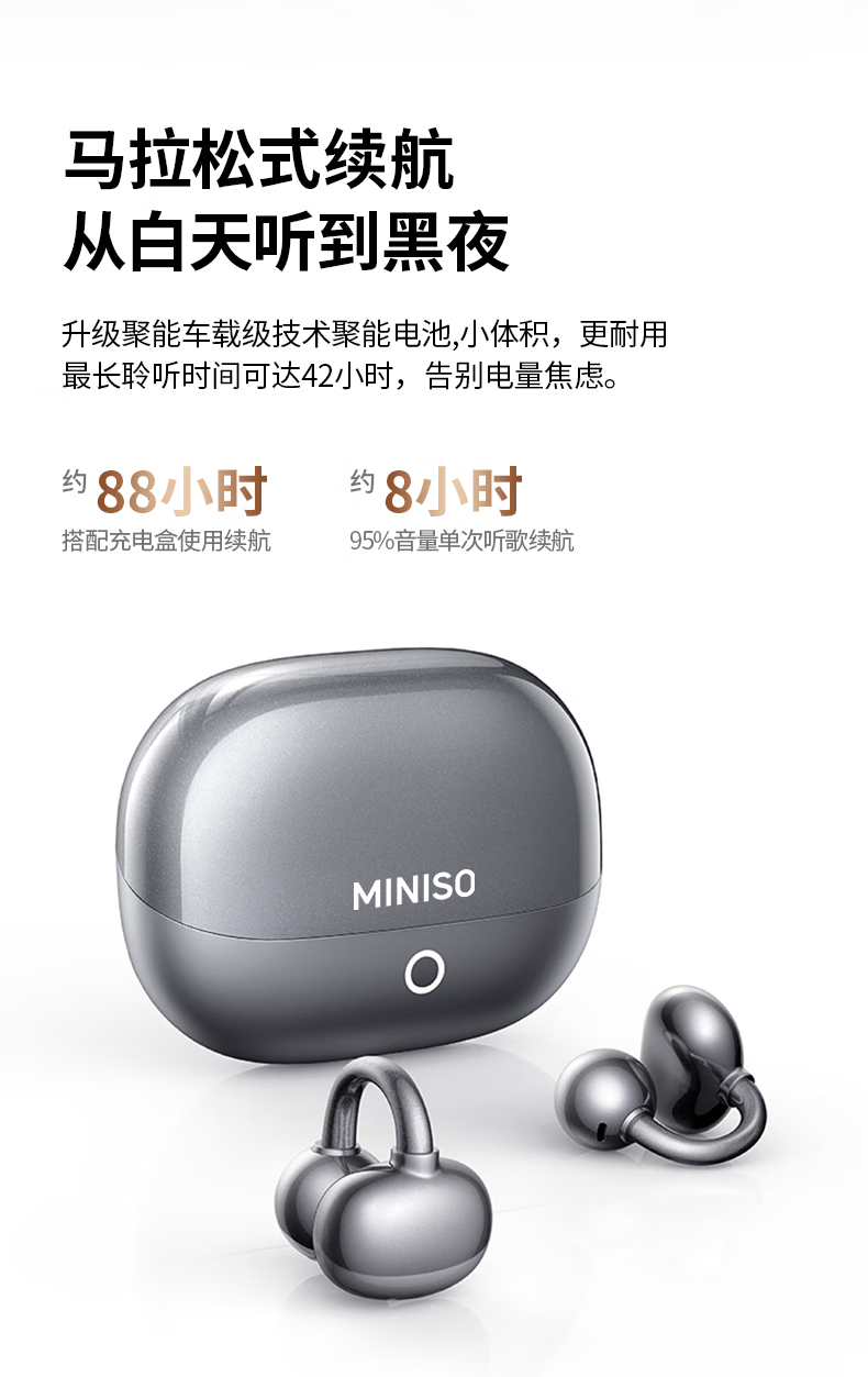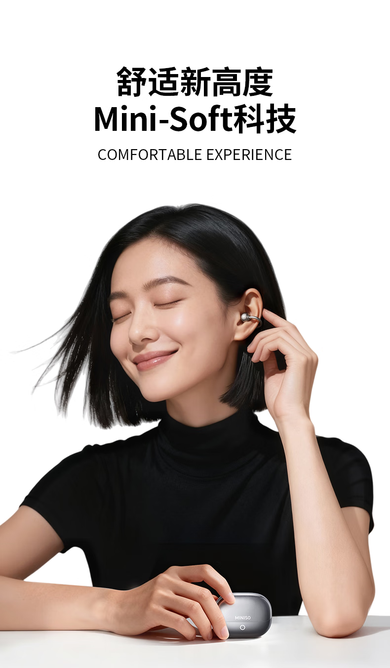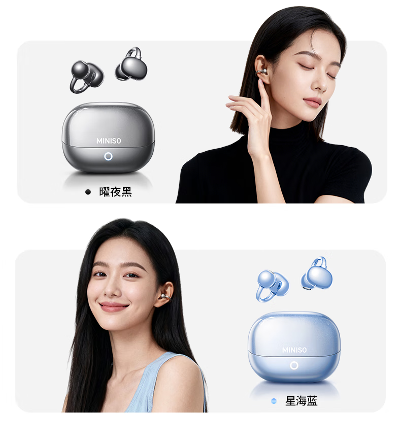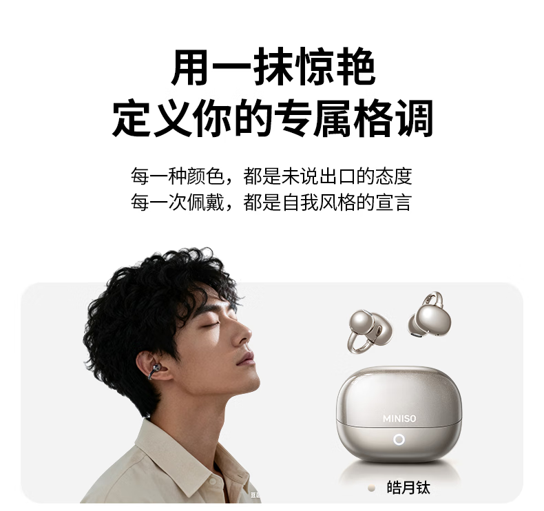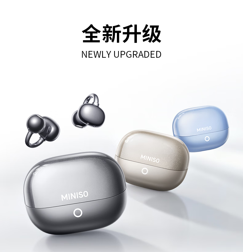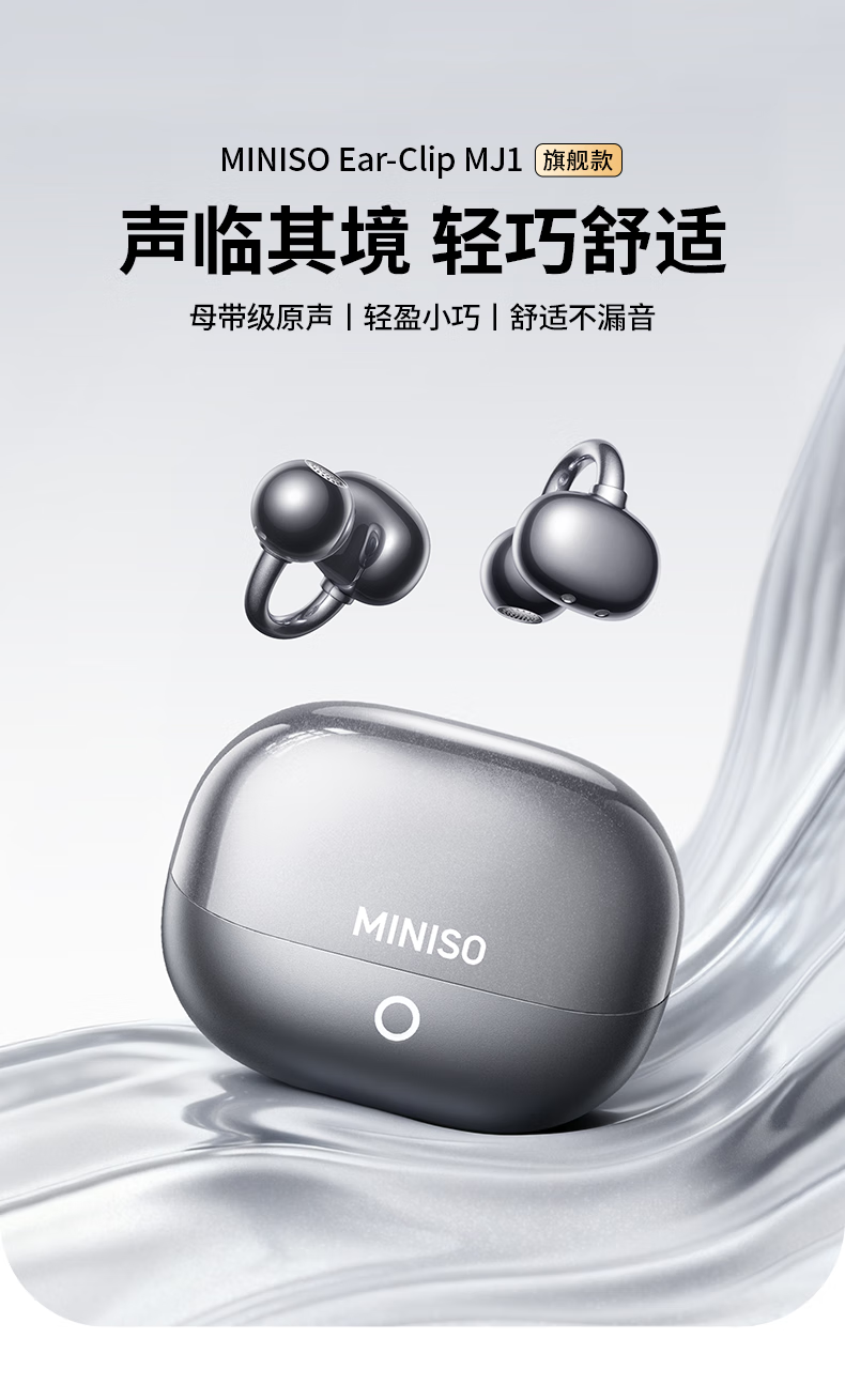 名创优品(MINISO)【金榜榜单TOP1丨2026年最新尊享款】名创优品蓝牙耳机耳夹式耳机无线耳机运动耳机蓝牙2025最新款 皓月钛【旗舰款丨首创双核全景音】
