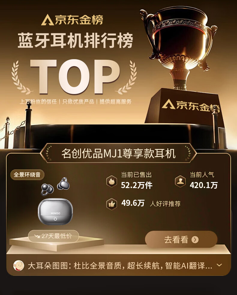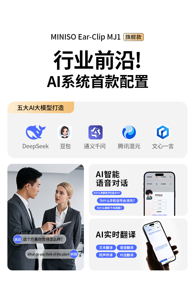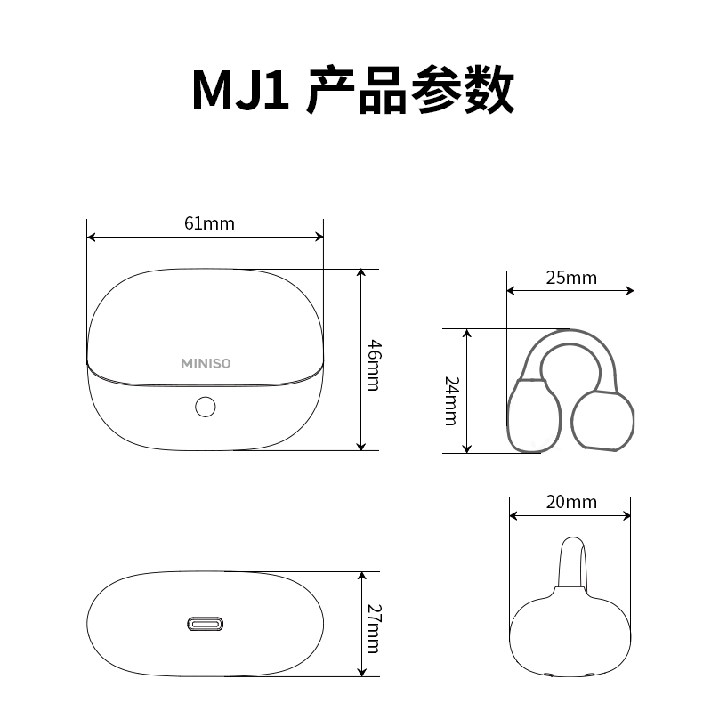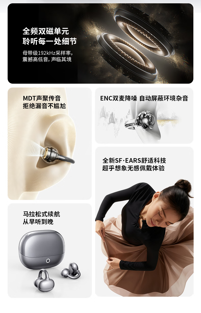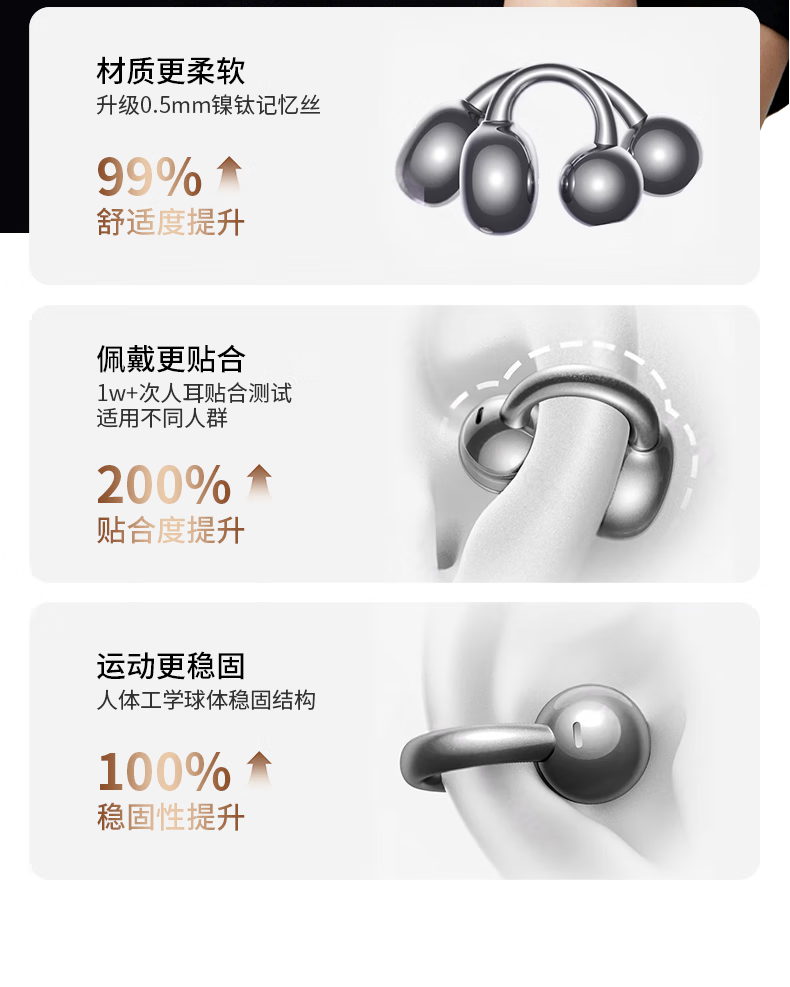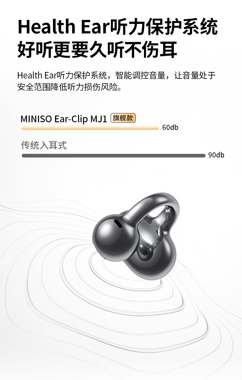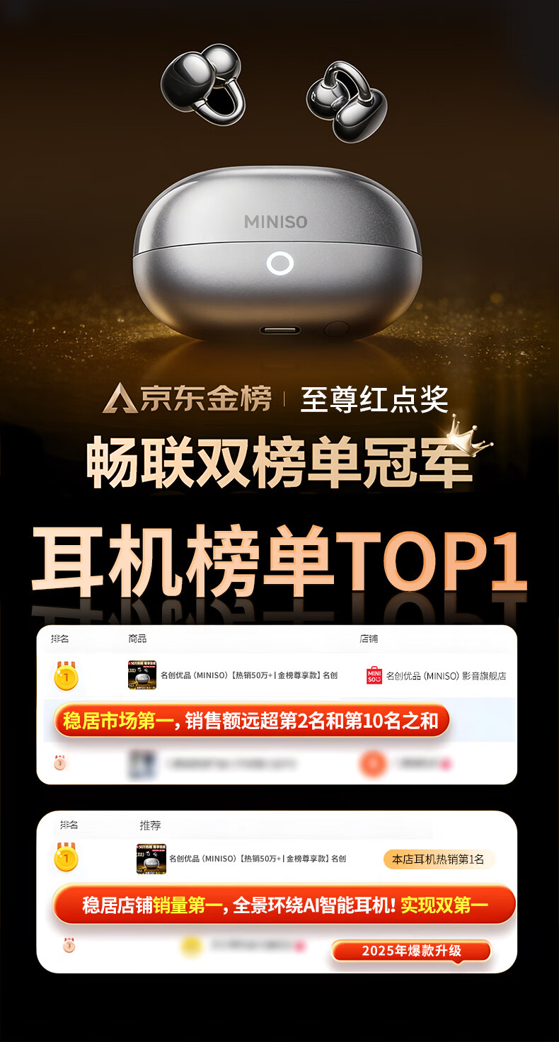 名创优品(MINISO)【金榜榜单TOP1丨2026年最新尊享款】名创优品蓝牙耳机耳夹式耳机无线耳机运动耳机蓝牙2025最新款 皓月钛【旗舰款丨首创双核全景音】