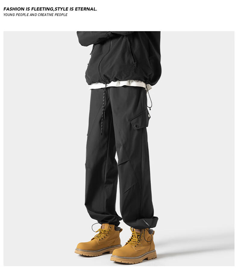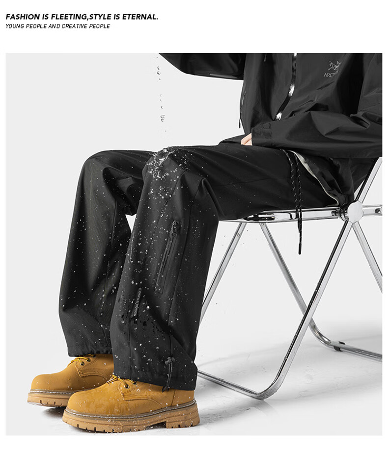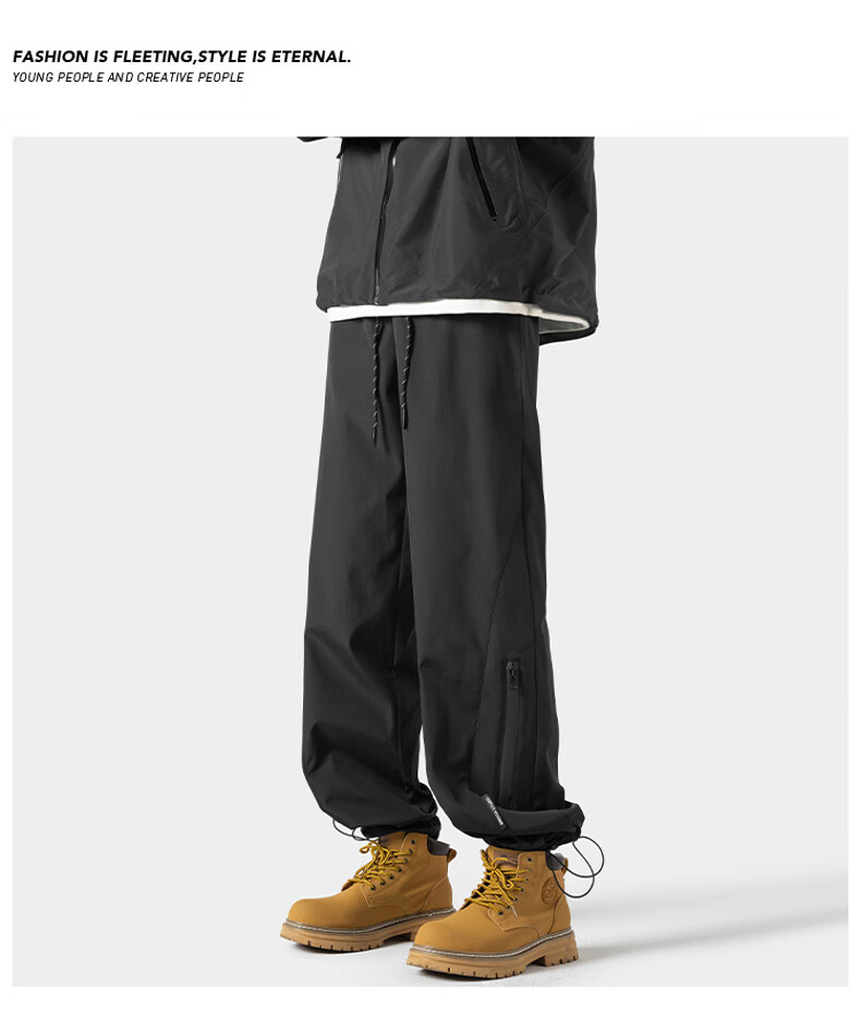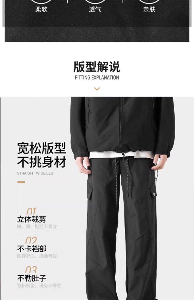 JEEP SPIRIT吉普冲锋裤男春秋季新款三防休闲裤子男户外宽松直筒长裤 HK24907黑色 加绒 XL (建议130-150斤)