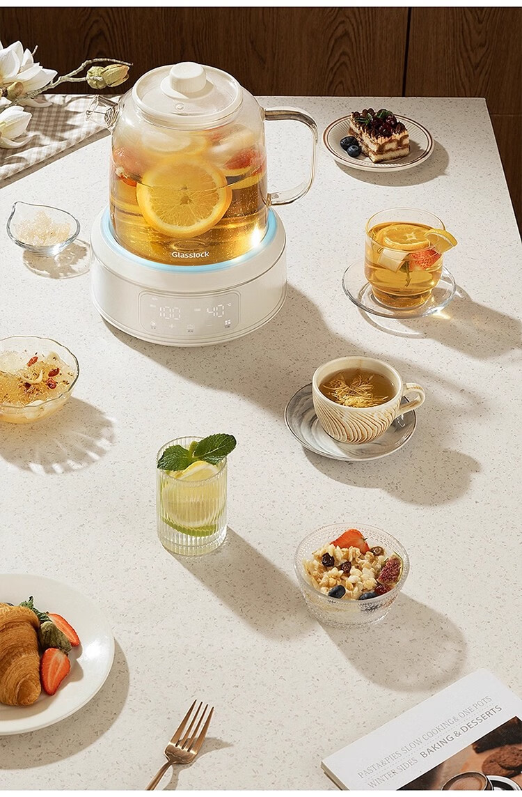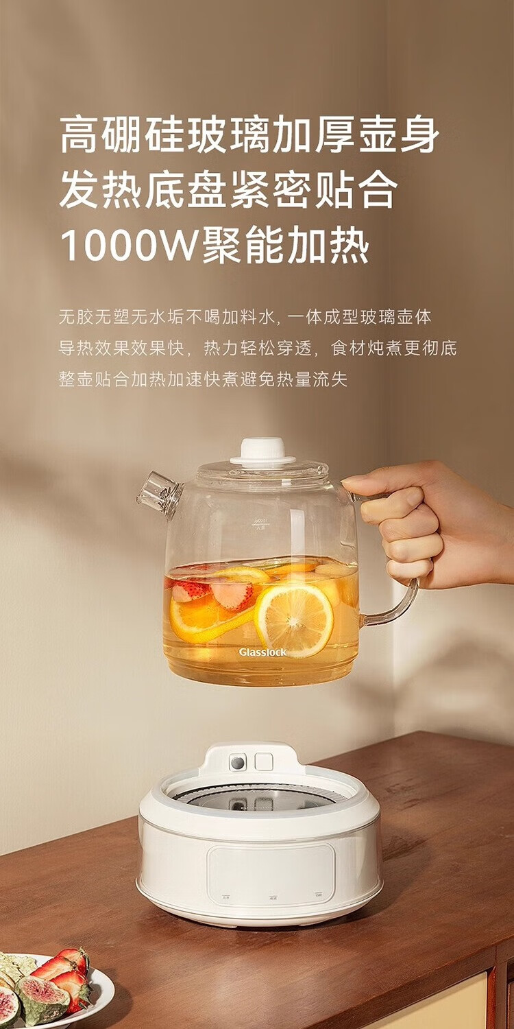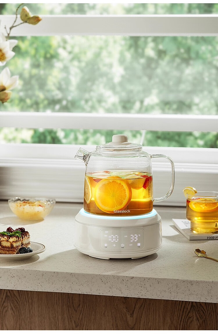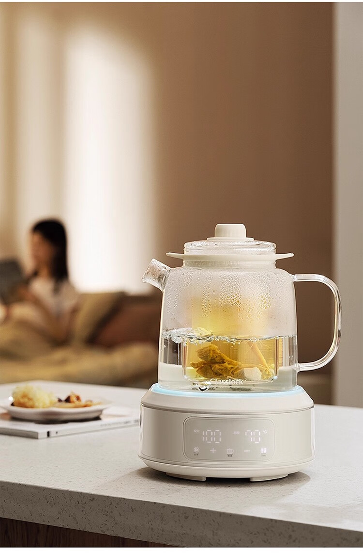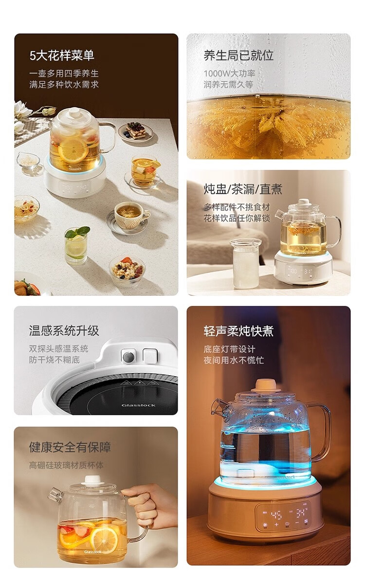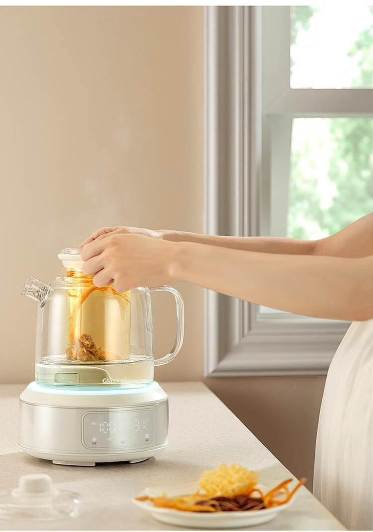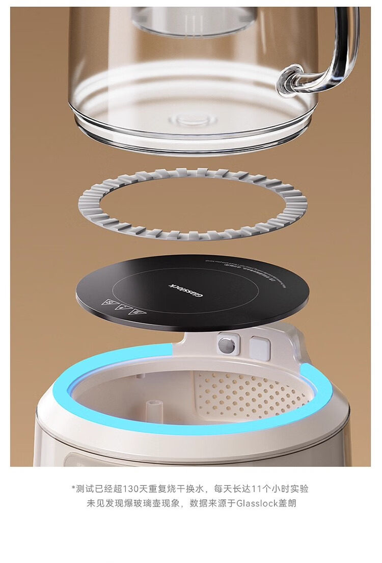 GLASSLOCK养生壶家用多功能煮茶器小型办公室玻璃烧水壶花茶壶 玻璃茶漏款【夜间氛围灯】 1.5L