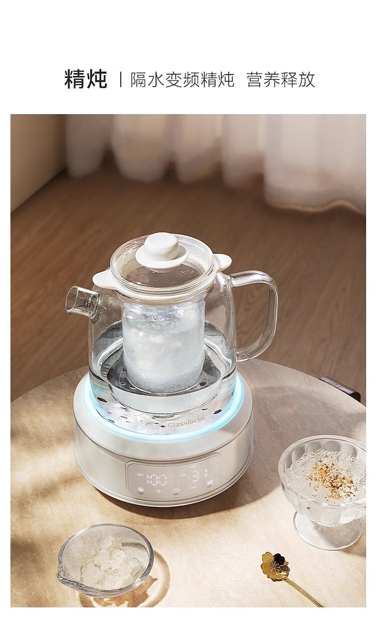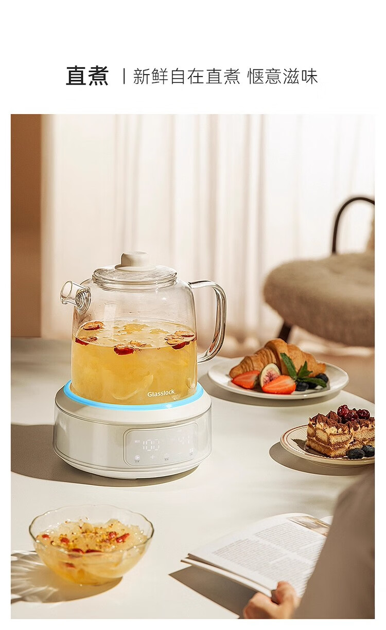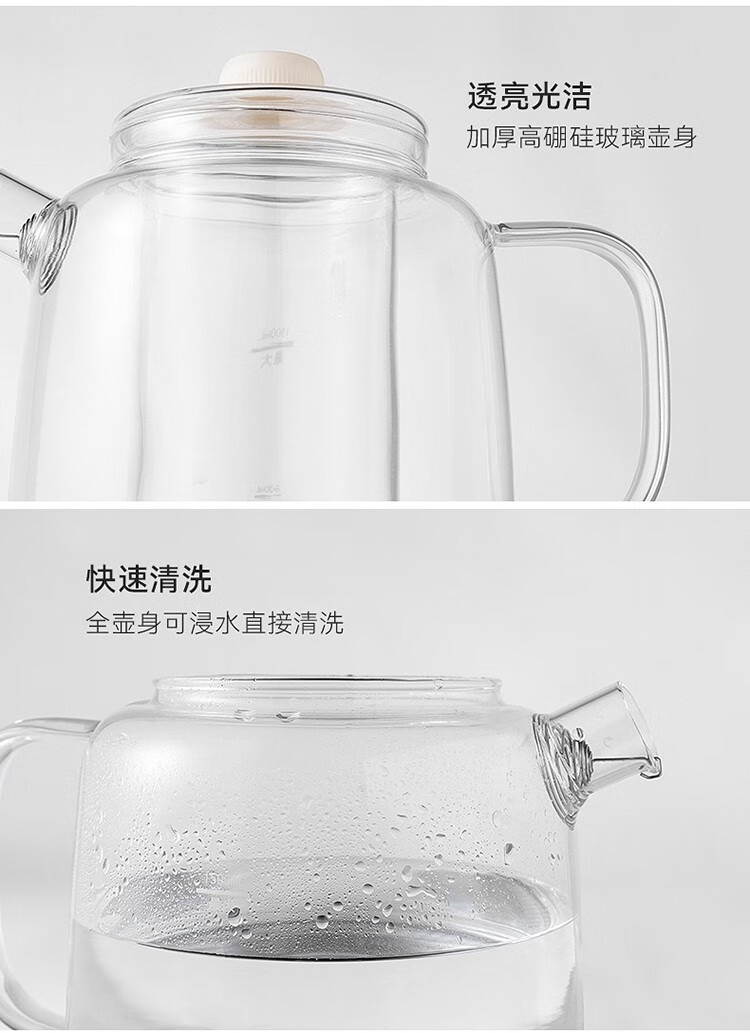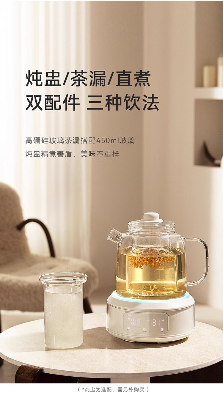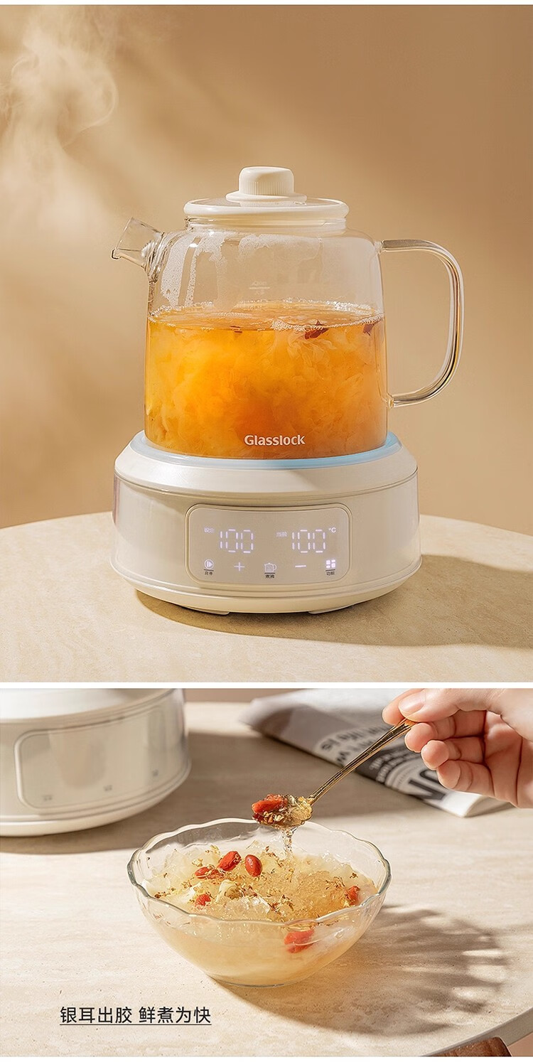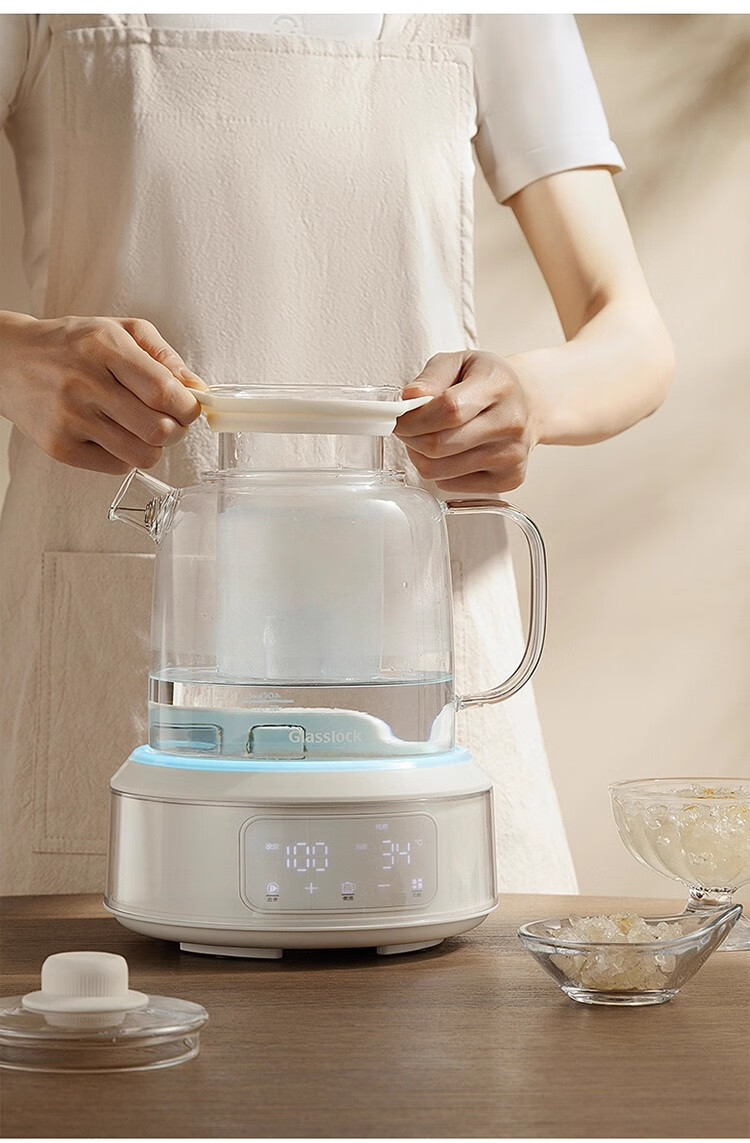 GLASSLOCK养生壶家用多功能煮茶器小型办公室玻璃烧水壶花茶壶 玻璃茶漏款【夜间氛围灯】 1.5L
