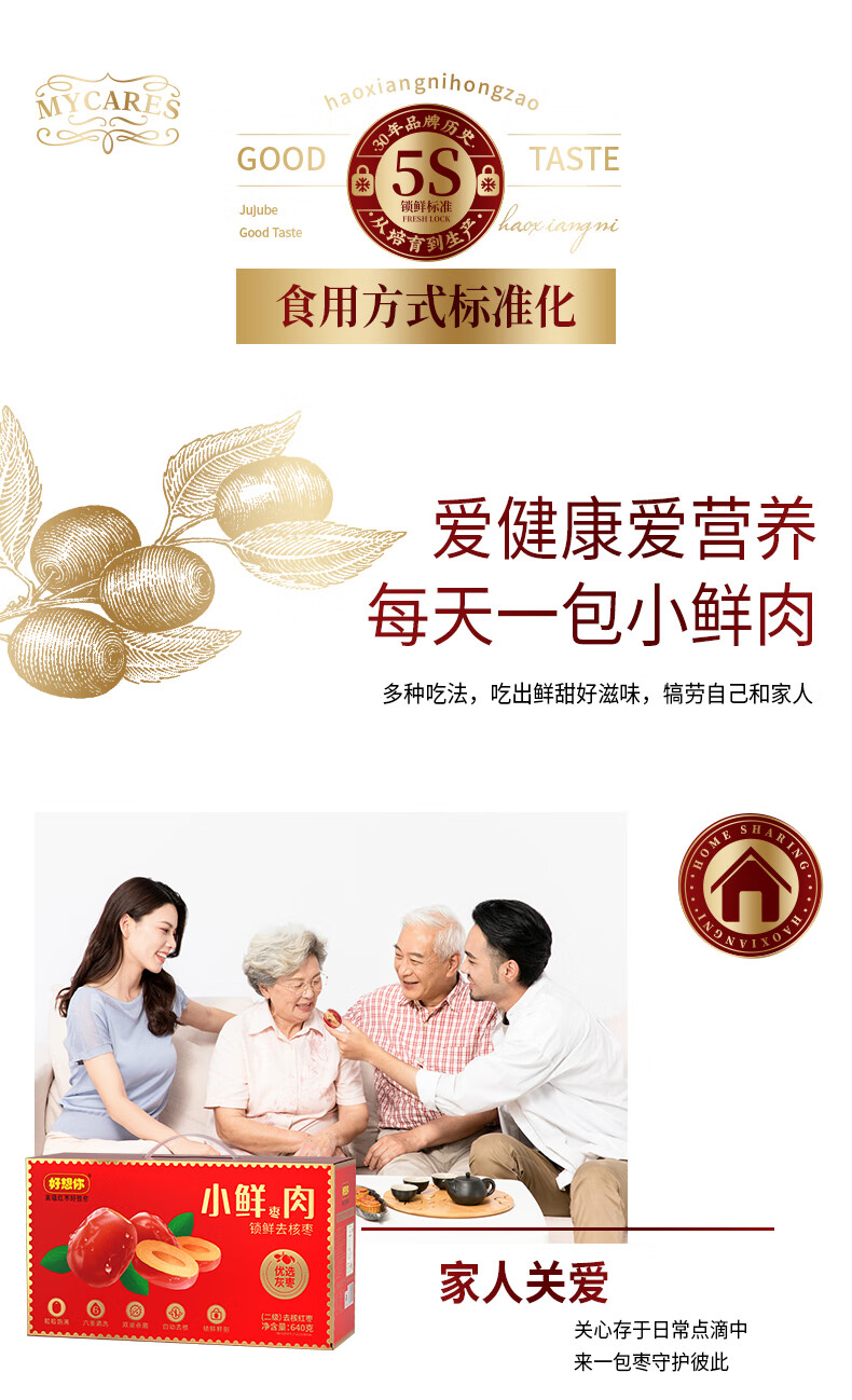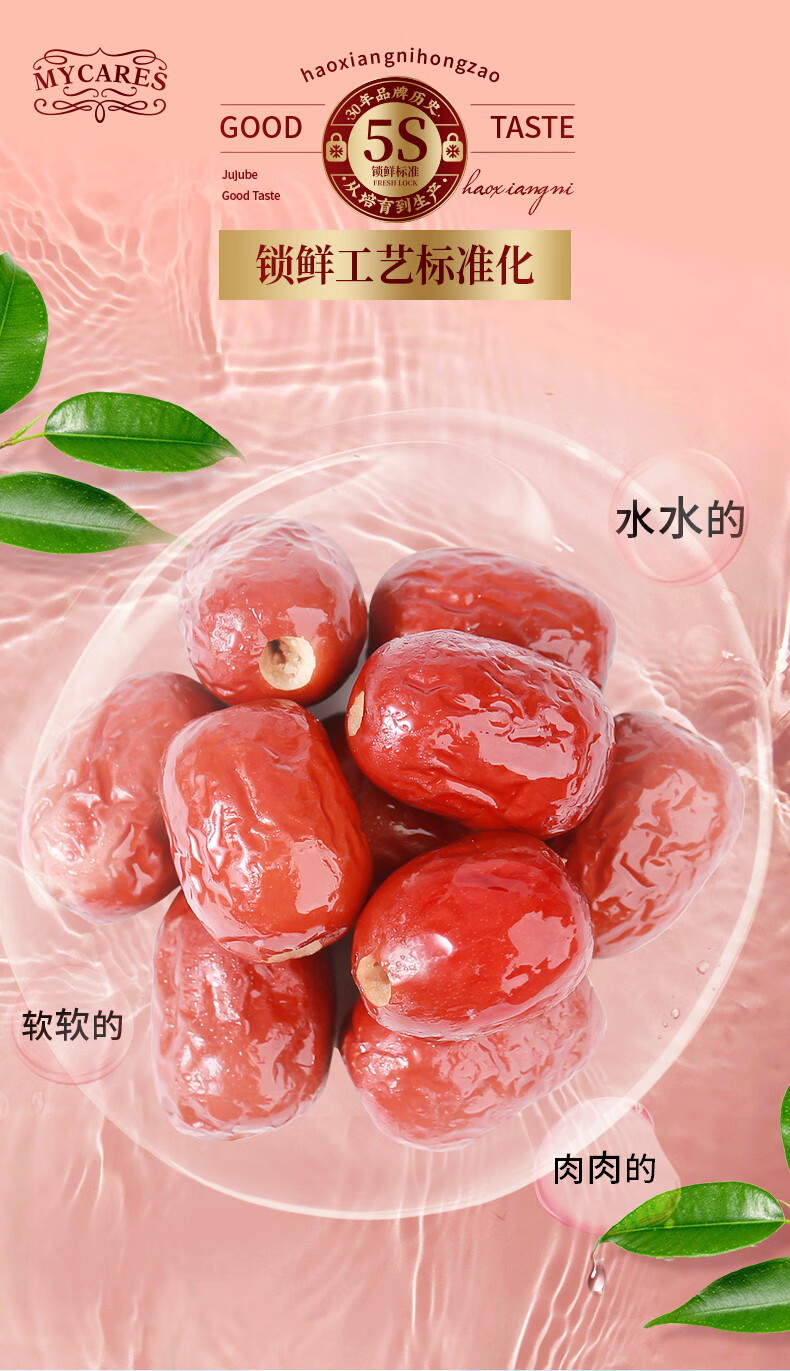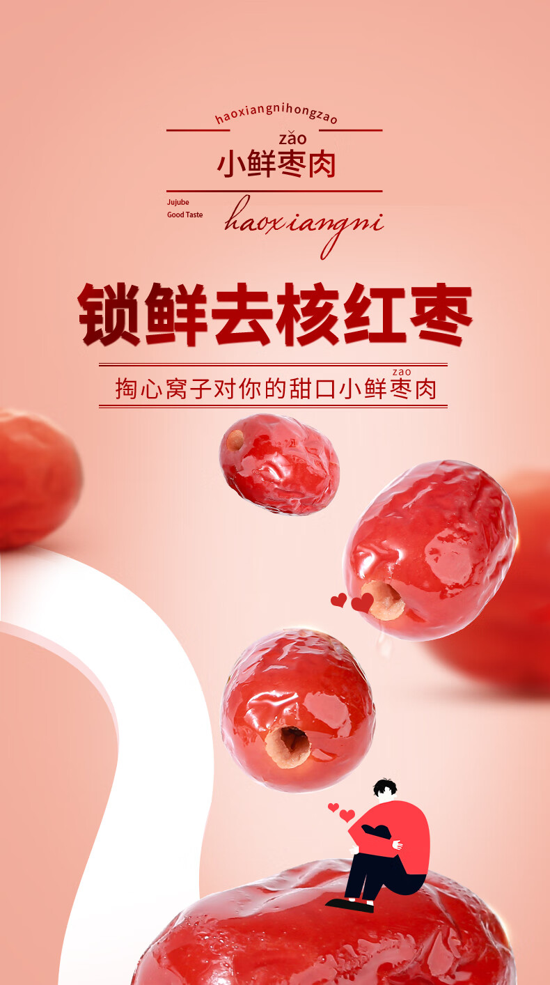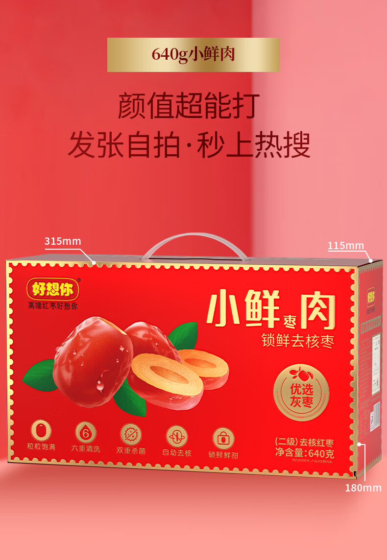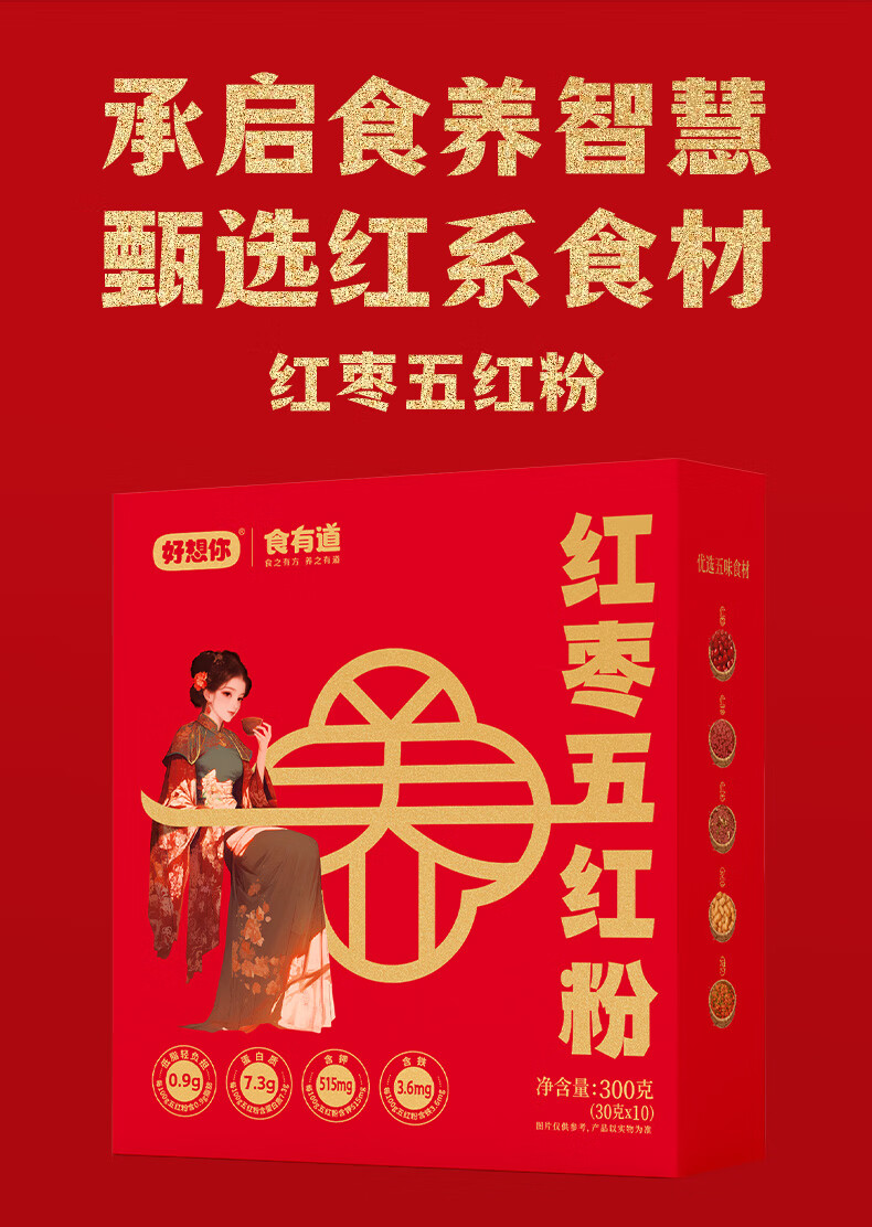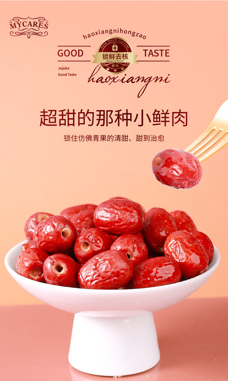 好想你 锁鲜去核红枣/五红粉 新疆灰枣可夹核桃仁免洗即食小包健康零食 红枣五红粉300g*2盒【赠手提袋】