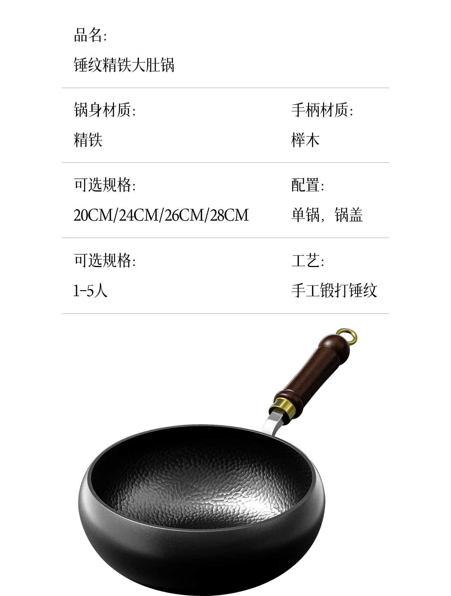 京营美佳大肚锅章丘锤纹铁锅0涂层炒锅炒菜不粘锅电磁炉燃气专用加厚熟铁 【锤纹大肚锅】送木盖 28cm
