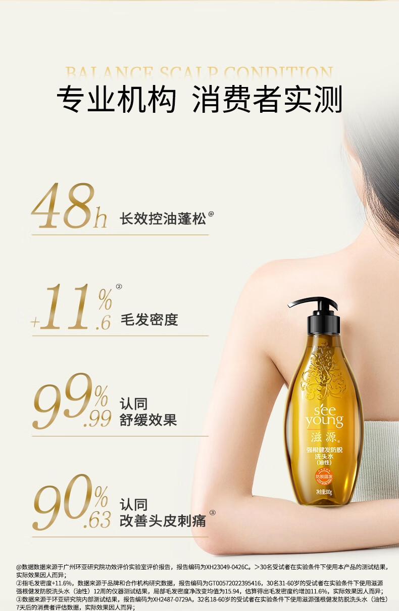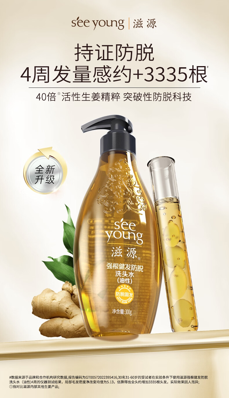 滋源控油去屑洗发水无患子清爽蓬松生姜防脱洗头膏男女士无硅油洗发露 控油蓬松洗发水300g送400g