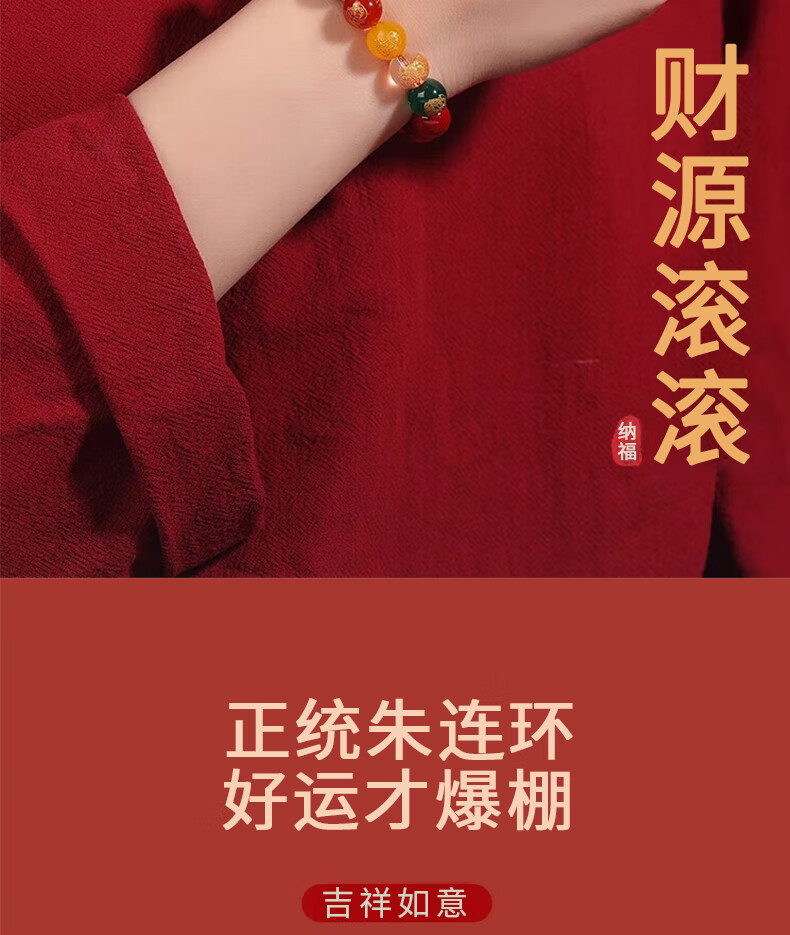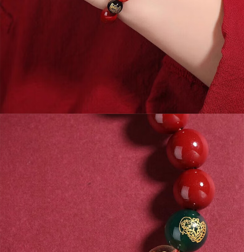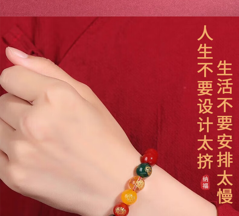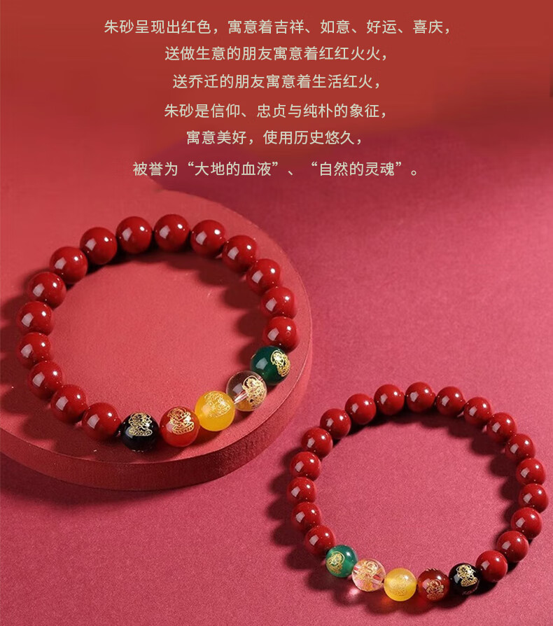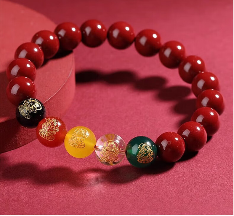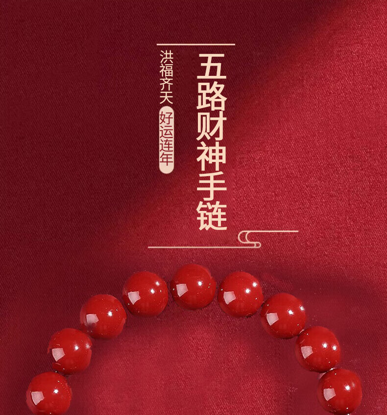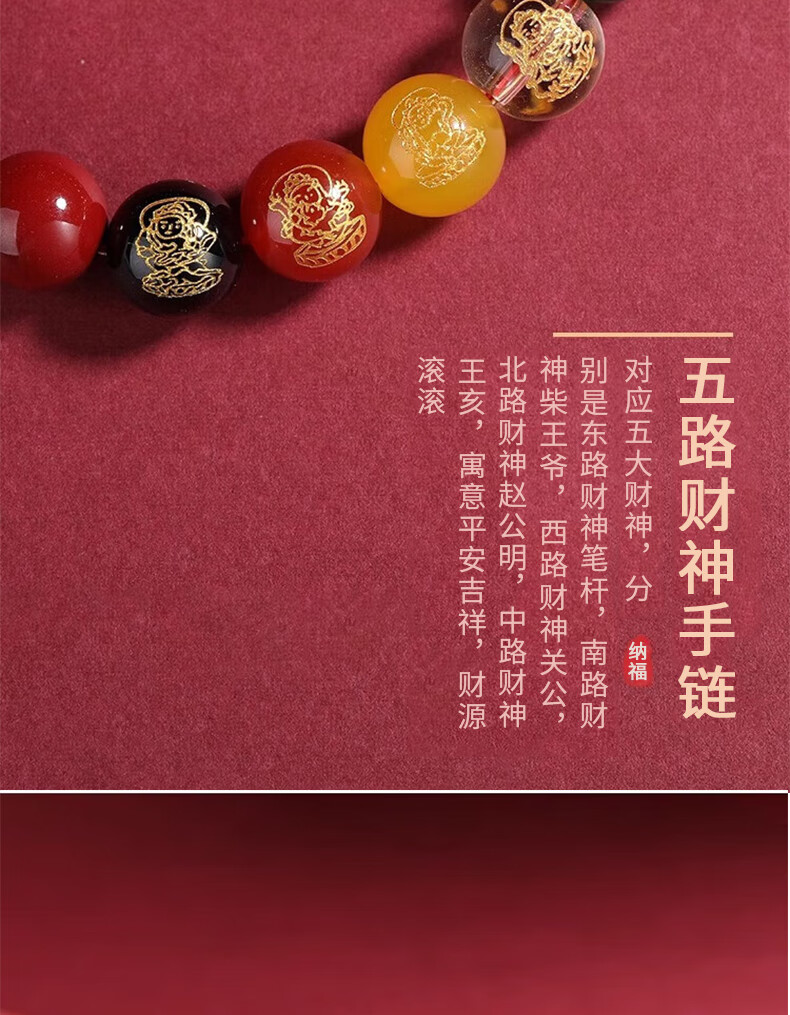 鸿颖五路财神朱砂玛瑙手串男女款本命年朱砂手链送老婆女友 五路财神12mm礼盒装