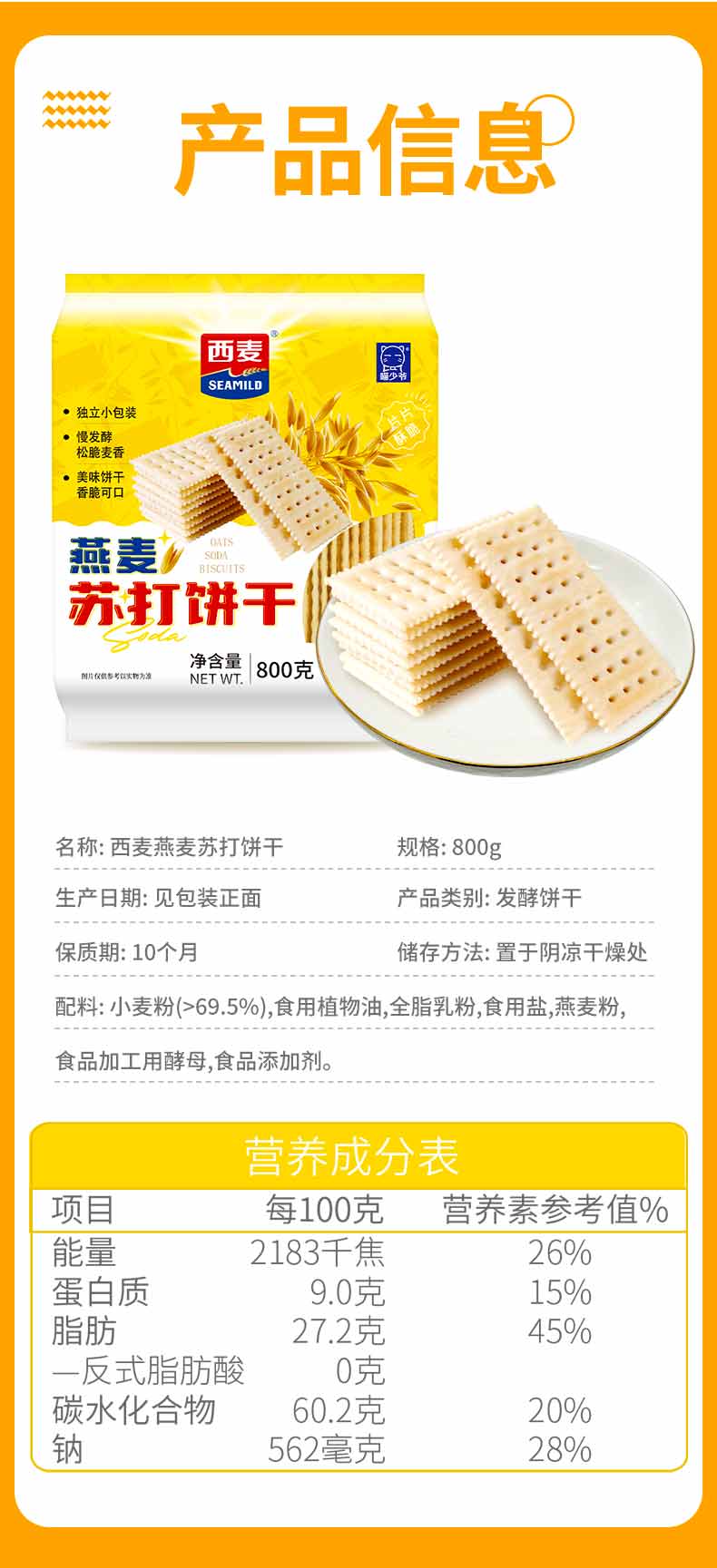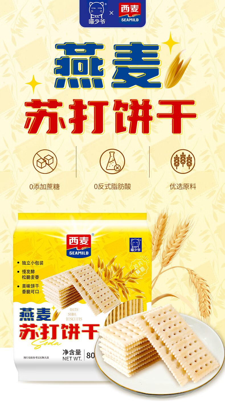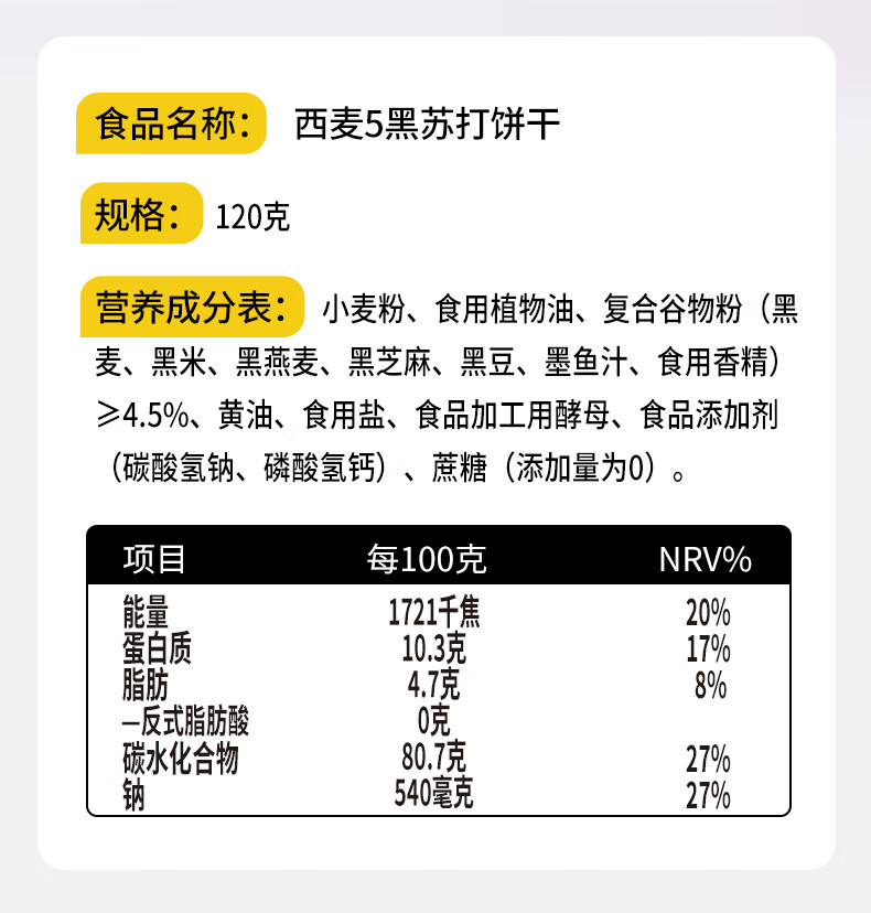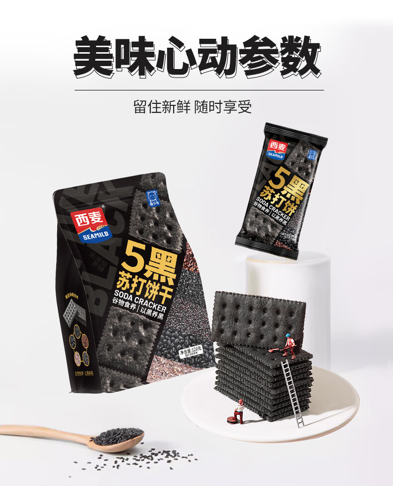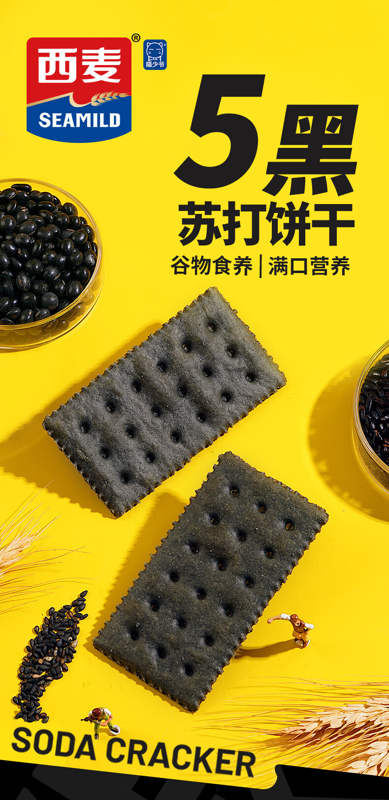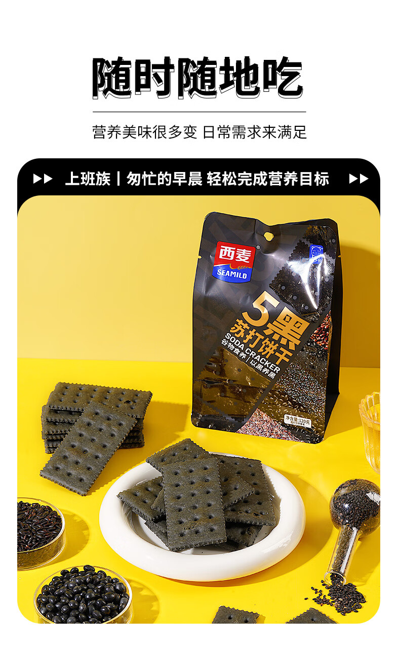 喵少爷西麦五黑苏打饼干燕麦海盐饼干 休闲小零食 五黑苏打饼干1盒500g