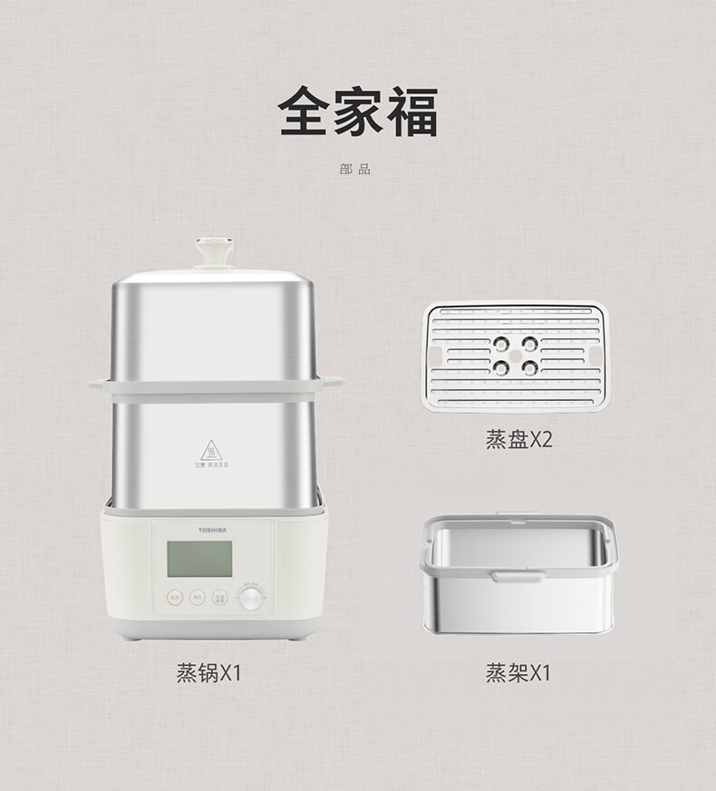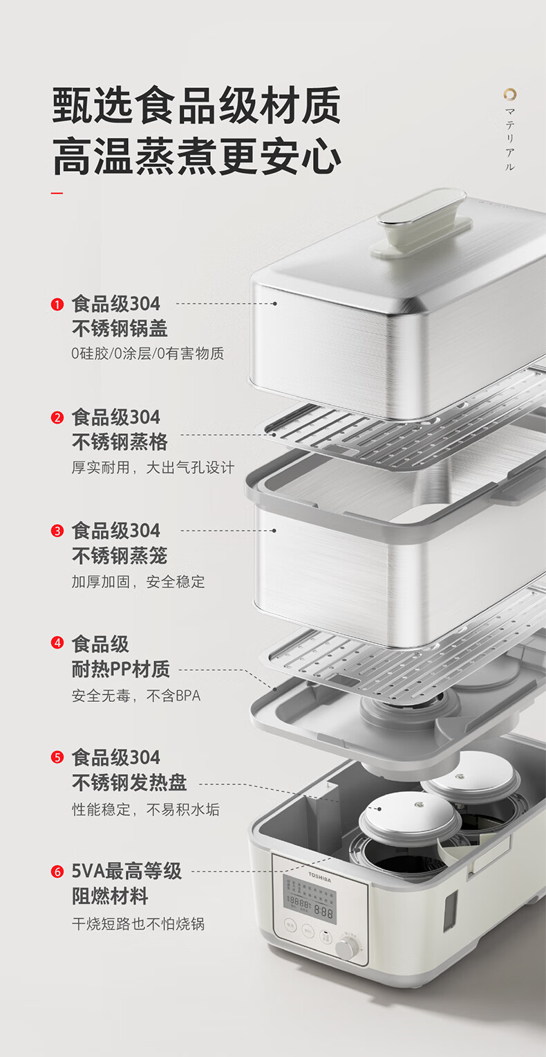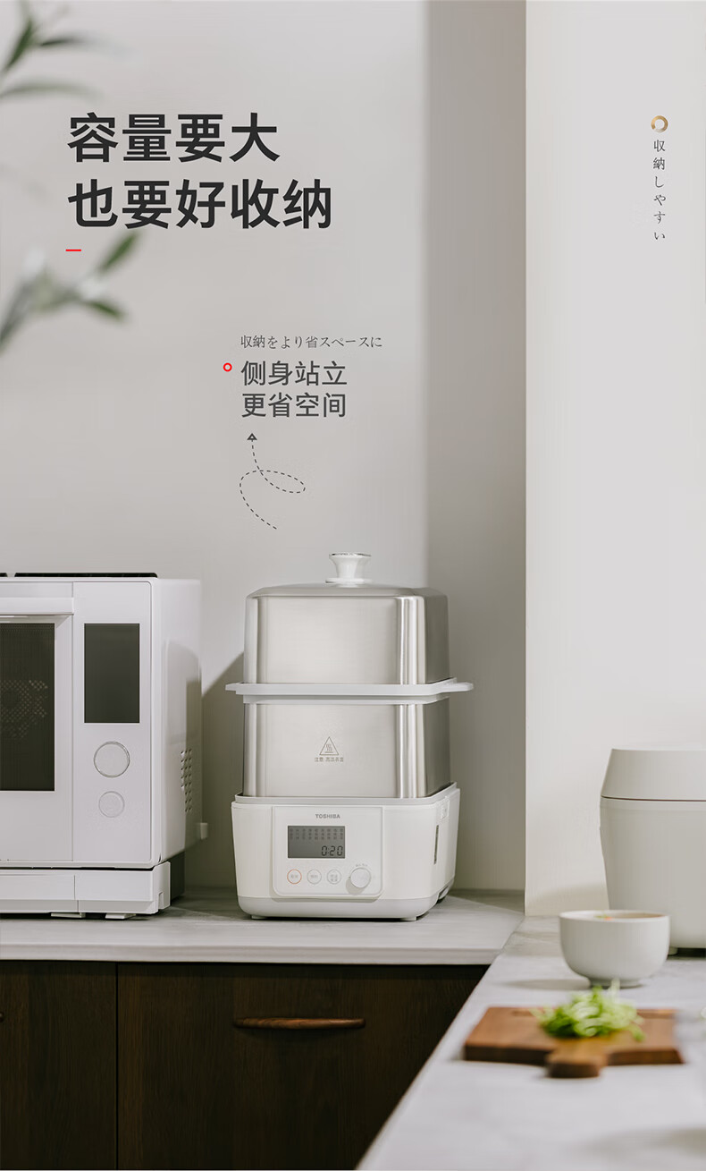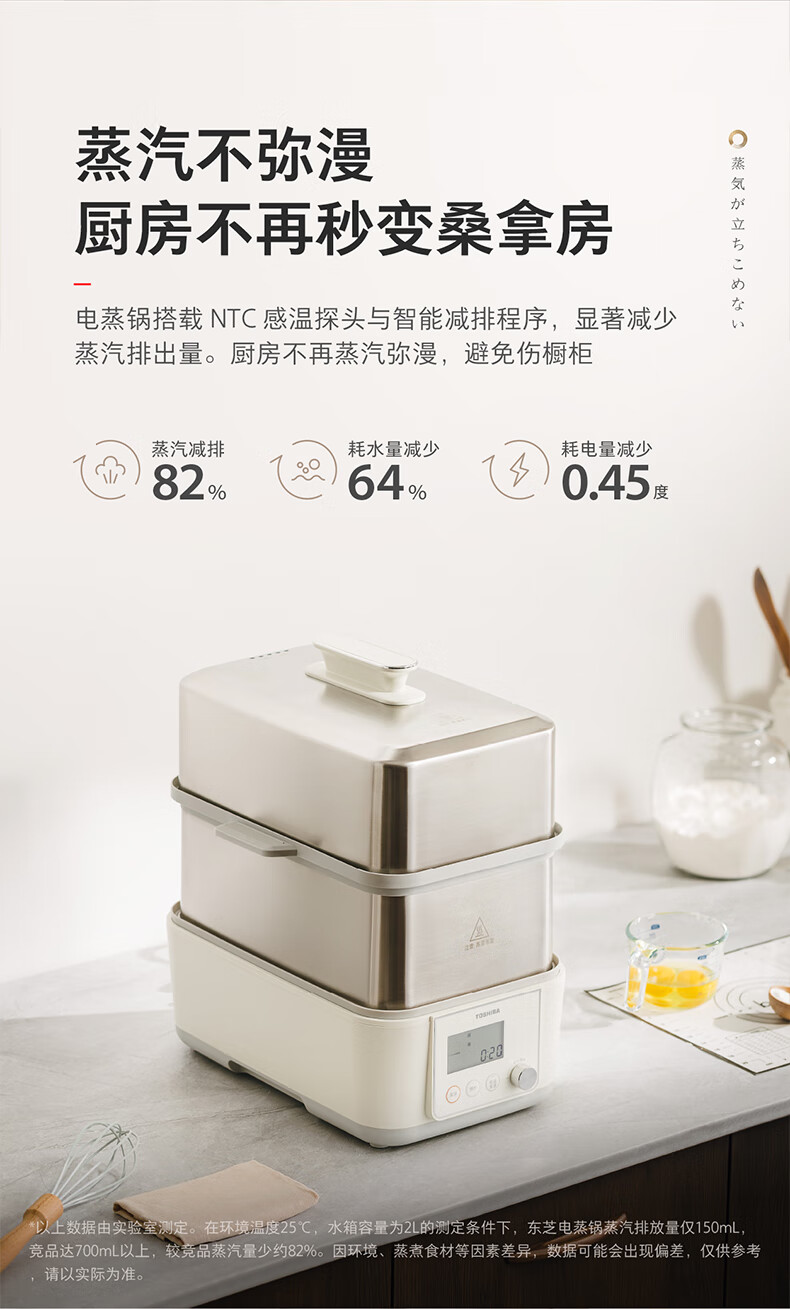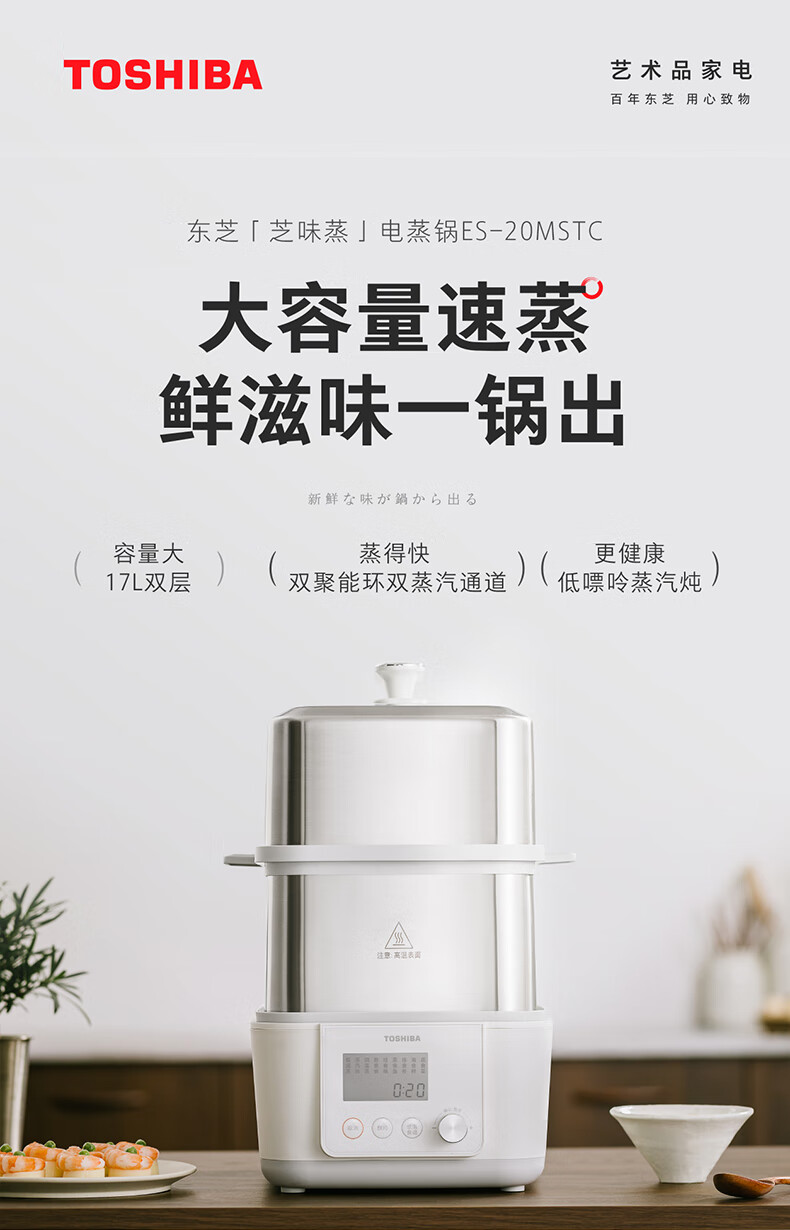 东芝芝味蒸电蒸锅双层大容量电蒸锅不锈钢蒸汽锅定时保温炖蒸煮一体多功能锅 ES-20MSTC 17L 电蒸锅