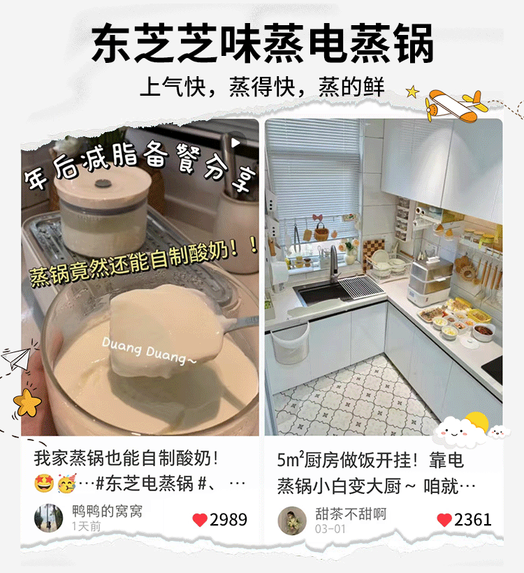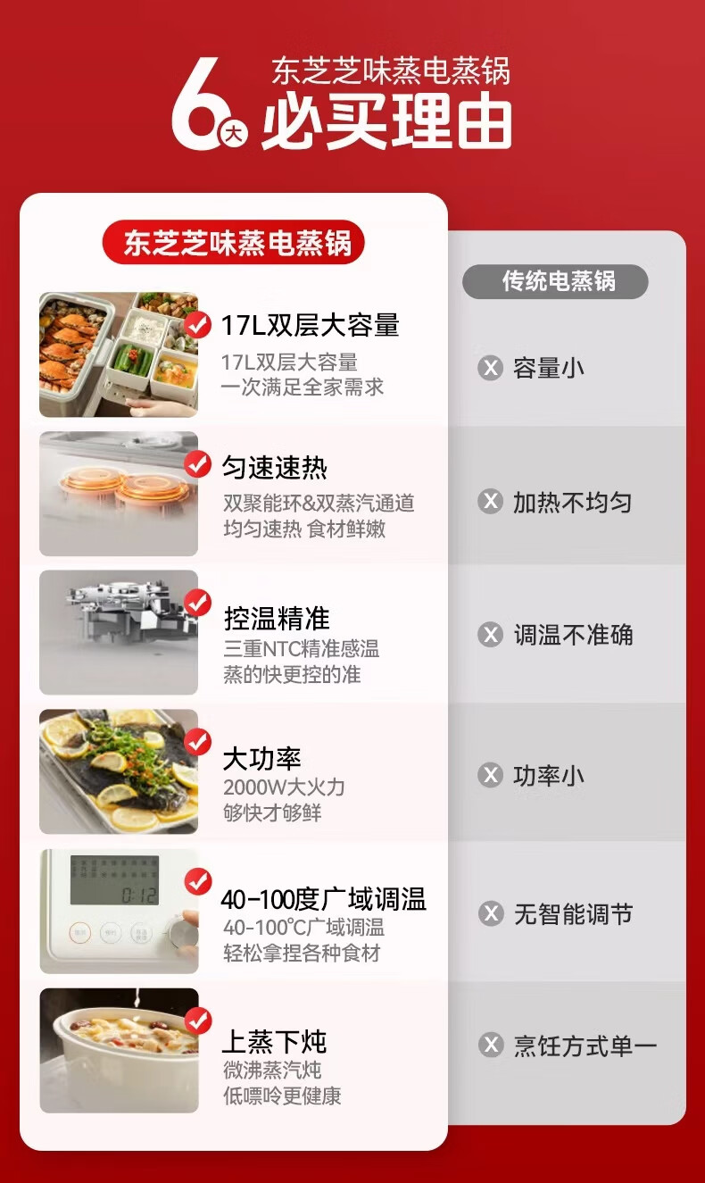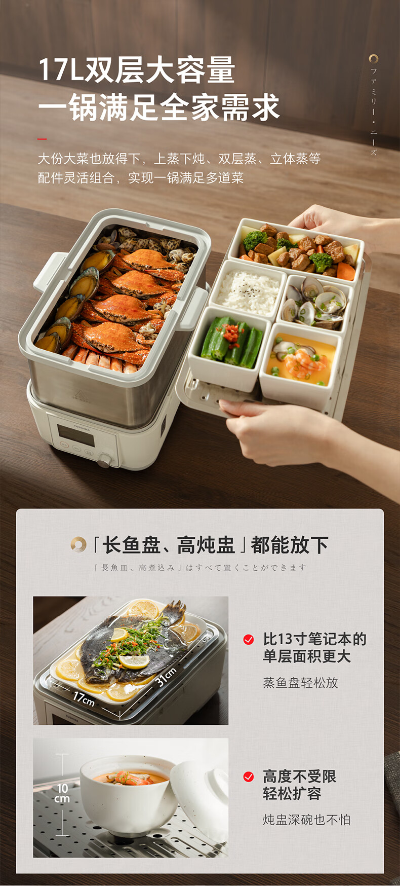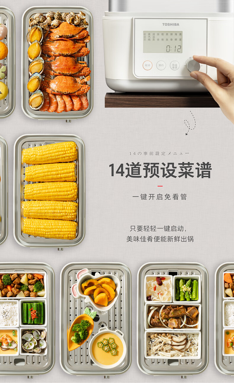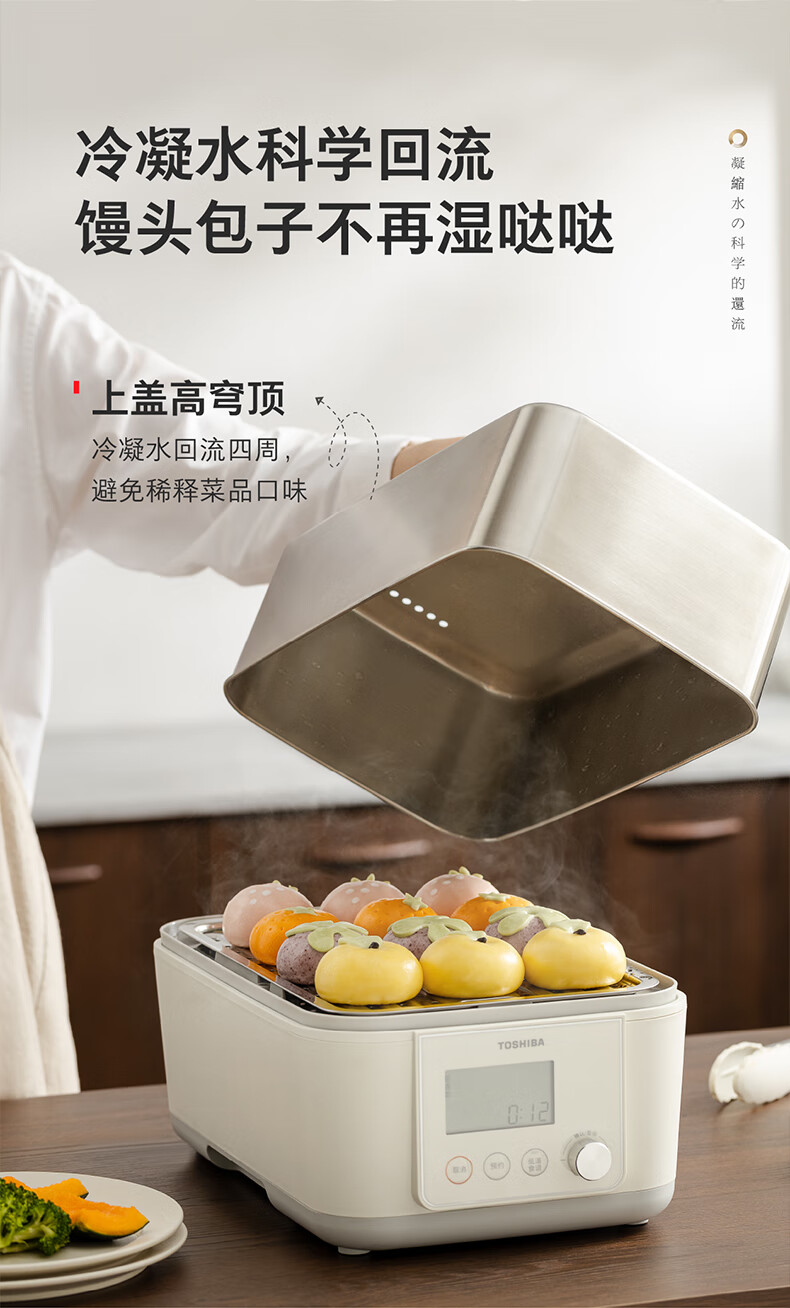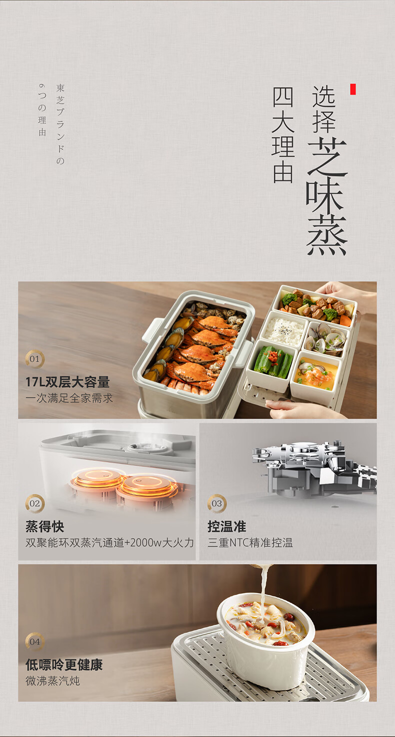 东芝芝味蒸电蒸锅双层大容量电蒸锅不锈钢蒸汽锅定时保温炖蒸煮一体多功能锅 ES-20MSTC 17L 电蒸锅