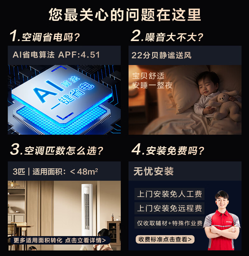 华凌空调超省电Pro3匹柜机 一级能效双排铜管变频冷暖立式客厅柜机空调 国家补贴 KFR-72LW/N8HA1Ⅲ