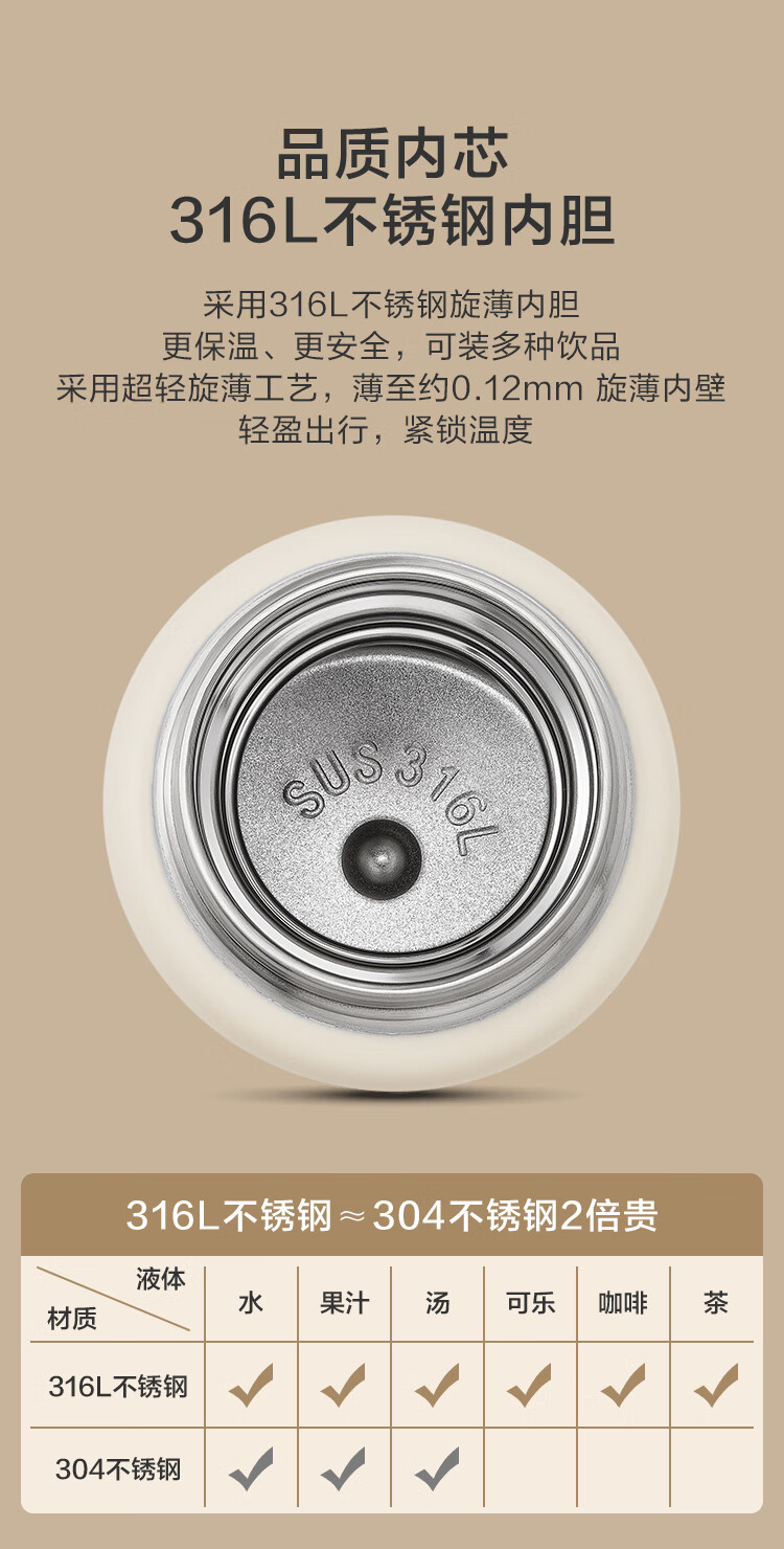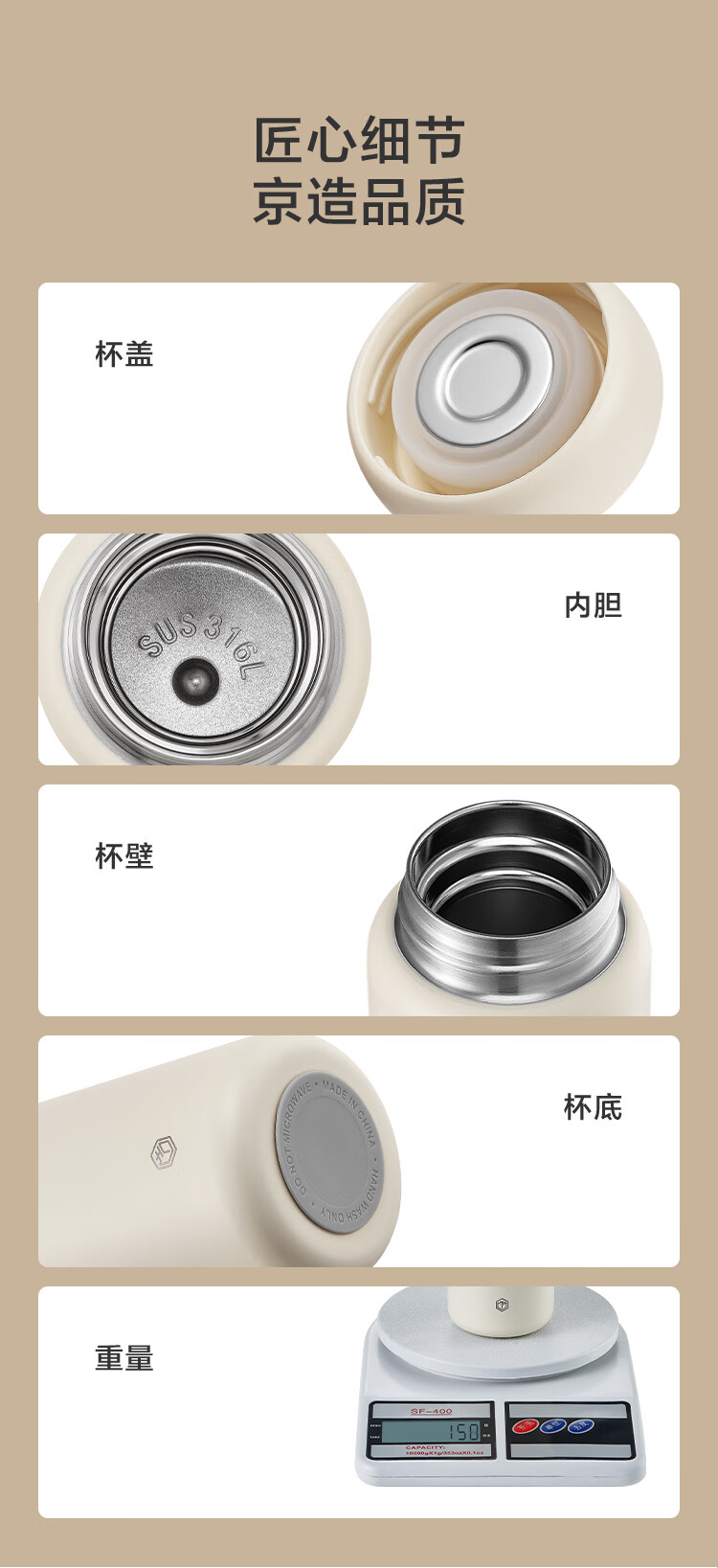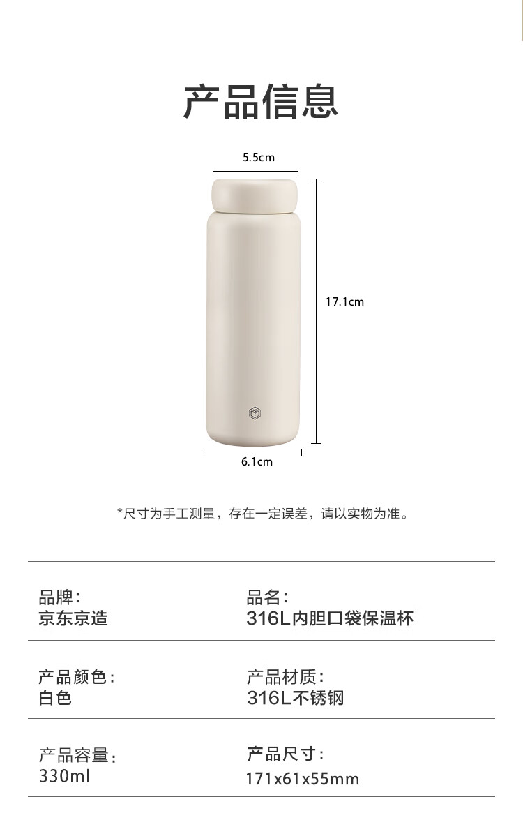京东京造保温杯 口袋保温冷小巧便携随身男女士儿童水杯子316L不锈钢330ml