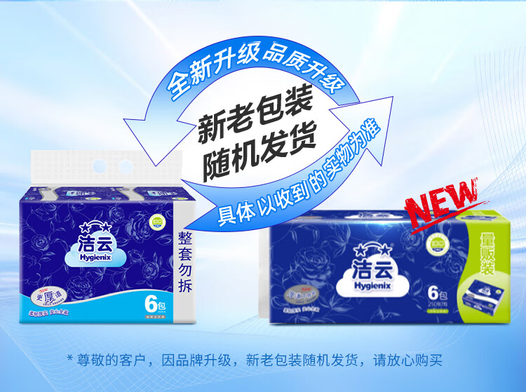 洁云卫生纸 加韧方包250张 (2层)*6包 压花纸巾抽纸 厕纸刀切草纸抽