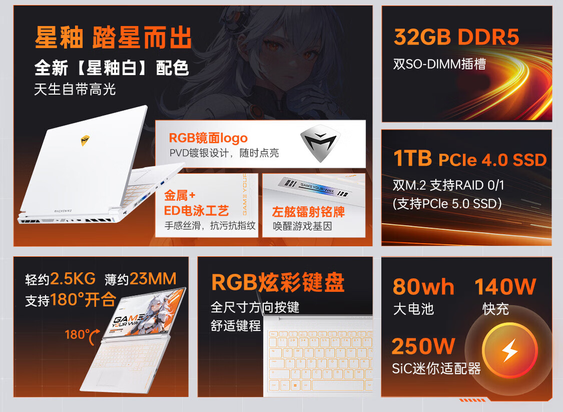 机械师曙光16S星釉白【300Hz屏】16英寸AI办公游戏笔记本电脑(R97945HX RTX5060 2.5K屏 32G 1T)国家补贴