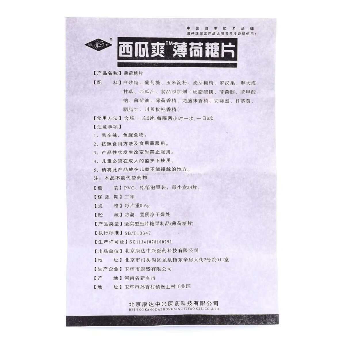 西瓜爽薄荷糖24片嗓子疼喉咙不适罗汉果胖大海甘草润喉片家庭常备 24片*1瓶 西瓜爽薄荷糖片